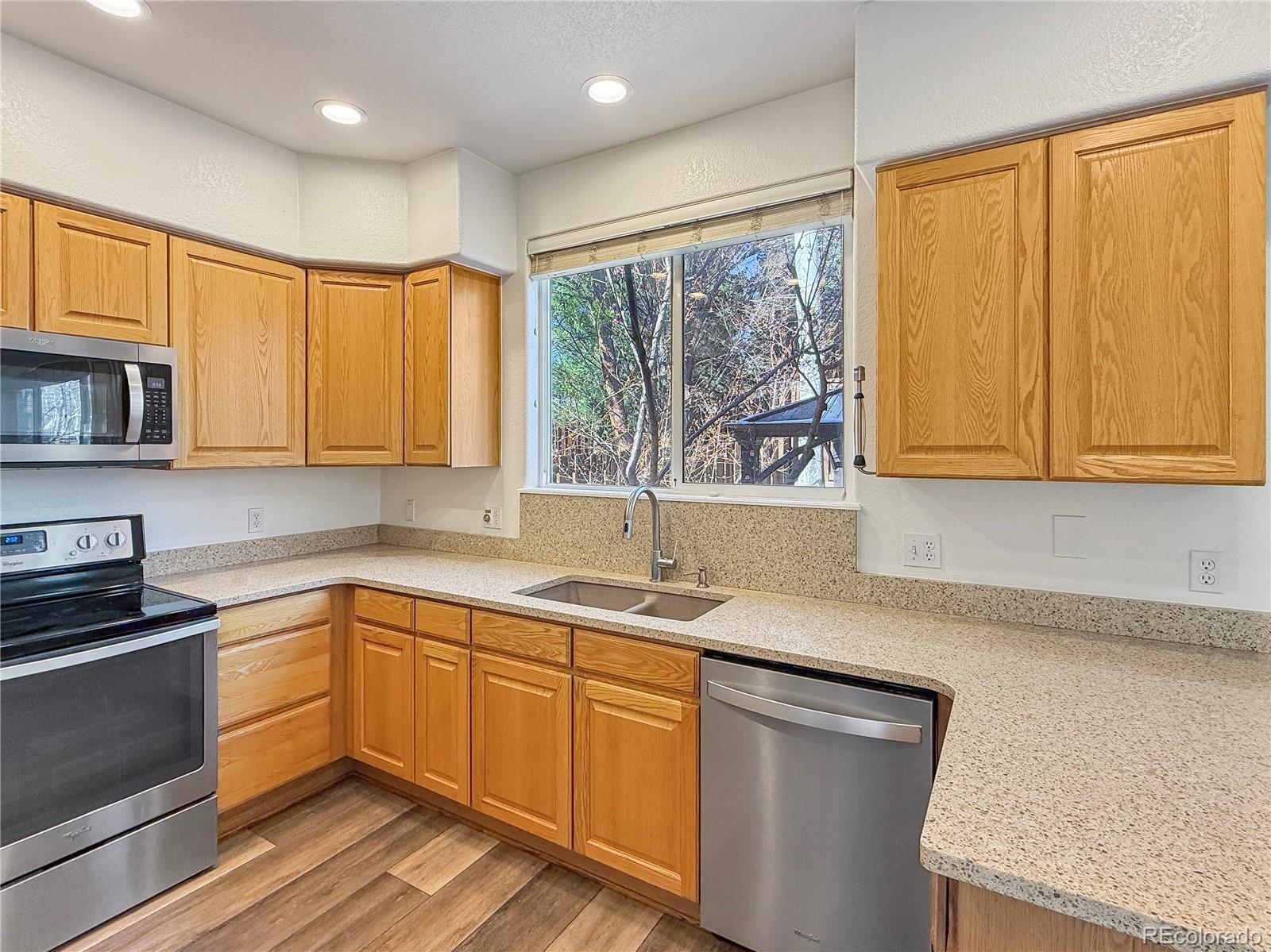 Nestled in a highly sought-after Golden neighborhood just steps from the path to vibrant downtown Golden, this beautifully updated 6-bedroom home offers the perfect blend of comfort, efficiency, and Colorado lifestyle. Surrounded by easy access to North Table Mountain trails and open space, outdoor adventure is right outside your door.Inside, youll find fresh interior paint, new flooring, and soaring vaulted ceilings that create a bright, open feel. The spacious layout includes two cozy fireplaces, a stunning newly renovated primary bathroom, and walk-in closets. The main floor features a convenient laundry room and a functional mudroom just off the garageperfect for Colorado living.The home is packed with thoughtful upgrades, including a newer furnace and A/C, on-demand water heater, newer electrical panel, whole house fan for efficient cooling, and owned solar for energy savings. The garage is EV-ready with a dedicated charger.Designed for entertaining, the finished basement boasts custom countertops, while outside youll enjoy a custom stone patio with gas hookup, pergola, and a beautifully maintained xeriscape yard with five mature peach trees. Take in peaceful views from the inviting front porch or relax in your private backyard oasis.Additional highlights include newer stainless steel appliances, abundant storage throughout, and a neighborhood playground just across the street and down the beautiful winding path.This exceptional Golden home truly has it alllocation, upgrades, and lifestyle.