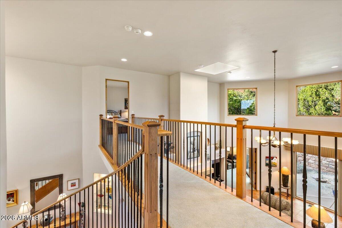 As striking as the red rocks that surround it, this remarkable Southwestern home reflects timeless Santa Fe character and exceptional craftsmanship. Welcome to 30 West Gunsmoke Drive, located in the highly desirable Thunder Mountain Ranch, where you can hike directly from your front door into the US National Forest and out to miles of west Sedonas top-rated hiking trails.This impeccably maintained 3,495 sq. ft., 3BRStudy/3.5BA home offers two true primary suites. One primary suite is on the main level, while the second is on the upper level, with lovely views overlooking Sedonas iconic red rocks. An inviting enclosed courtyard greets you upon arrival, featuring a flagstone patio and kiva gas fireplace -- an ideal retreat for morning coffee or evening gatherings under the Sedona sky.The graceful curve of a sweeping staircase welcomes you into the homes dramatic two-story foyer. Just off the entry, double French doors open to a beautiful, spacious study featuring a wall of custom bookcases and cabinetry. Nearby, youll find a convenient and charming powder room.The dramatic two-story great room is the heart of the home, with the dining room, kitchen, and main level primary suite all connecting to this open, inviting space. Clerestory windows fill the room with natural light, while a wall of glass opens to the homes large covered patio. A soaring two-story gas fireplace flanked by artful open shelving serves as a beautiful focal point for the space.The kitchen is as inviting as it is well-equipped. Warm wood accents, rich granite countertops, and a full suite of stainless steel appliances are arranged in a functional layout offering ample counter space and an intuitive design for the home chef. Large east and north-facing windows invite the beauty of the Sedona landscape right into the space.Just off the kitchen, an oversized laundry room, adjacent storage room, and walk-in pantry provide a plethora of storage space and functionality. This area connects directly to the homes three-car garage, with room for a workshop bench and additional storage.The main level primary suite is a true retreat, generously sized with direct access to the homes open and covered patios. The ensuite bath is beautifully appointed with marble countertops and floors, dual vanities, a jetted tub, walk-in shower, and a spacious walk-in closet.Upstairs, separated by an open balcony walkway, the second primary suite and a third ensuite bedroom offer privacy and comfort for family or guests. The second primary suite is a generous 14 by 18 feet, with its own private balcony capturing views of Thunder Mountain and the Mogollon Rim. The ensuite bath is equally impressive, with east and south-facing views toward the Mogollon Rim and Cathedral Rock, a jetted tub, walk-in shower, private water closet, and a substantial walk-in closet.Thunder Mountain Ranch is a premier west Sedona community with no short-term rentals allowed, a minimum six-month rental policy, a community park, and sidewalk-lined streets. Nestled at the base of the Thunder Mountain range, the home is just minutes from Sedonas top-rated restaurants, the library, shopping, theaters, breweries, and more. The home is available furnished, with a few exclusions.ADDITIONAL FEATURES OF NOTE- Current owners have meticulously maintained the property since their purchase in 2012, resealing the roof and painting the home exterior at least twice during their ownership.- New HVAC installed March 2026 - Best by Farr Heating & Cooling (Licensed, bonded & insured) Rheem 4 TON 14.8 SEER2, 70,000 BTU 92% AFUE gas furnace- Complete Roof Reseal in May 2023 - KM Roofing (Licensed, bonded & insured) New Silicone Lucas #8000 applied system to all flat roof areas, Material warranty 50 years, 5 years on walk deck area- Home exterior painted in November 2024 - Steve Craig Custom Painting- Two New 50 gallon Rudd gas water heaters installed November 2024 - Ace Home Services (Licensed, bonded & insured)- Annual prophylactic termite inspection and policy in place - Alternative Pest (policy must be renewed in January 2027)- Front and rear yard drip irrigation system with automatic timer in place and regularly maintained- Furnishings convey with acceptable offer (some exclusions apply)- Sundance dance spa included with sale- Outdoor furniture included with sale- Napoleon gas grill and Big Green Egg included with sale