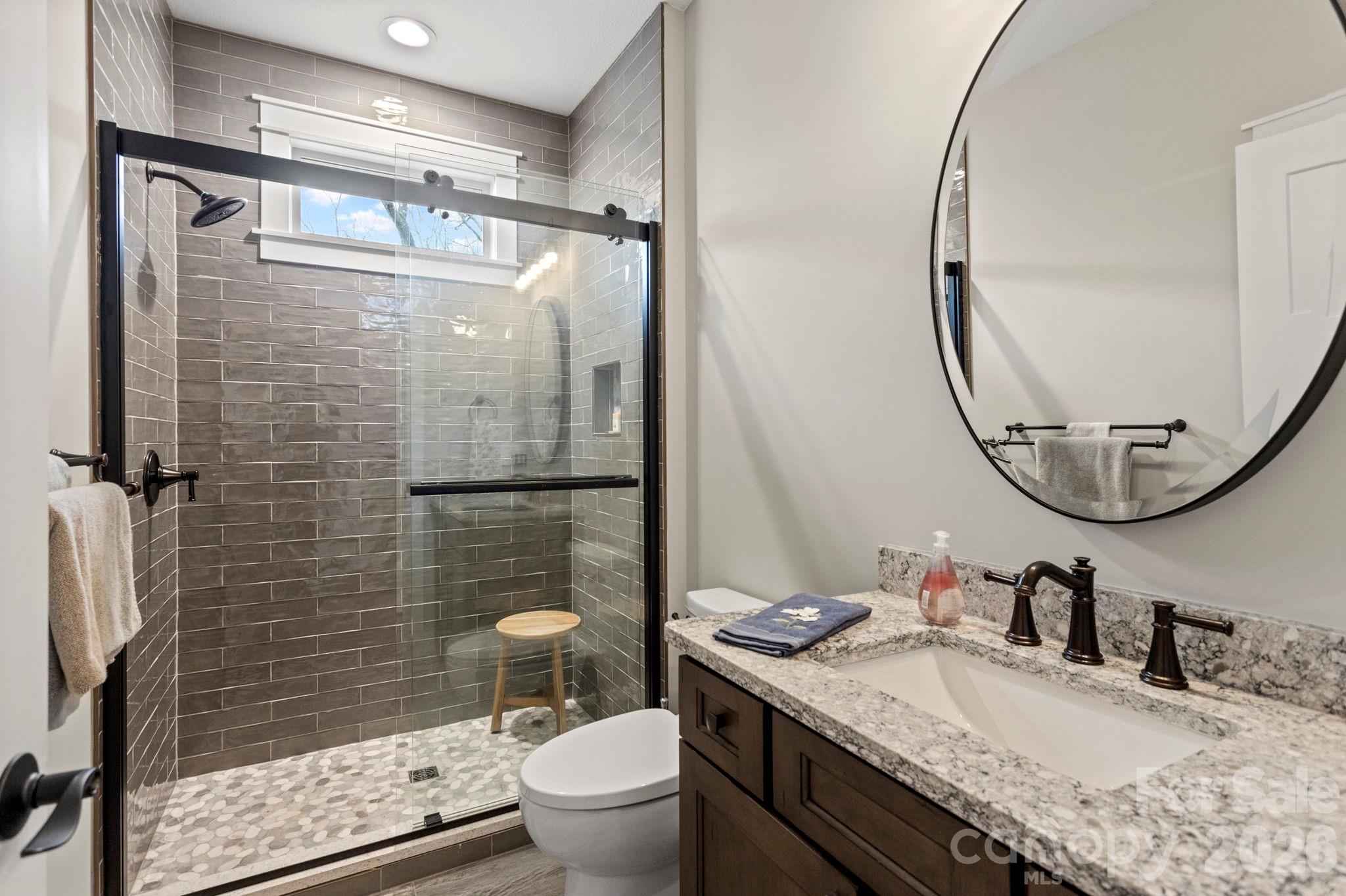 Architectural Masterpiece in Prestigious Kenmure. Absolutely stunning and exquisitely designed one-level home with three en-suite bedrooms, three full baths, two powder baths and a bonus room, beautifully situated on a private 1.5 acre corner lot in prestigious Kenmure, a gated golf course community. This exceptional residence offers a rare opportunity to own a true architectural masterpiece where timeless design meets modern luxury living with exceptional craftsmanship and thoughtful details throughout. A welcoming covered front porch with Trex decking and tongue-and-groove wood ceiling leads to the inviting foyer featuring a solid wood door with transom and sidelights. Inside, the fantastic open floor plan showcases random-width hardwood floors, vaulted and tall ceilings, and seamless flow between living spaces. The impressive great room features a tongue-and-groove stained wood cathedral ceiling, dramatic wall of windows- that lead seamlessly to the fantastic screen porch- and a striking floor-to-ceiling stone gas fireplace with reclaimed wood mantle and stone hearth flanked by custom built-ins. The great room opens to a gourmet chefs kitchen with quartz countertops, tile backsplash, shaker-style cabinetry, breakfast bar with pendant lighting, high-end stainless appliances including a dual gas range with hood, additional wall oven and microwave, and a spacious walk-in pantry complete with built-in file cabinet. The adjacent breakfast room offers easy access to both the screened porch and open deck. The elegant dining room features a beautiful tray ceiling and open design providing wonderful spaces for gathering. The luxurious owners suite features a tray ceiling, private deck access and a spa-inspired bath with tile flooring, double vanity with granite countertops, soaking tub, and beautiful tiled shower with pebble floor and built-in bench. The designer walk-in closet with custom built-ins and island leads directly to the well-appointed laundry room with sink, cabinetry, granite counters, and built-in ironing board. The main level also offers a stunning study with glass French door entry with built-ins, plus two beautifully appointed en-suite guest bedrooms and a powder bath. The upper-level bonus room with half bath provides the perfect den, media room or flexible living space. Outdoor living is exceptional with a cathedral tongue and grove stained wood ceiling screened porch, open Trex decking, covered front porch and multiple cozy sitting areas surrounded by nature. Ideally located close to the front gate and community amenities, this remarkable home offers privacy, luxury and the very best of mountain living.