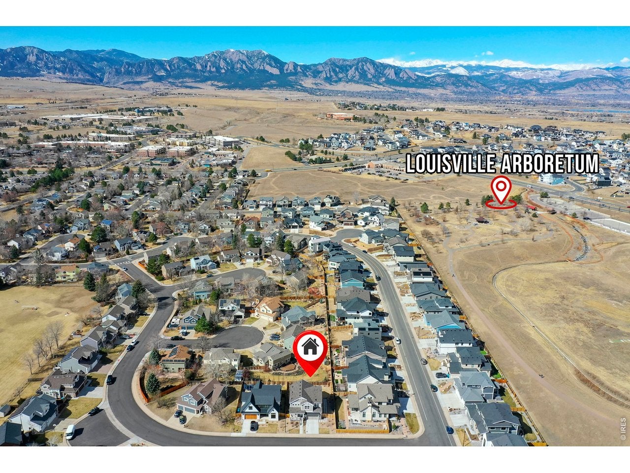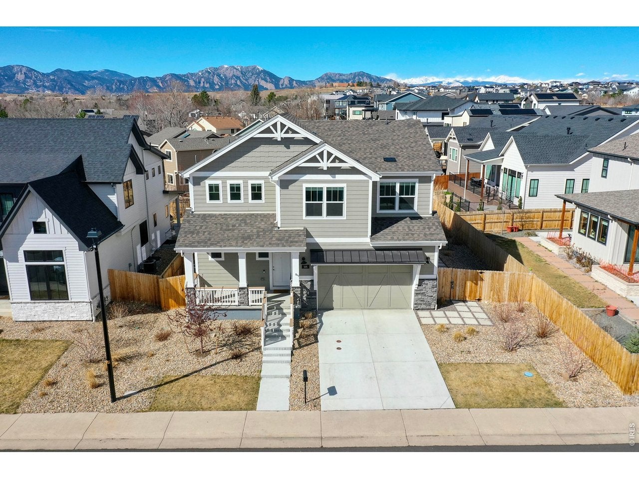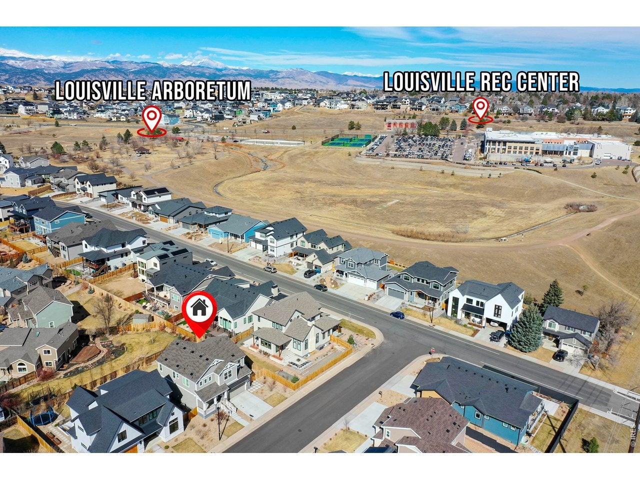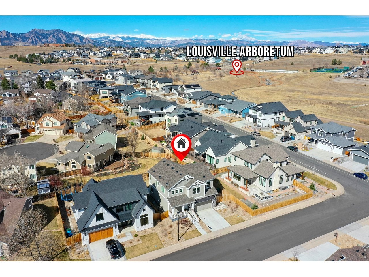 Opportunity knocks in the covenant location of Centennial Heights just steps to Fireside, trails, Louisville Rec and Arboretum. This newer construction Boulder Creek Builder home is situated on a quiet street featuring exquisite home design. Open the door to engineered hardwood floors on the main level offering low maintenance and easy living. Tons of natural light and open floor plan. Chefs dream kitchen with HUGE center island perfect for baking projects or morning breakfasts. Beautiful designer quartz counters, white cabinets with pull outs, custom backsplash and S/S appliances. Dining room and cozy living room makes this an intimate entertaining space overlooking the yard making this perfect for entertaining or summer BBQs. Main level bedroom with attached full bath makes this the perfect guest space or work from home option. Did we mention the custom coat drop and HUGE coat closet perfect for Costco supplies. Upstairs features 4 bedrooms PLUS small loft space perfect for homework corners or craft space. Large Primary suite with amazing Mountain views, making this space the perfect retreat. Primary suite offers tons of light, vaulted ceilings, attached 5 pc primary bath with large soaker tub, shower, double sinks and spacious walk in closet. Additional 3 bedrooms all located upstairs with ample closet space. Updated full bath with double sinks serves 2 rooms while one bedroom offers private attached full bath. Fully finished basement offers a bedroom, full bath and HUGE rec room or movie space, dont forget the great storage space. HUGE patio with professionally landscaped yard. makes this outdoor space inviting and perfect to enjoy all Colorado seasons. Best location in Louisville steps to Fireside, Louisville Rec, Arboretum, trails, open space, shopping, restaurants, easy access to HWY 36 and less than a mile walk to Downtown Louisville.