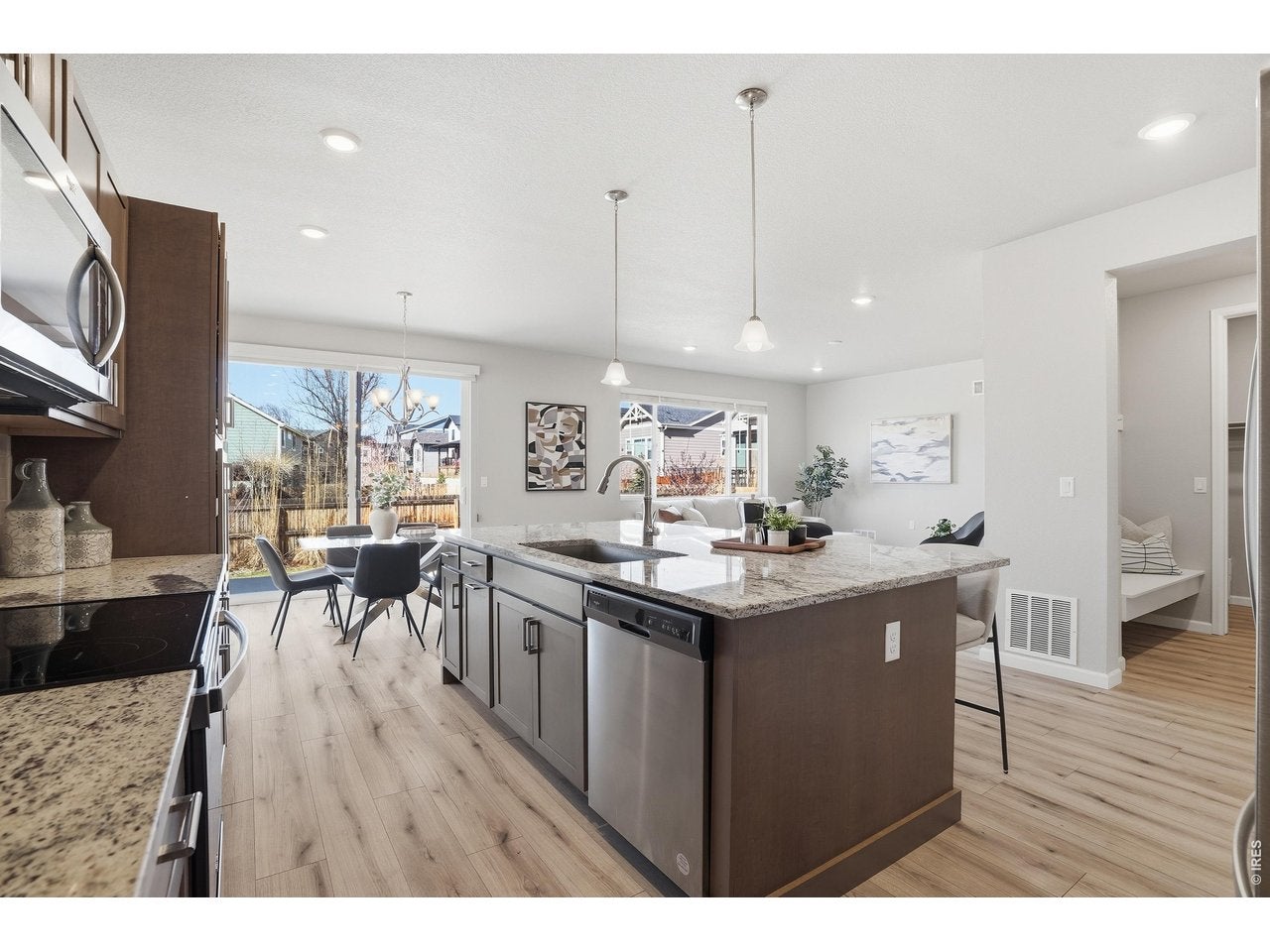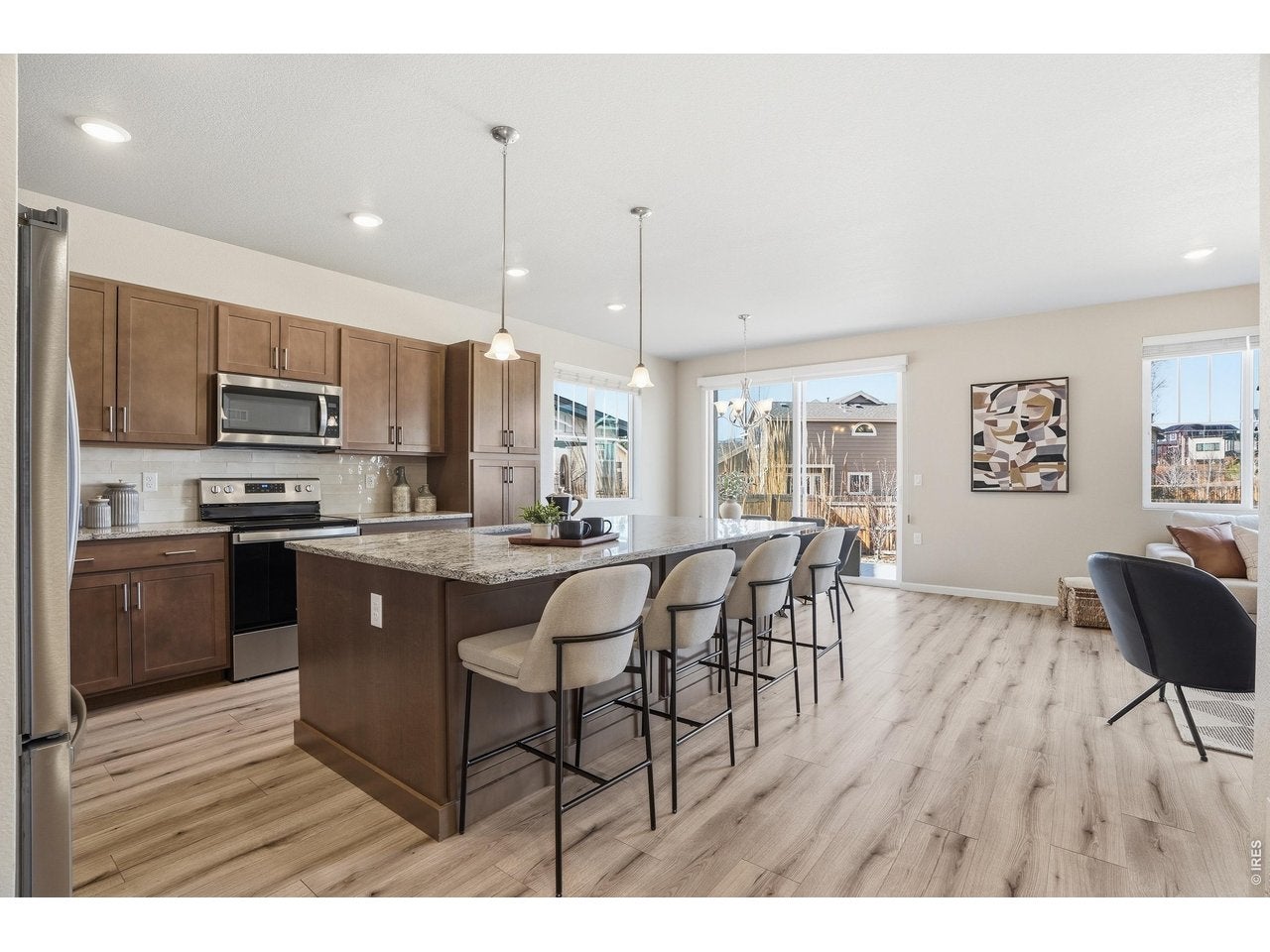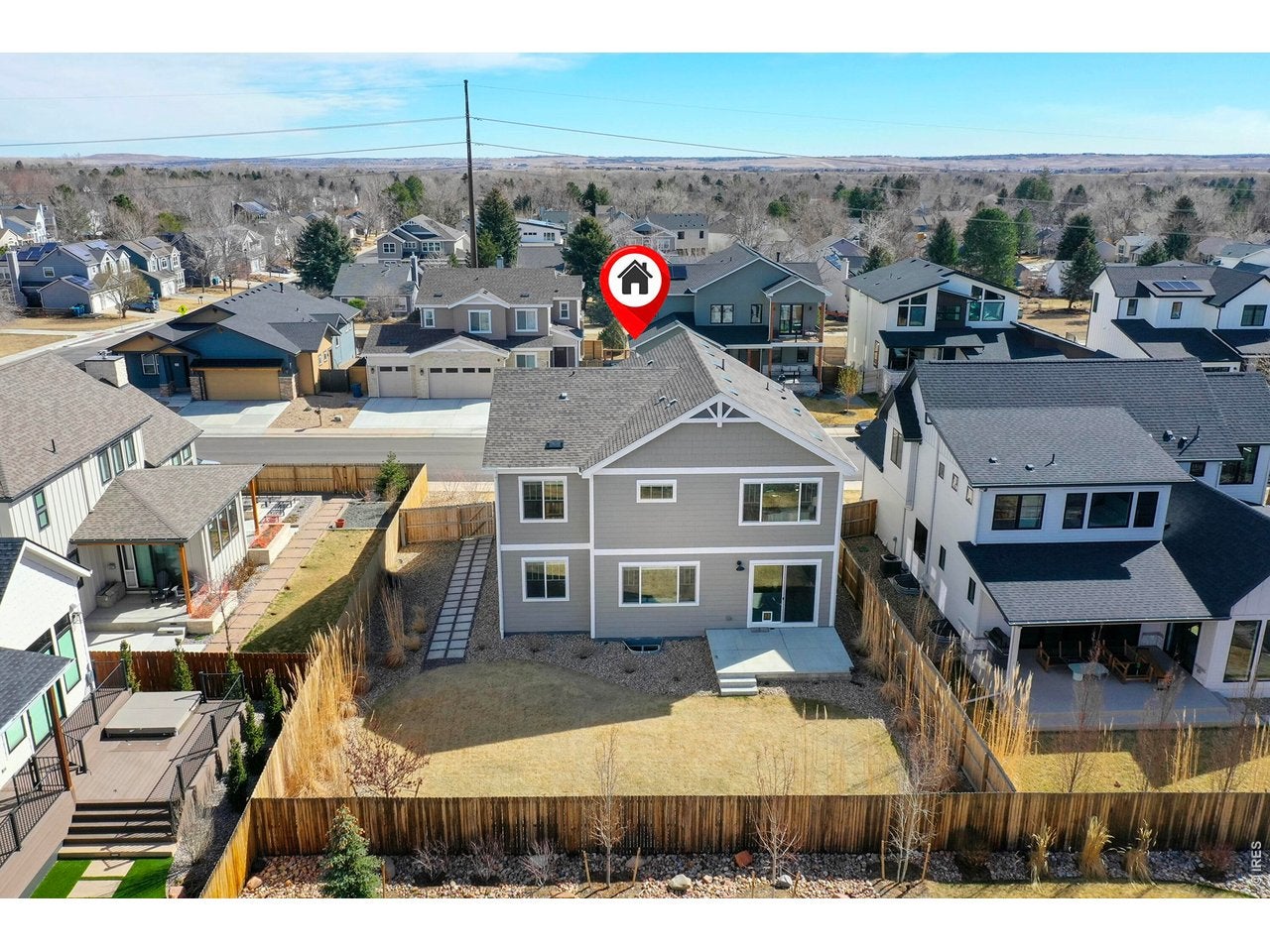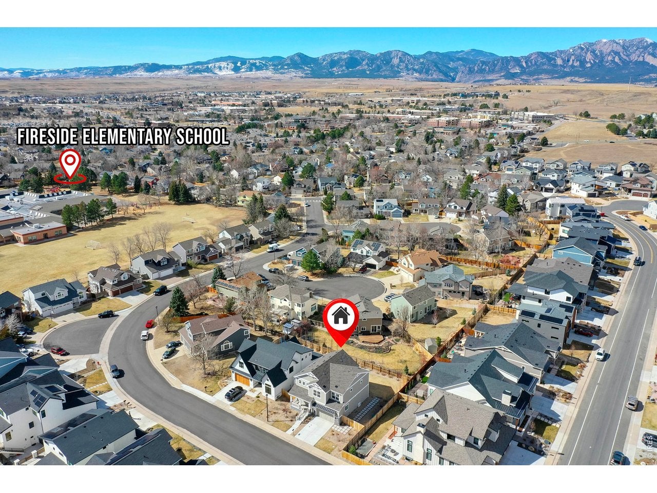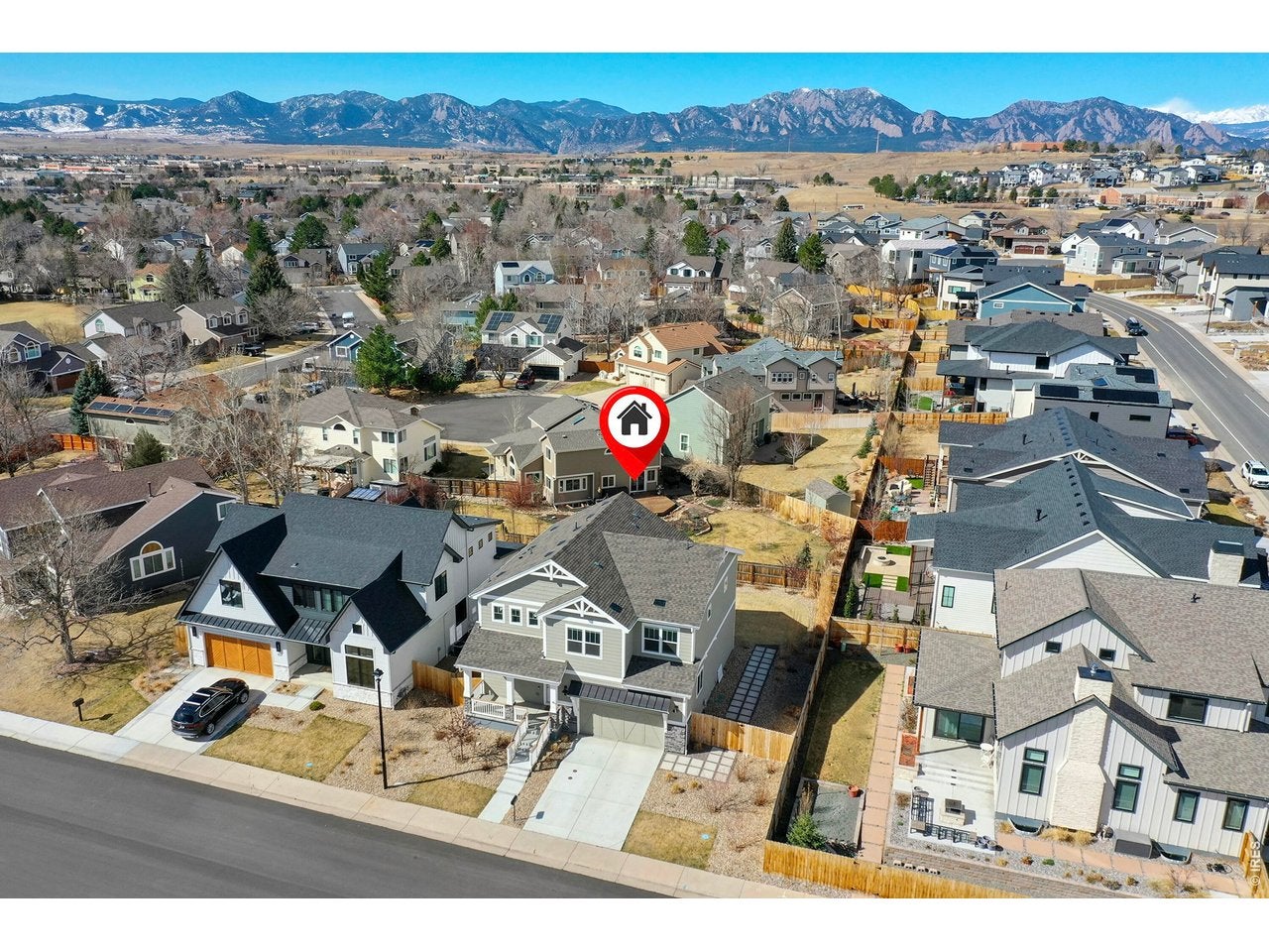 Opportunity knocks in the covenant location of Centennial Heights just steps to Fireside, trails, Louisville Rec and Arboretum. This newer construction Boulder Creek Builder home is situated on a quiet street featuring exquisite home design. Open the door to engineered hardwood floors on the main level offering low maintenance and easy living. Tons of natural light and open floor plan. Chefs dream kitchen with HUGE center island perfect for baking projects or morning breakfasts. Beautiful designer quartz counters, white cabinets with pull outs, custom backsplash and S/S appliances. Dining room and cozy living room makes this an intimate entertaining space overlooking the yard making this perfect for entertaining or summer BBQs. Main level bedroom with attached full bath makes this the perfect guest space or work from home option. Did we mention the custom coat drop and HUGE coat closet perfect for Costco supplies. Upstairs features 4 bedrooms PLUS small loft space perfect for homework corners or craft space. Large Primary suite with amazing Mountain views, making this space the perfect retreat. Primary suite offers tons of light, vaulted ceilings, attached 5 pc primary bath with large soaker tub, shower, double sinks and spacious walk in closet. Additional 3 bedrooms all located upstairs with ample closet space. Updated full bath with double sinks serves 2 rooms while one bedroom offers private attached full bath. Fully finished basement offers a bedroom, full bath and HUGE rec room or movie space, dont forget the great storage space. HUGE patio with professionally landscaped yard. makes this outdoor space inviting and perfect to enjoy all Colorado seasons. Best location in Louisville steps to Fireside, Louisville Rec, Arboretum, trails, open space, shopping, restaurants, easy access to HWY 36 and less than a mile walk to Downtown Louisville.