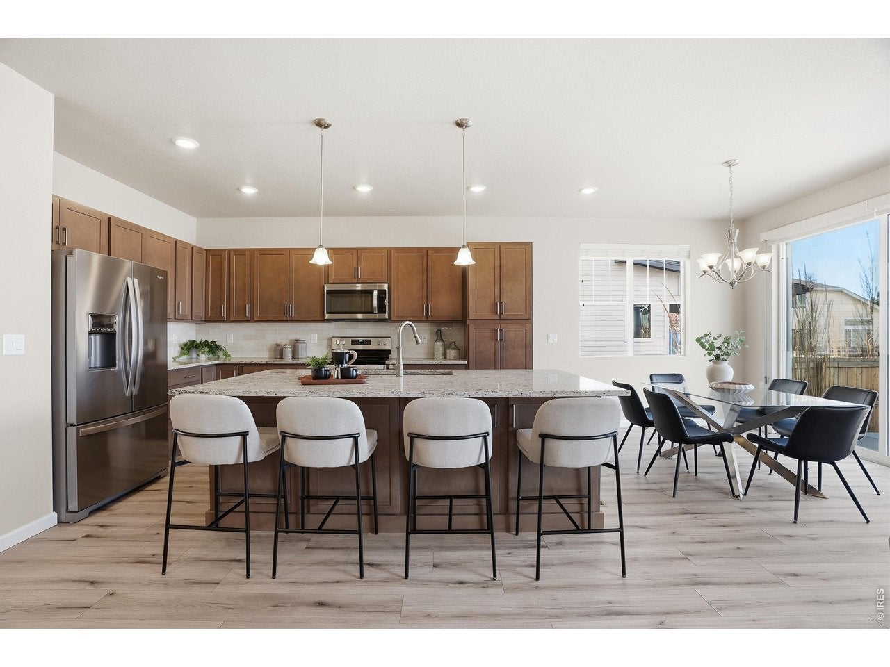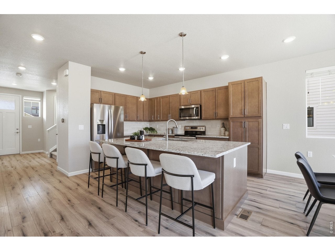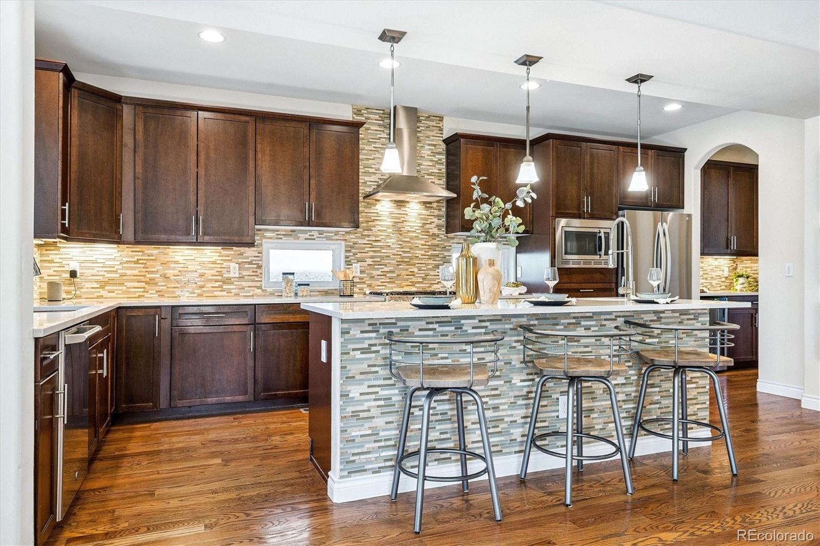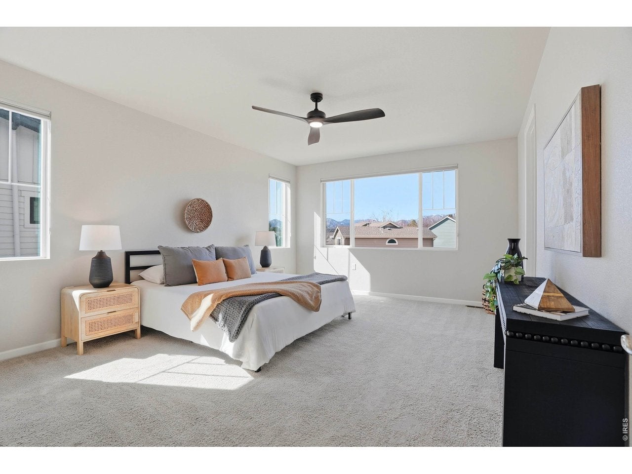 Opportunity knocks in the covenant location of Centennial Heights just steps to Fireside, trails, Louisville Rec and Arboretum. This newer construction Boulder Creek Builder home is situated on a quiet street featuring exquisite home design. Open the door to engineered hardwood floors on the main level offering low maintenance and easy living. Tons of natural light and open floor plan. Chefs dream kitchen with HUGE center island perfect for baking projects or morning breakfasts. Beautiful designer quartz counters, white cabinets with pull outs, custom backsplash and S/S appliances. Dining room and cozy living room makes this an intimate entertaining space overlooking the yard making this perfect for entertaining or summer BBQs. Main level bedroom with attached full bath makes this the perfect guest space or work from home option. Did we mention the custom coat drop and HUGE coat closet perfect for Costco supplies. Upstairs features 4 bedrooms PLUS small loft space perfect for homework corners or craft space. Large Primary suite with amazing Mountain views, making this space the perfect retreat. Primary suite offers tons of light, vaulted ceilings, attached 5 pc primary bath with large soaker tub, shower, double sinks and spacious walk in closet. Additional 3 bedrooms all located upstairs with ample closet space. Updated full bath with double sinks serves 2 rooms while one bedroom offers private attached full bath. Fully finished basement offers a bedroom, full bath and HUGE rec room or movie space, dont forget the great storage space. HUGE patio with professionally landscaped yard. makes this outdoor space inviting and perfect to enjoy all Colorado seasons. Best location in Louisville steps to Fireside, Louisville Rec, Arboretum, trails, open space, shopping, restaurants, easy access to HWY 36 and less than a mile walk to Downtown Louisville.