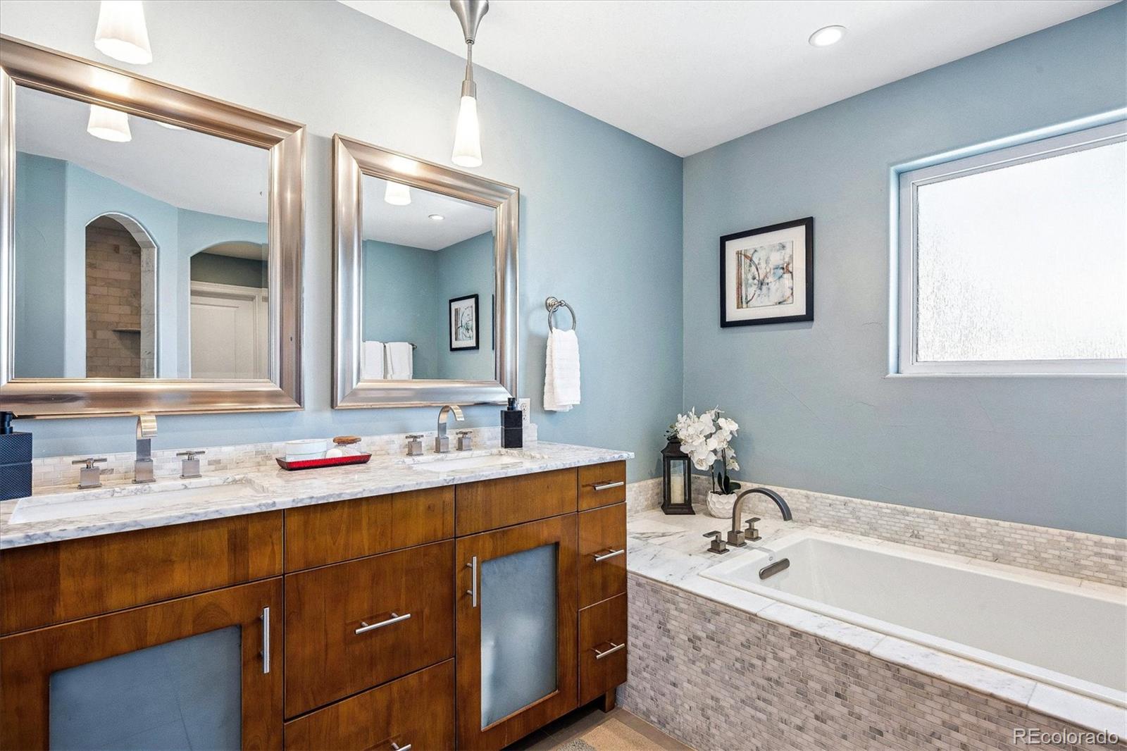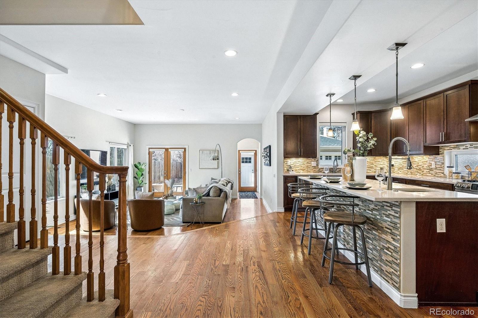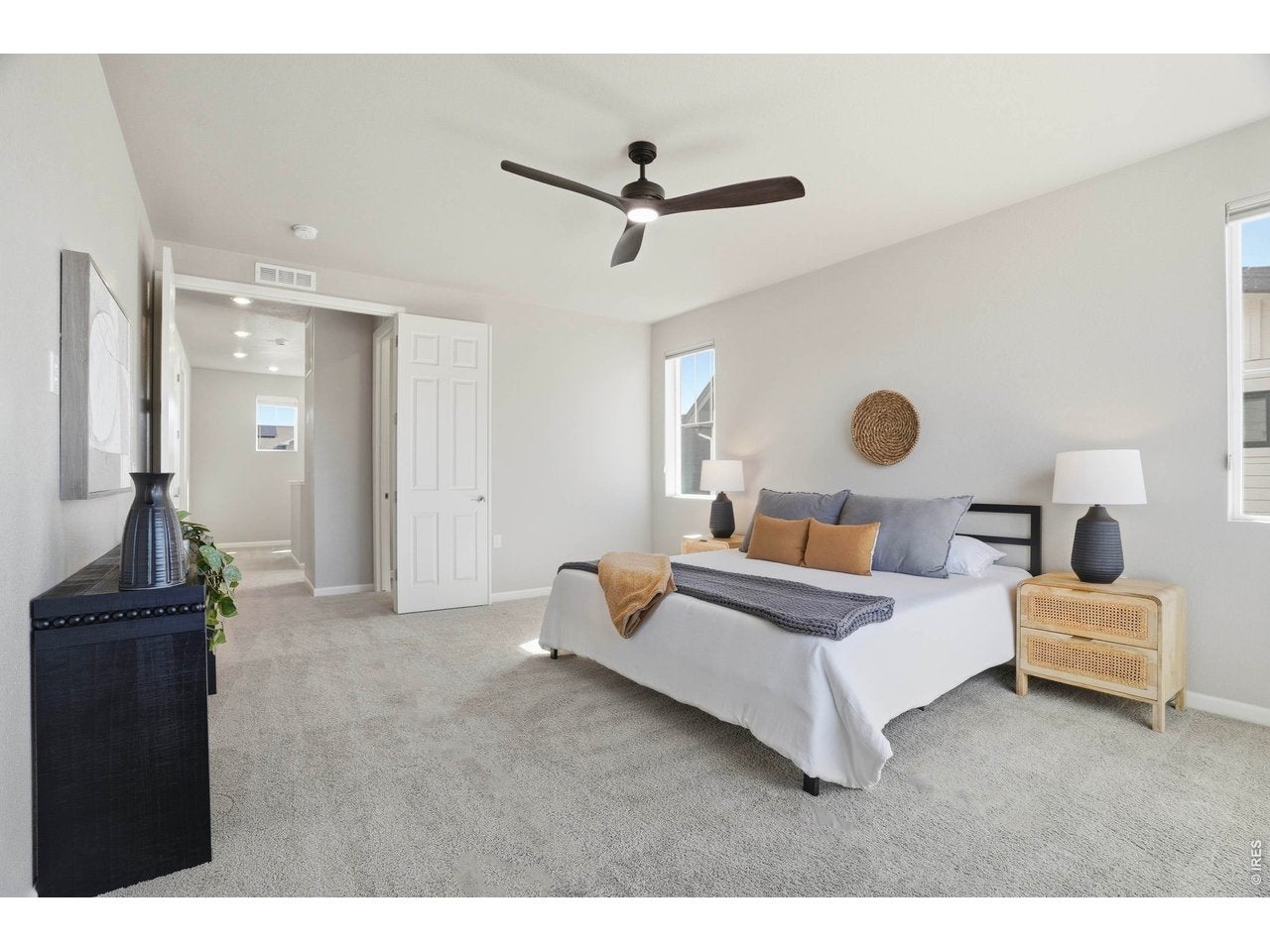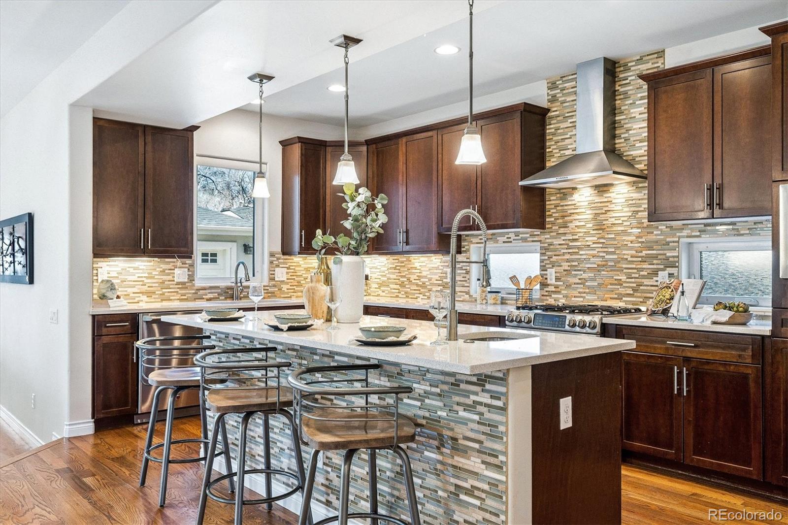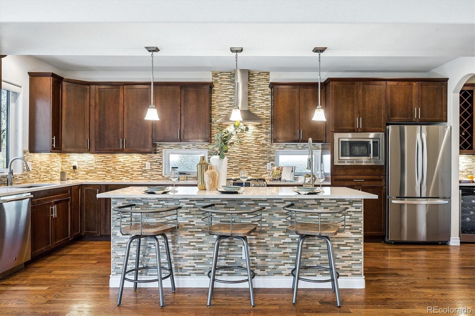 Opportunity knocks in the covenant location of Centennial Heights just steps to Fireside, trails, Louisville Rec and Arboretum. This newer construction Boulder Creek Builder home is situated on a quiet street featuring exquisite home design. Open the door to engineered hardwood floors on the main level offering low maintenance and easy living. Tons of natural light and open floor plan. Chefs dream kitchen with HUGE center island perfect for baking projects or morning breakfasts. Beautiful designer quartz counters, white cabinets with pull outs, custom backsplash and S/S appliances. Dining room and cozy living room makes this an intimate entertaining space overlooking the yard making this perfect for entertaining or summer BBQs. Main level bedroom with attached full bath makes this the perfect guest space or work from home option. Did we mention the custom coat drop and HUGE coat closet perfect for Costco supplies. Upstairs features 4 bedrooms PLUS small loft space perfect for homework corners or craft space. Large Primary suite with amazing Mountain views, making this space the perfect retreat. Primary suite offers tons of light, vaulted ceilings, attached 5 pc primary bath with large soaker tub, shower, double sinks and spacious walk in closet. Additional 3 bedrooms all located upstairs with ample closet space. Updated full bath with double sinks serves 2 rooms while one bedroom offers private attached full bath. Fully finished basement offers a bedroom, full bath and HUGE rec room or movie space, dont forget the great storage space. HUGE patio with professionally landscaped yard. makes this outdoor space inviting and perfect to enjoy all Colorado seasons. Best location in Louisville steps to Fireside, Louisville Rec, Arboretum, trails, open space, shopping, restaurants, easy access to HWY 36 and less than a mile walk to Downtown Louisville.