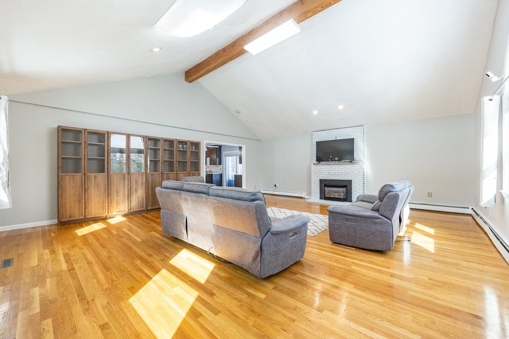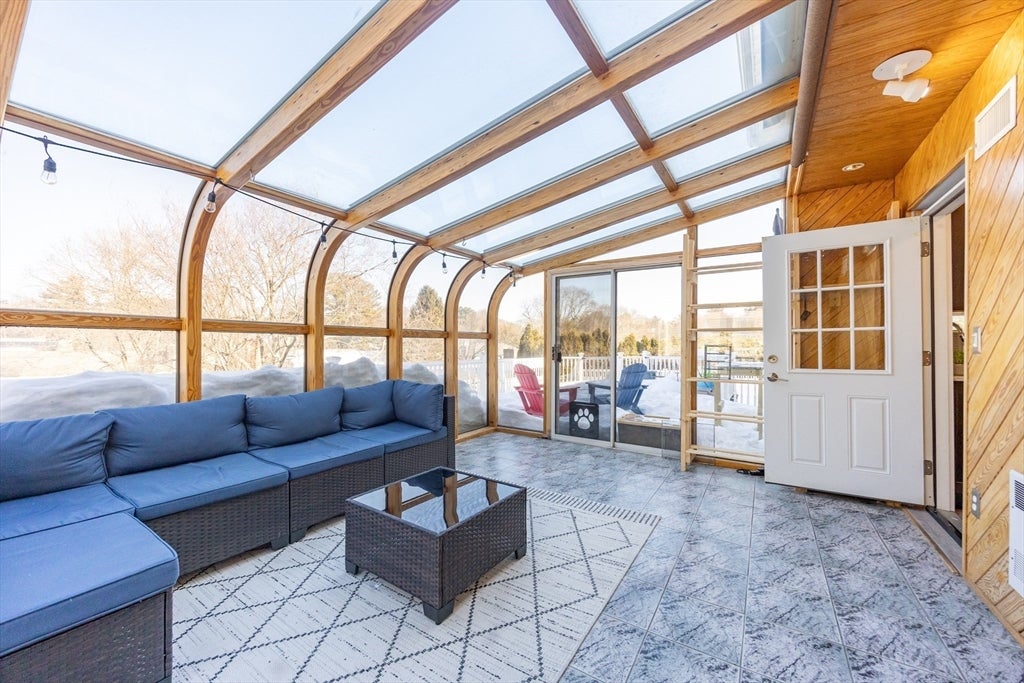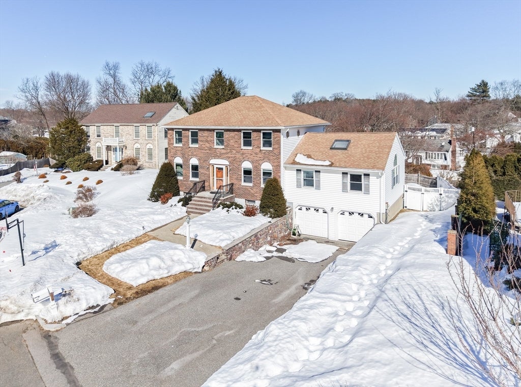 Stunning brick-front Colonial offers 4 beds, 4 baths, and 3,829 sq. ft. of space on a peaceful cul-de-sac in a top-tier neighborhood just 11 miles from Boston. The airy layout features a bright kitchen w massive island and entry to a custom sunroom with radiant heat, perfect for relaxing year-round, alongside a full bath and laundry. Step through the kitchen slider onto a grand deck, or entertain in the expansive 22x24 living room with soaring cathedral ceilings and anchored by a brick fireplace. The main floor also provides a flexible bonus room for a play area or home office. Upstairs, youll find a primary suite, plus three generous bedrooms, and an upgraded guest bath with a jacuzzi tub. The lower level adds incredible value with a full guest suite featuring its own kitchenette, family room, bonus room, and bath, plus direct access to a large 2-car garage. Ideally located near I-93/95.