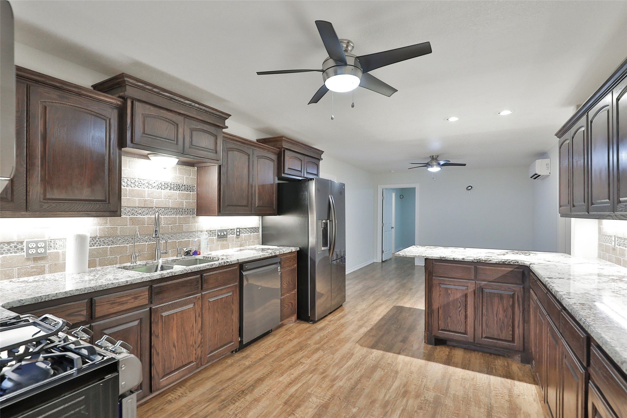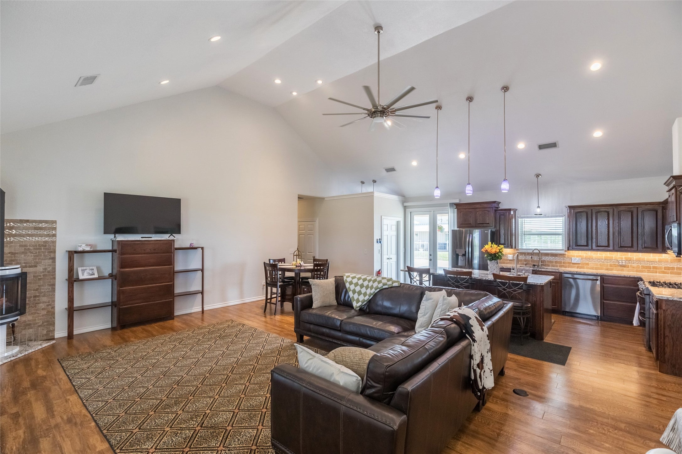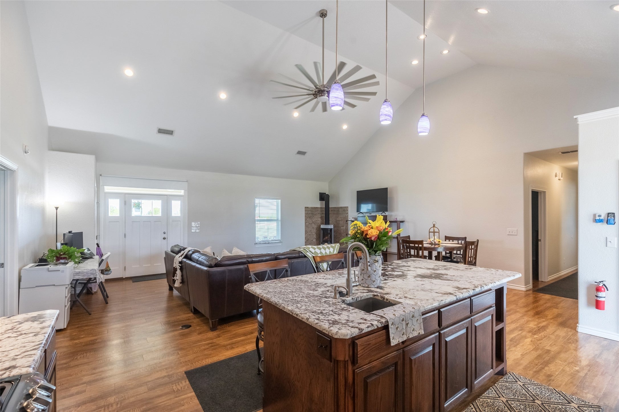 Discover a one of a kind multi dwelling property on approximately 34.81 acres in Abilene, Texas offering a unique mix of space, functionality, and everyday comfort. The main home features 3 bedrooms and 3.5 bathrooms with granite finishes, commercial grade LVT flooring, built in storage throughout, and solid core doors for added privacy. The kitchen is set up for both daily living and entertaining with under cabinet lighting, great island storage, and a whole house water filtration system with reverse osmosis and a tankless style water heating system designed to provide consistent hot water. Much of the home also features dimmable lighting so you can easily adjust the ambiance throughout. The primary suite offers a comfortable retreat with a reinforced safe room style closet and a spacious en suite bath with a jetted garden tub. The warehouse style shop, also known as the man mansion, offers an impressive approximately 50x110 combination of shop and living space with multiple potential bedrooms, full kitchen, laundry area, office, and two full bathrooms, giving you flexibility for guests, multi generational living, or workspace needs. The shop is equipped with a 10,000 lb vehicle lift, large overhead doors, RV hookups, and multiple HVAC systems. Outside you will find an automatic gated entrance, carport, livestock pens with water and electric, a duck pond, deer blind, fire pit, and native grasses with natural reseeding oats. The property has previously been used for livestock and is set up to continue that use, while also offering great recreational appeal with deer, dove, and quail throughout the property. Appliances including refrigerators, washers, and dryers can convey.