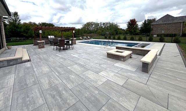 The modern Farmhouse St Helena model next to the Clubhouse and on HOLE #8... is worth every second of your time to tour it. NOTHING has been left untouched (tastefully done upgrades throughout). From the front porch, to the back of the home, this property has it all, boasting: Iron door with glass panel that opens, all 3 bedrooms are separated and at other ends of the house, MASSIVE built in fridge, cabinet upgrades throughout, media wall in living room, extended shower in Primary bedroom, dedicated office, garage with tons of style (& epoxy), 16 ft multi-panel collapsing slider that CREATES THE INDOOR OUTDOOR FEEL of the floor plan. Bonus: Built-in bbq, extended covered patio, gas fire pit, and the coolest pizza oven youve ever seen... & a complete wrap of Trimlight holiday lights.