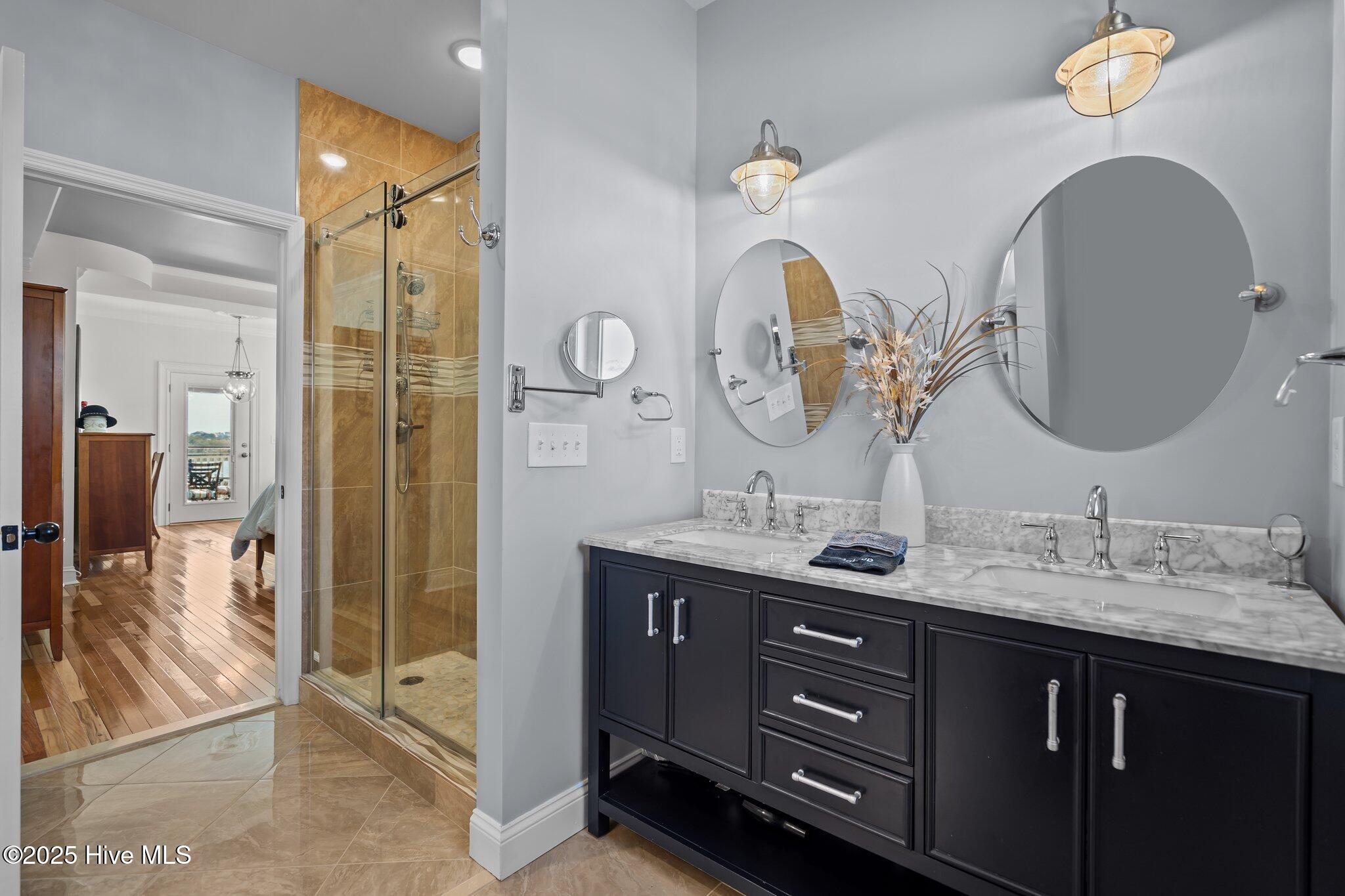 Significant 100,000 price adjustment - ideal for buyers looking to customize with added value of waterfront enhancements like a pier or dock. Discover this stunning waterfront luxury retreat with panoramic views of the Intracoastal Waterway and NO HOA dues. This spacious custom home is a rare find, offering 2,653 sq ft, 3 bedrooms, 2.5 bathrooms, a versatile flex room, and countless high-end finishes, all centrally located to the area's best beaches & golf courses. Relax on the wraparound porch, taking in unobstructed coastal views as boats and dolphins pass by. Inside, the main living area features coffered ceilings, luxury vinyl plank flooring, & a striking gas fireplace. The kitchen is equally impressive with a large farmhouse sink, gas range with hood & pot filler, tile backsplash, stainless steel appliances, a custom quartz island, and a generous walk-in pantry. The main-floor primary suite offers tray ceilings, engineered hardwood floors, a sitting area, and private deck access overlooking the Intracoastal. The en suite includes marble finishes, dual vanities, a walk-in shower, soaking tub, and a separate vanity room. A spacious laundry room and half bath complete the main level. Upstairs, two large bedrooms provide flexibility--one with a private balcony showcasing sweeping ICWW views, and the other with an attached office or craft space. A separate flex room with a wet bar and nearby full bath is ideal for a media room, guest suite, or entertaining space. Additional features include walk-in attic storage, a covered carport for up to 5 vehicles, and three enclosed storage areas perfect for a workshop or recreational gear. Built with impact-rated windows and doors throughout, this home offers both comfort and peace of mind. Located less than a mile from the Sunset Harbor Boat Ramp and just a short drive to Oak Island and Holden Beach. Maximize this price savings and make this waterfront property your own - schedule your showing today.