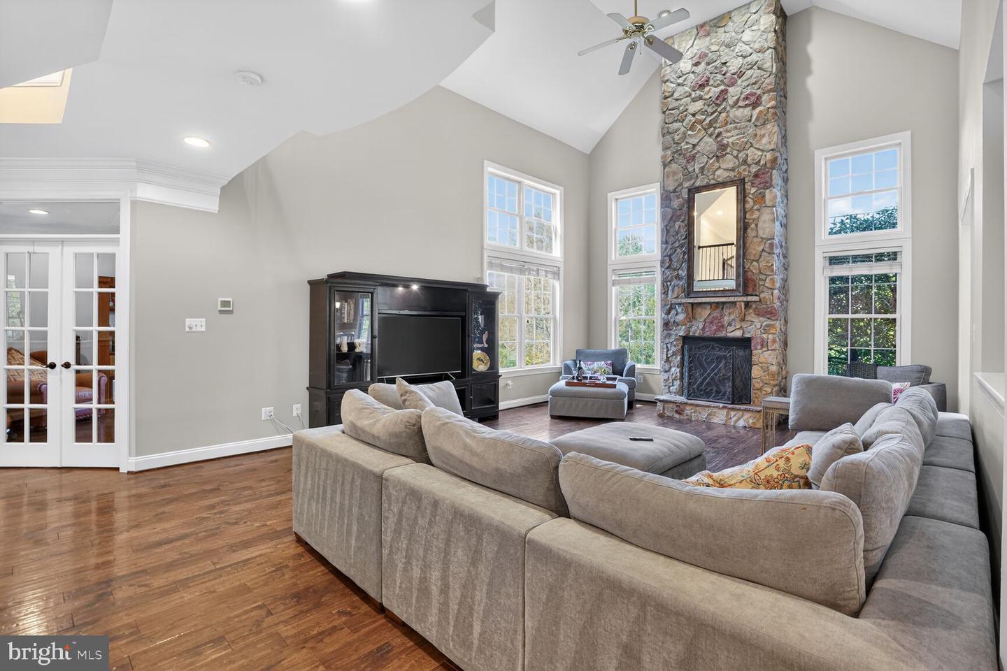 Freshly painted inside and out, this home is move-in ready! Super popular Fitzgerald II model from Van Metre Homes offers over 5,400 sq ft on three finished levels with two large unfished storage rooms, tranquil front porch and a two-car front-load garage. Great lot bordered with trees offers a rear patio, perfect for relaxing around a firepit along with a maintenance-free Trex deck for grilling and dining out. The inside has been freshly painted and youll find gorgeous hardwood floors throughout the entire main level. Kitchen was updated in 2019 with quartz and granite counters along with stainless steel appliances including a gas cooktop, double wall oven, dishwasher and brand new refrigerator with ice maker. The 15 by 12 breakfast room off the kitchen offers a French door to the rear Trex deck. Two-story family room with floor to ceiling stone fireplace, main level office with double glass doors. Four bedrooms and three full baths on upper level with newer plush neutral carpet. Youll love the primary bedroom suite with lower sitting area, cathedral ceiling, ceiling fan, two large walk-in closets and luxurious primary bathroom with dual sink vanity, updated plumbing fixtures, large soaking tub and separate shower with new seamless glass enclosure. Lower level offers luxury vinyl plank flooring in rec room and game room, 2nd gas fireplace in rec room and new plush neutral carpet in bonus room/5th bedroom. In-ground irrigation system. HVAC replaced inside and out in 2018. HOA fee includes basic cable TV and internet access from Comcast!! Enjoy all the community amenities that make Lansdowne on the Potomac so popular including indoor lap pool, fitness center, outdoor resort style pool, 2nd outdoor swimming pool, tot lots and pickleball and tennis courts. Hurry to see this home before its gone!