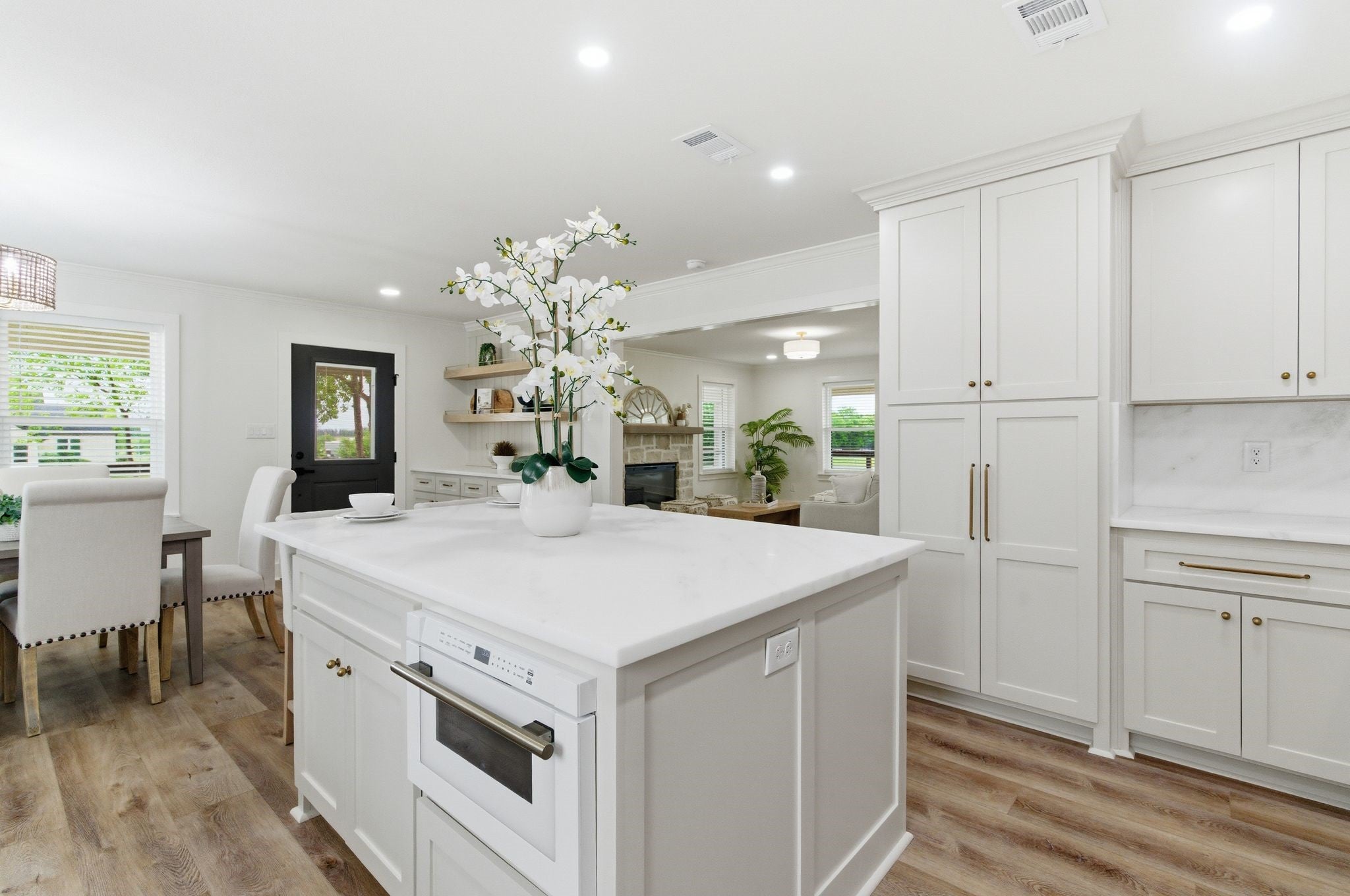 Welcome to an elegant farmhouse retreat where timeless charm meets thoughtful, top-to-bottom renovation.Situated on over 1.5 acres, this cozy cottage-style home has been completely reimagined with nothing left untouched. A stunning wraparound front porch, charming bay window office, and mixed-material exterior with metal roof accents create a warm yet sophisticated first impression.
