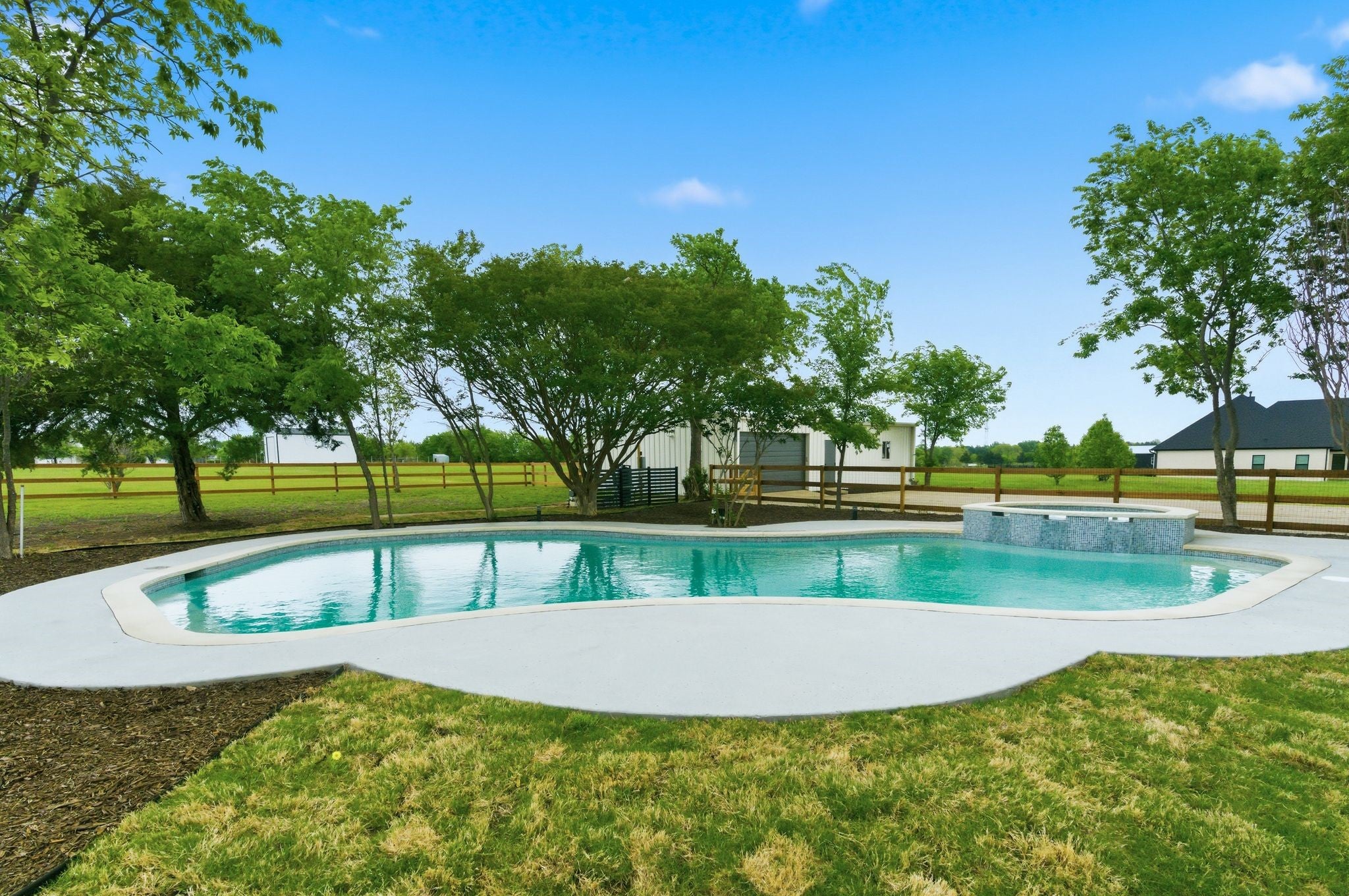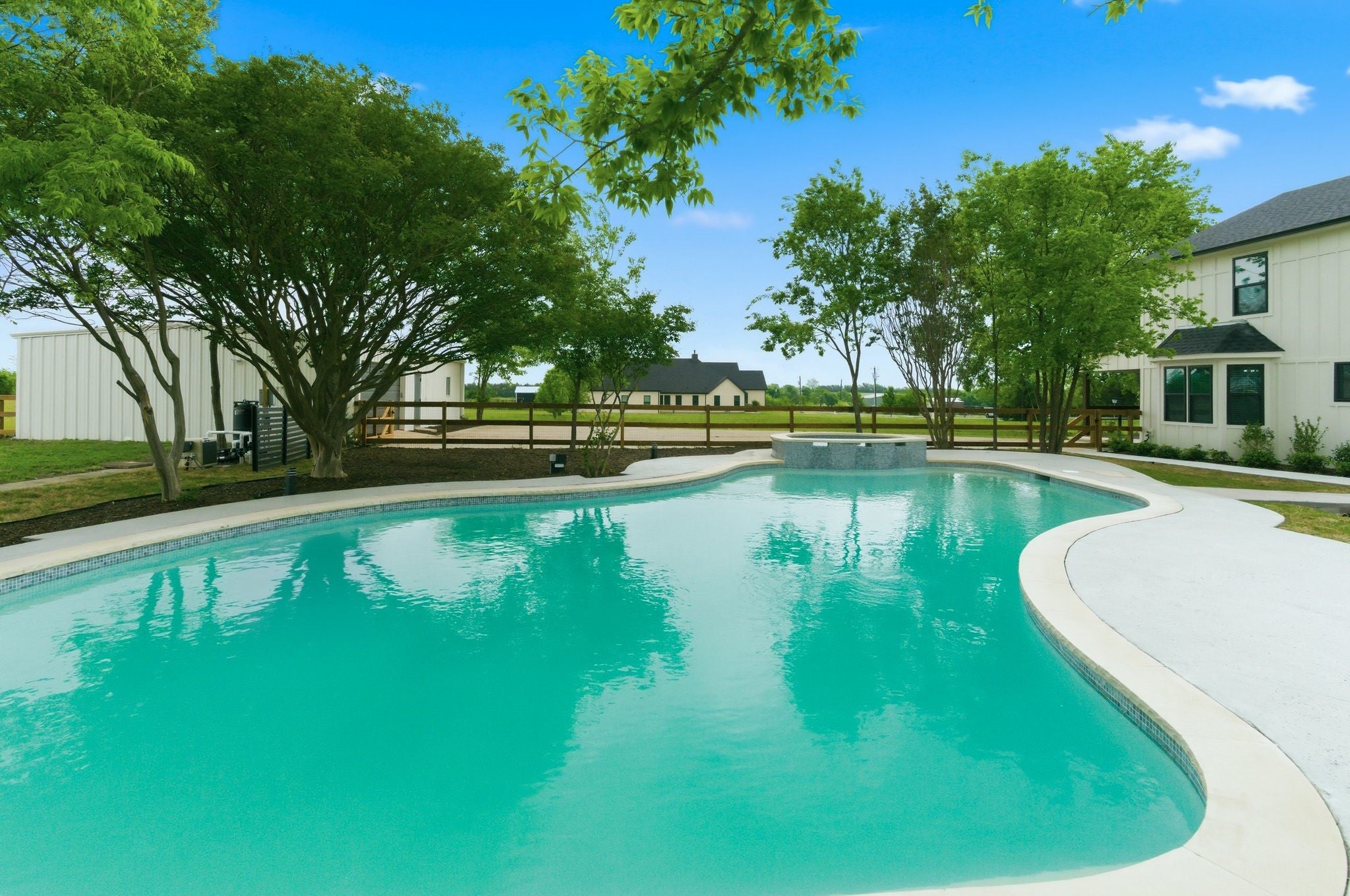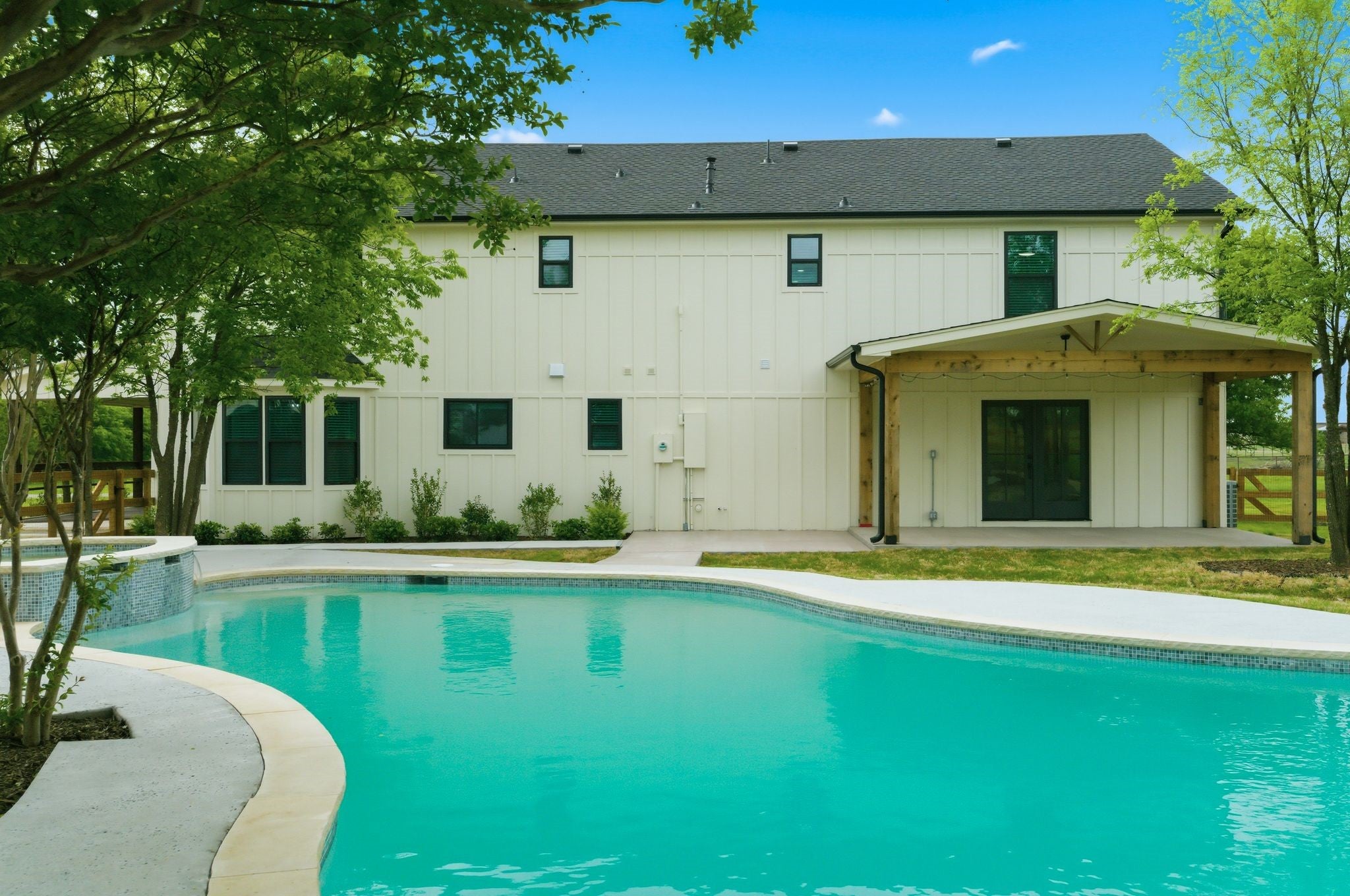 Welcome to an elegant farmhouse retreat where timeless charm meets thoughtful, top-to-bottom renovation.Situated on over 1.5 acres, this cozy cottage-style home has been completely reimagined with nothing left untouched. A stunning wraparound front porch, charming bay window office, and mixed-material exterior with metal roof accents create a warm yet sophisticated first impression.Enter through beautiful French doors greeted by a functional mud bench nook and then flows effortlessly into a versatile and expansive floor plan. The main level offers two inviting living areas, a dedicated office, a serene primary suite, and a massive utility room designed for everyday ease. The gallery-style kitchen is both refined and functional, featuring all-new white Caf appliances and ample space for gathering.Upstairs, a spacious loft anchors four generously sized, sprawling bedrooms and two full baths, along with an additional utility room ideal for flexible living, guests, or multi-generational needs. Each space has been thoughtfully designed to feel both open and comfortable, offering true versatility.This home delivers peace of mind with extensive upgrades, including a brand-new HVAC system with all new ductwork, fully updated electrical and plumbing, new roof, new appliances, and more.Escape outdoors to an expansive backyard oasis equipped with a Texas-sized pool & spa, plus an oversized detached garage that easily doubles as a workshop or creative space.With nearly 1.6 acres and an additional acre available to the east this property offers room to grow, relax, and entertain in style.An exceptional blend of elegance, comfort, and modern convenience ready to welcome you home.