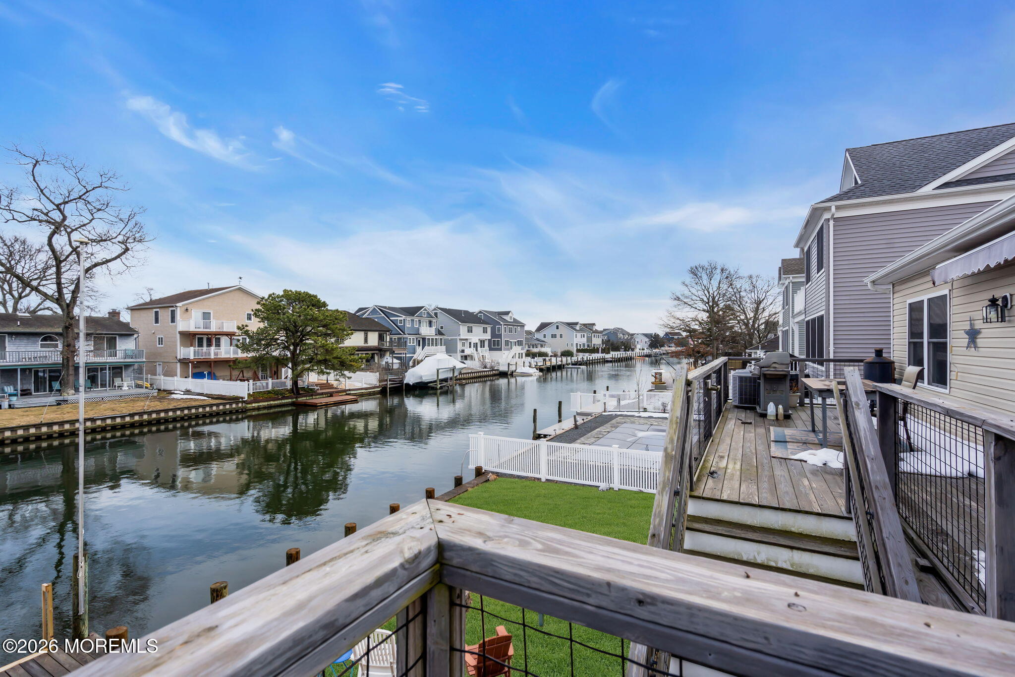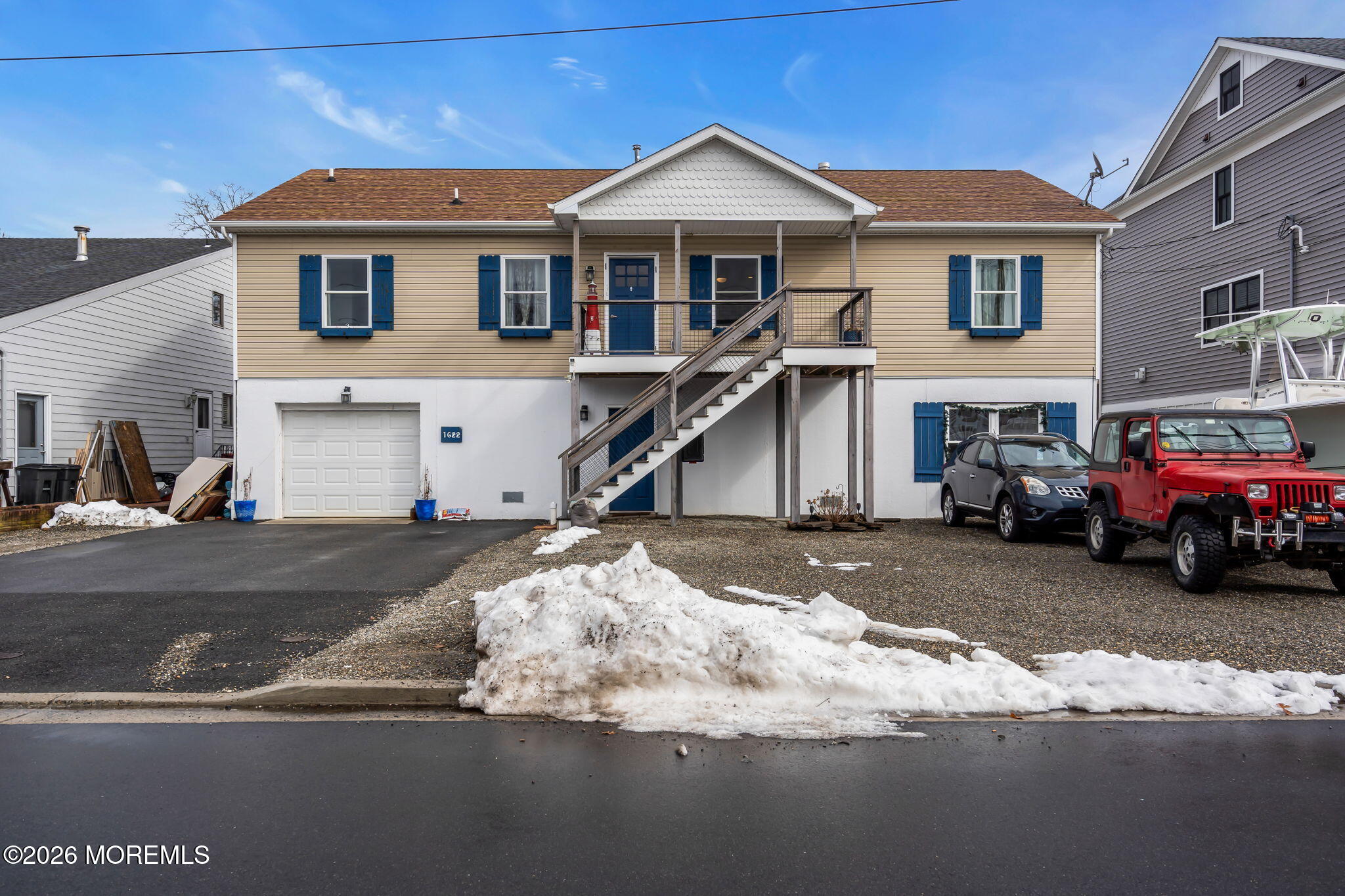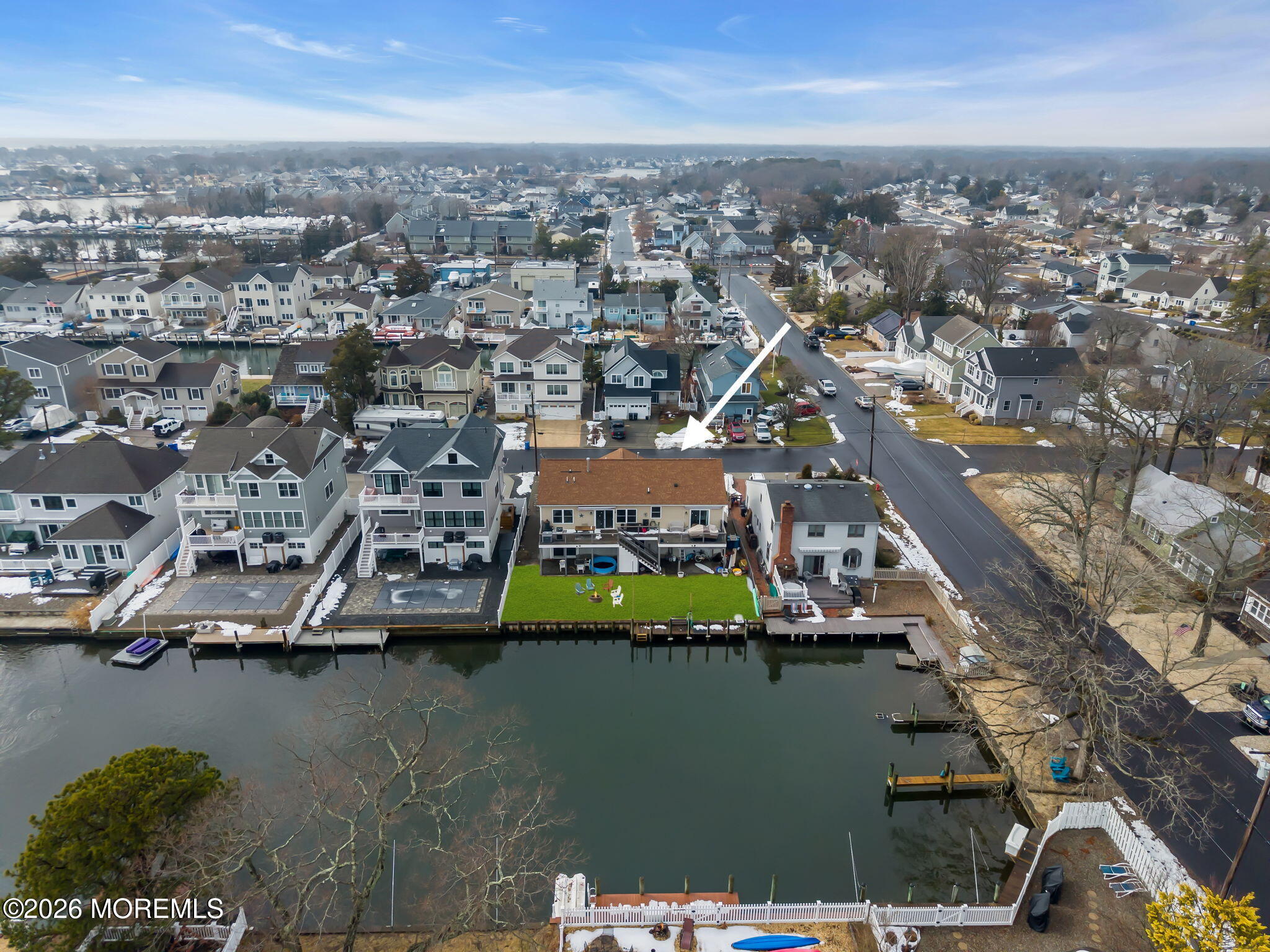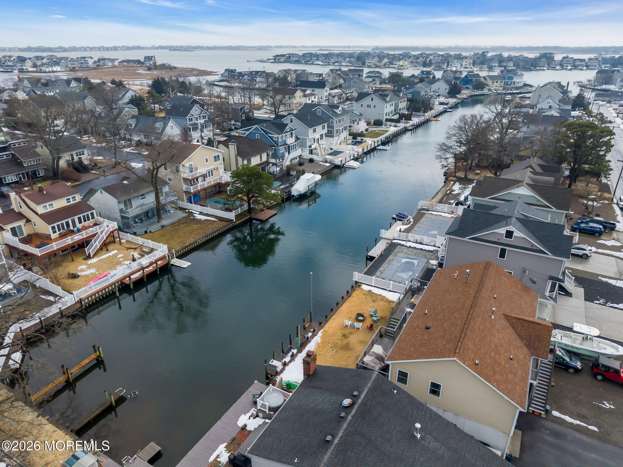 Rare opportunity in desirable Sunshine Harbor, a waterfront property with 70 feet of vinyl bulkhead offering direct access and the coastal lifestyle buyers dream about. Newly built and elevated in 2018, this home offers modern construction and a flexible layout designed for comfortable living and easy entertaining. This home welcomes you with a spacious laundry room and bonus sitting room, luxury vinyl flooring and an inviting gas fireplace that anchors the living space. A well designed kitchen with pantry closet, that is prepped for a potential elevator, flows seamlessly into the dining and living areas. While sliding doors lead to a spacious deck overlooking the water, ideal for morning coffee or outdoor dining. A full bath with tile flooring adds convenience to this level. The primary suite offers a retreat with waterviews and a private set of slider doors to the deck and is complete with a walk in closet and an updated full bath featuring a double vanity and walk in shower. Additional highlights include a full walk up attic providing excellent storage or future expansion potential. The ground level also offers exceptional flexibility with a garage, dedicated workshop space, abundant storage, generous bonus space with sliders to the backyard. Built with Superior wall insulation, the lower level offers durability, efficiency, and endless possibilities for customization. A rare combination of waterfront access, generous storage, smart layout, and quality construction.