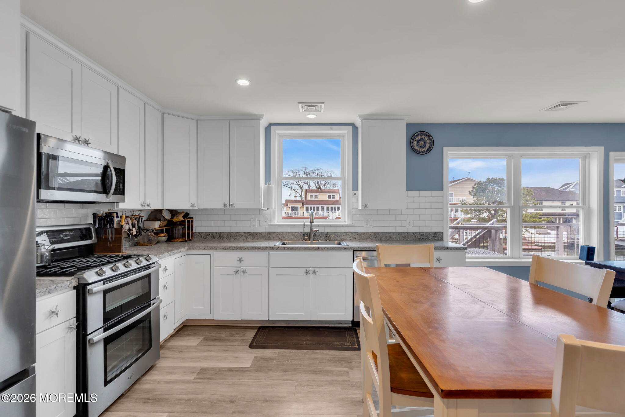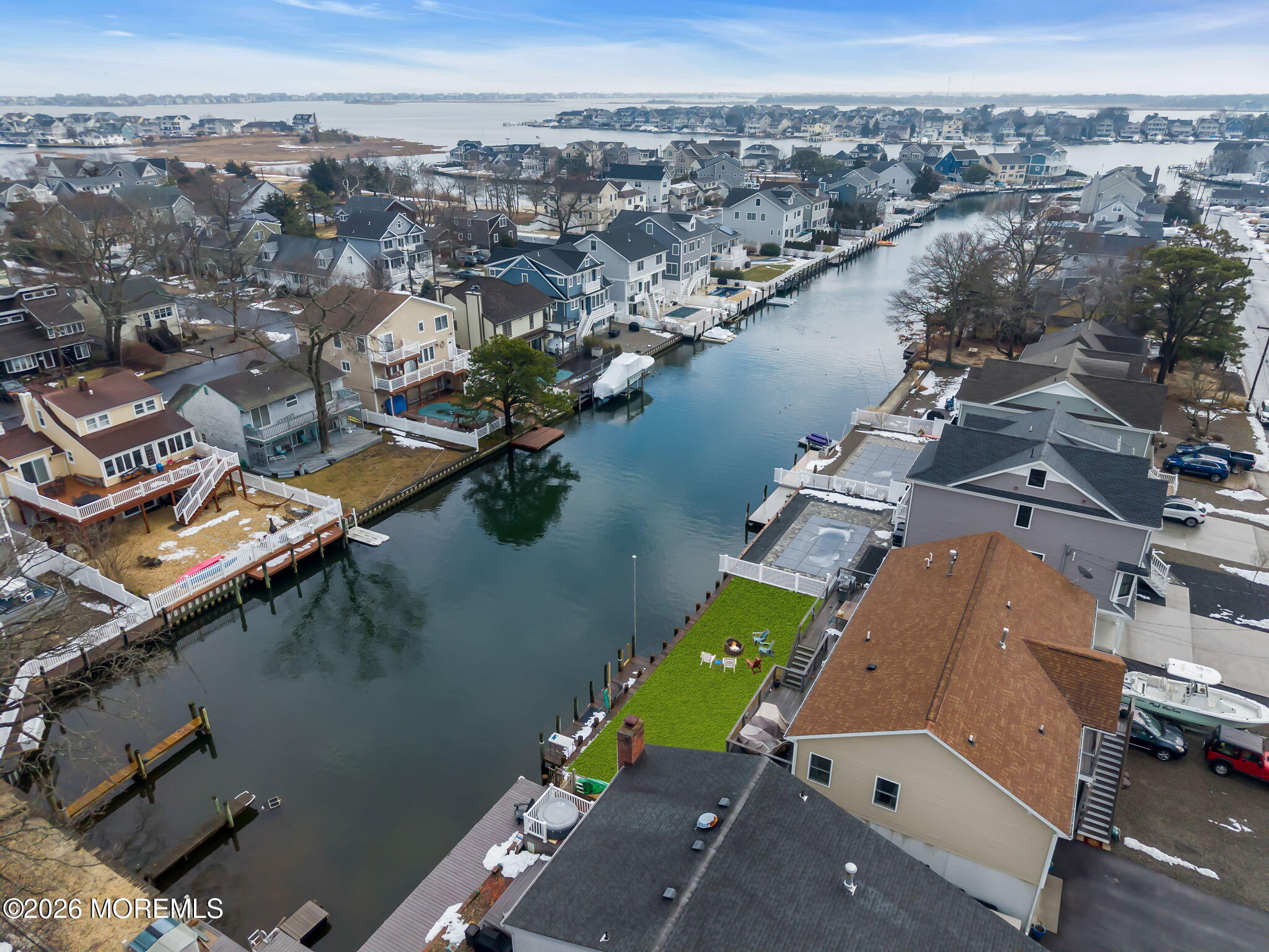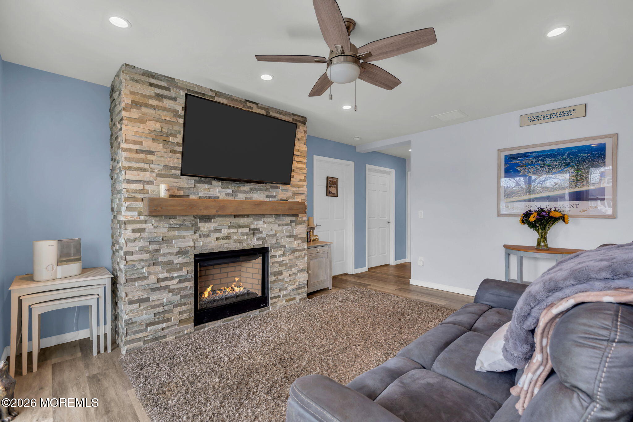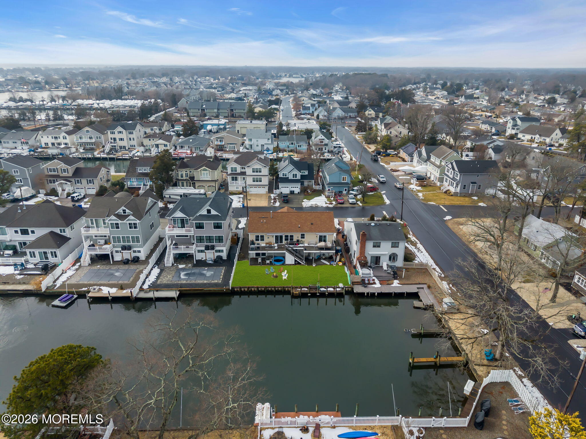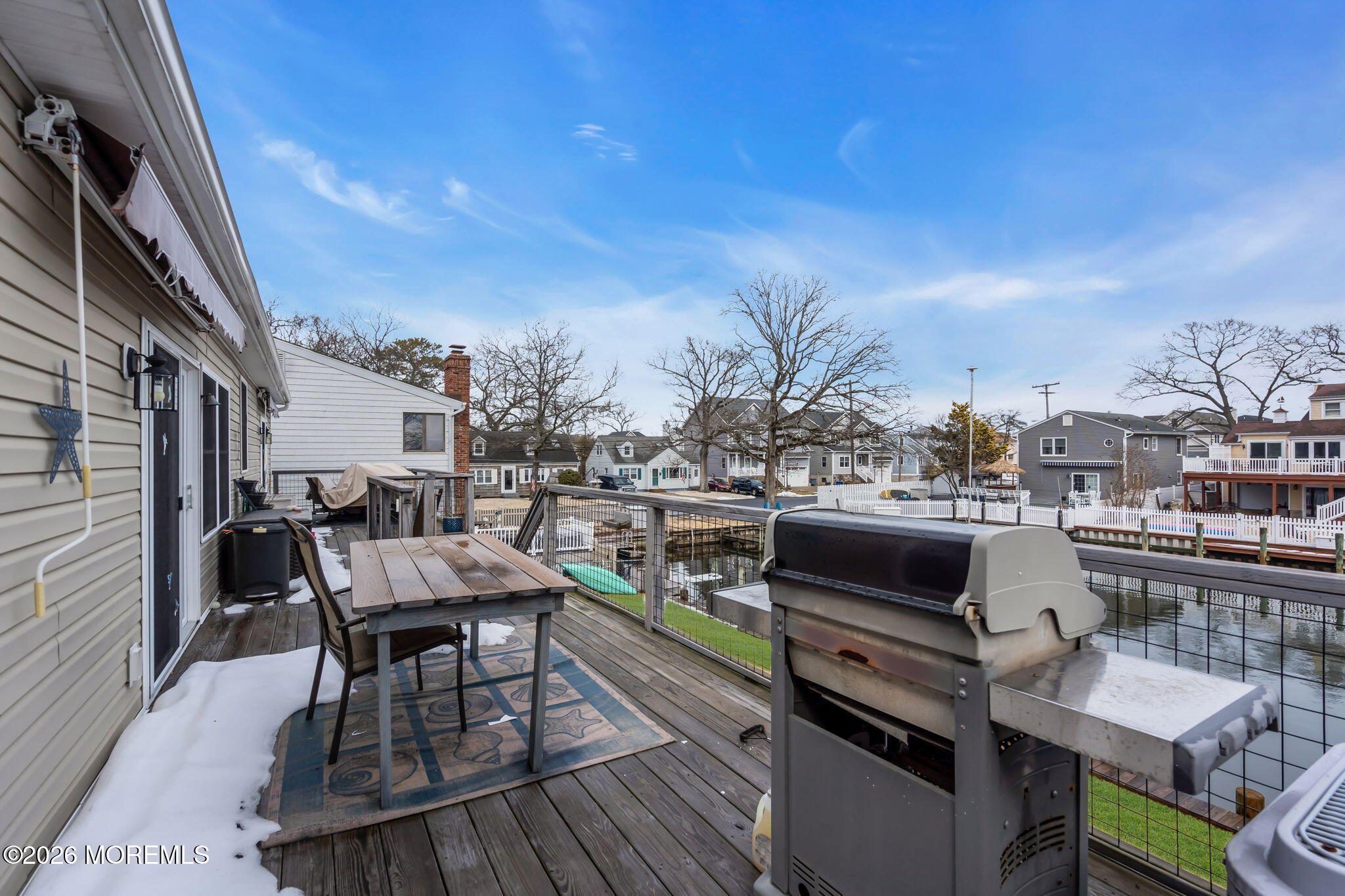 Rare opportunity in desirable Sunshine Harbor, a waterfront property with 70 feet of vinyl bulkhead offering direct access and the coastal lifestyle buyers dream about. Newly built and elevated in 2018, this home offers modern construction and a flexible layout designed for comfortable living and easy entertaining. This home welcomes you with a spacious laundry room and bonus sitting room, luxury vinyl flooring and an inviting gas fireplace that anchors the living space. A well designed kitchen with pantry closet, that is prepped for a potential elevator, flows seamlessly into the dining and living areas. While sliding doors lead to a spacious deck overlooking the water, ideal for morning coffee or outdoor dining. A full bath with tile flooring adds convenience to this level. The primary suite offers a retreat with waterviews and a private set of slider doors to the deck and is complete with a walk in closet and an updated full bath featuring a double vanity and walk in shower. Additional highlights include a full walk up attic providing excellent storage or future expansion potential. The ground level also offers exceptional flexibility with a garage, dedicated workshop space, abundant storage, generous bonus space with sliders to the backyard. Built with Superior wall insulation, the lower level offers durability, efficiency, and endless possibilities for customization. A rare combination of waterfront access, generous storage, smart layout, and quality construction.