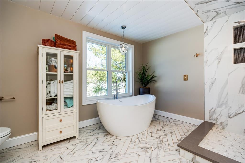One of a Kind, Completed New Construction In Western Cranston. This Modern Colonial features 3,095 sq/ft of above ground living space- highlighted by a high-end kitchen and incredible primary suite. 5 Braeburn Circle is meticulously designed with custom finishes and natural wood detail throughout. Enter into a spacious foyer with first floor office and conveniently located half bathroom.