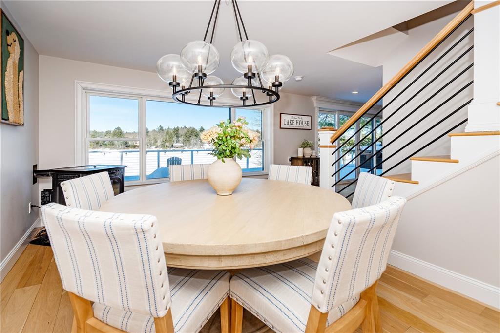 Waterfront living at its finest on sought-after Watermans Lake in Glocester, RI. This exceptional home offers breathtaking water views and direct access to a fully recreational lake perfect for boating, fishing, kayaking, swimming, and water skiing right from your own backyard. The exterior showcases premium, low-maintenance materials including Everlast composite siding on the front and rear, Azek trim around all windows and doors, copper exterior lighting, Trex decking, and a Unilock paver patio ideal for entertaining. A substantial 115-foot stone retaining wall was completely rebuilt at the time of purchase, adding both beauty and peace of mind. Inside, the home features wide-plank 6 engineered white oak hardwood floors on the main level and thoughtfully selected finishes throughout. The kitchen and bathrooms are appointed with quartz countertops, complemented by a marble backsplash in the kitchen. The living room offers cozy ambiance with a gas fireplace insert, while a Harman pellet stove provides efficient supplemental heat. All bathrooms feature Toto toilets and Grohe fixtures, with a marble shower in the second-floor bath and a luxurious heated floor in the primary bathroom. A whole-house water filtration system adds an extra layer of comfort and quality. Whether youre enjoying serene lake views, hosting gatherings by the water, or embracing an active outdoor lifestyle, this home delivers a rare combination of recreation, craftsmanship, and timeless design.