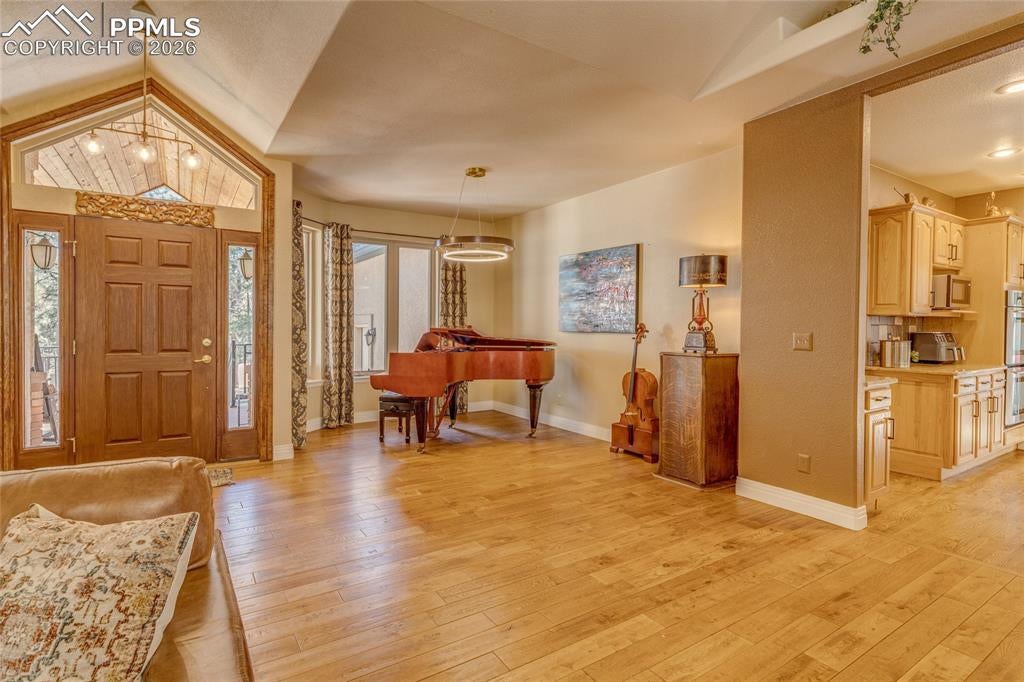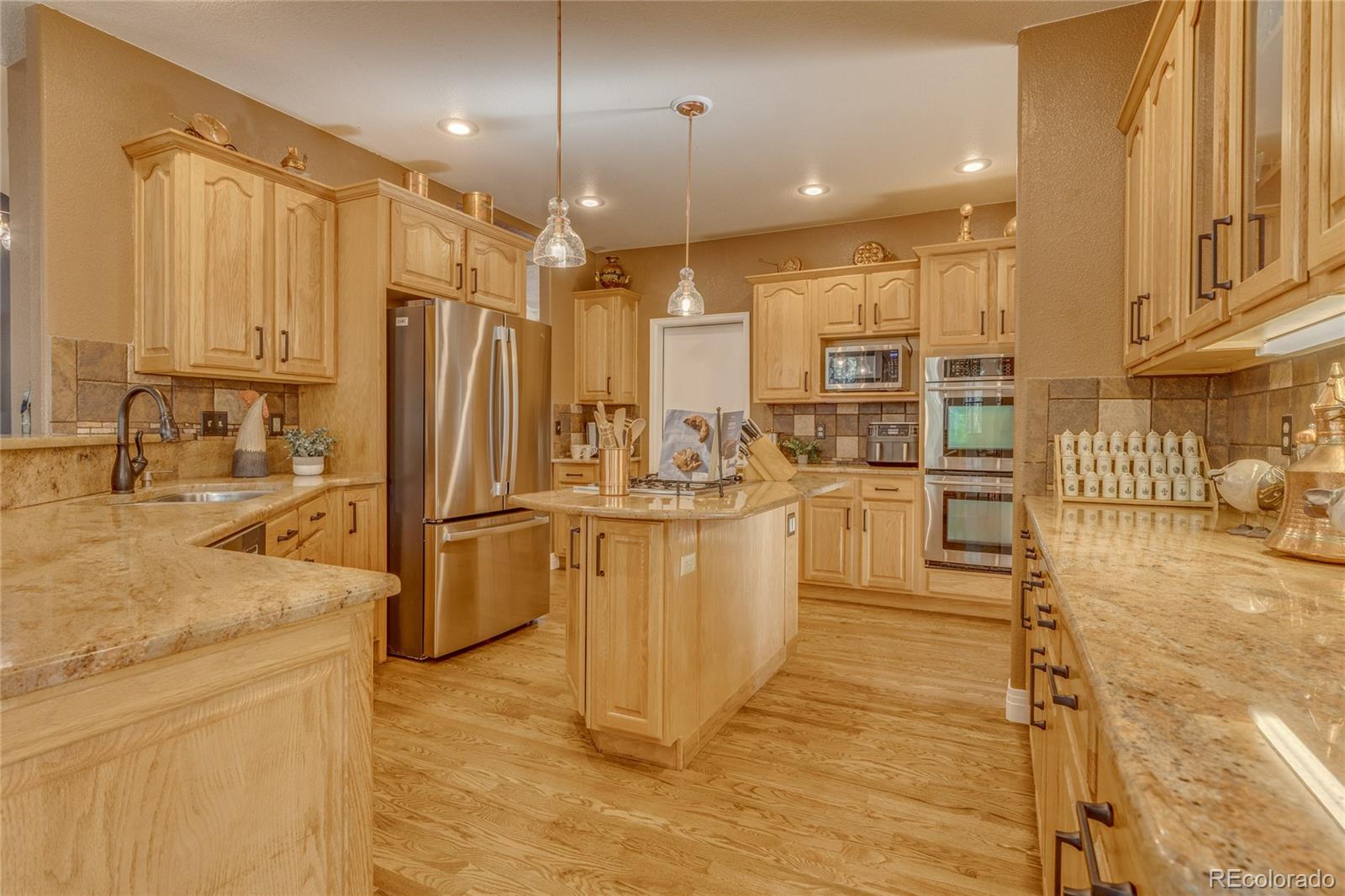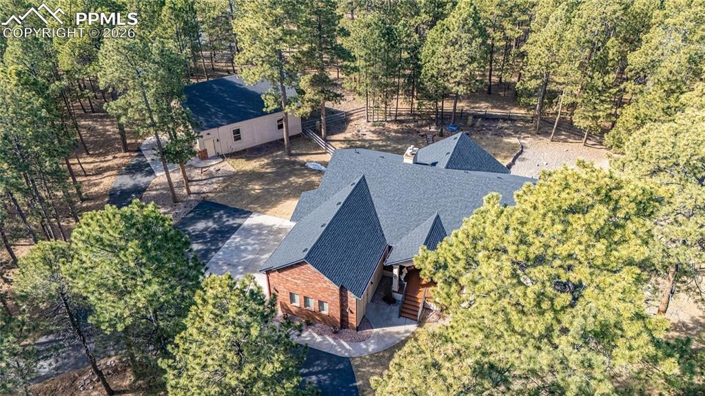 Welcome to this beautifully maintained home located in the desirable Wissler Ranch, corner lot sitting on 2.51 acres with a circular driveway. This impressive property offers five bedrooms, five bathrooms, three gas fireplaces, and more than seven combined attached and detached garage spaces. The home is in immaculate, move-in ready condition and designed for comfortable living and effortless entertaining both inside and out. Upon entering, you are welcomed by a bright living area with vaulted 12-foot ceilings and a dramatic floor-to-ceiling stacked stone gas fireplace that creates a striking focal point. The living room flows seamlessly into the gourmet kitchen and dining area. The well-designed kitchen features abundant cabinetry, granite countertops, a large pantry, double ovens, and a spacious island with a gas cooktop that provides generous workspace for cooking and gathering. Large windows surround the dining area, filling the space with natural light. Just off the kitchen is a large laundry room with extensive cabinetry, a utility sink, and a nearby half bath for added convenience. Both the kitchen and living room provide direct access to the spacious 30 x 15 covered tongue-and-groove deck, perfect for outdoor dining, relaxing, or entertaining guests. The main level also includes a private office with double doors and a nearby full bathroom. The spacious primary suite features a 12-foot ceiling, private deck access, a five-piece bathroom, and a cozy sitting area with its own fireplace. The walk-out basement offers additional living space with 9-foot ceilings, large entertainment area with a gas fireplace, dry bar, flexible bonus room, and three additional bedrooms with well-designed bath access. A standout feature is the heated 30x39 detached garage with two 10-foot doors, ideal for RVs, boats, and projects. The home also features an updated Class 4 roof, adding durability and value. This property offers exceptional space, comfort, and versatility.