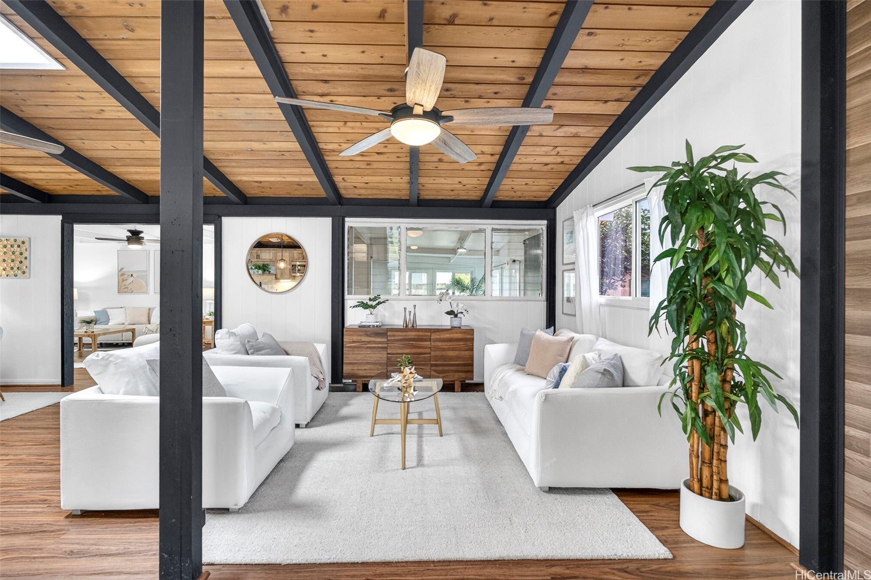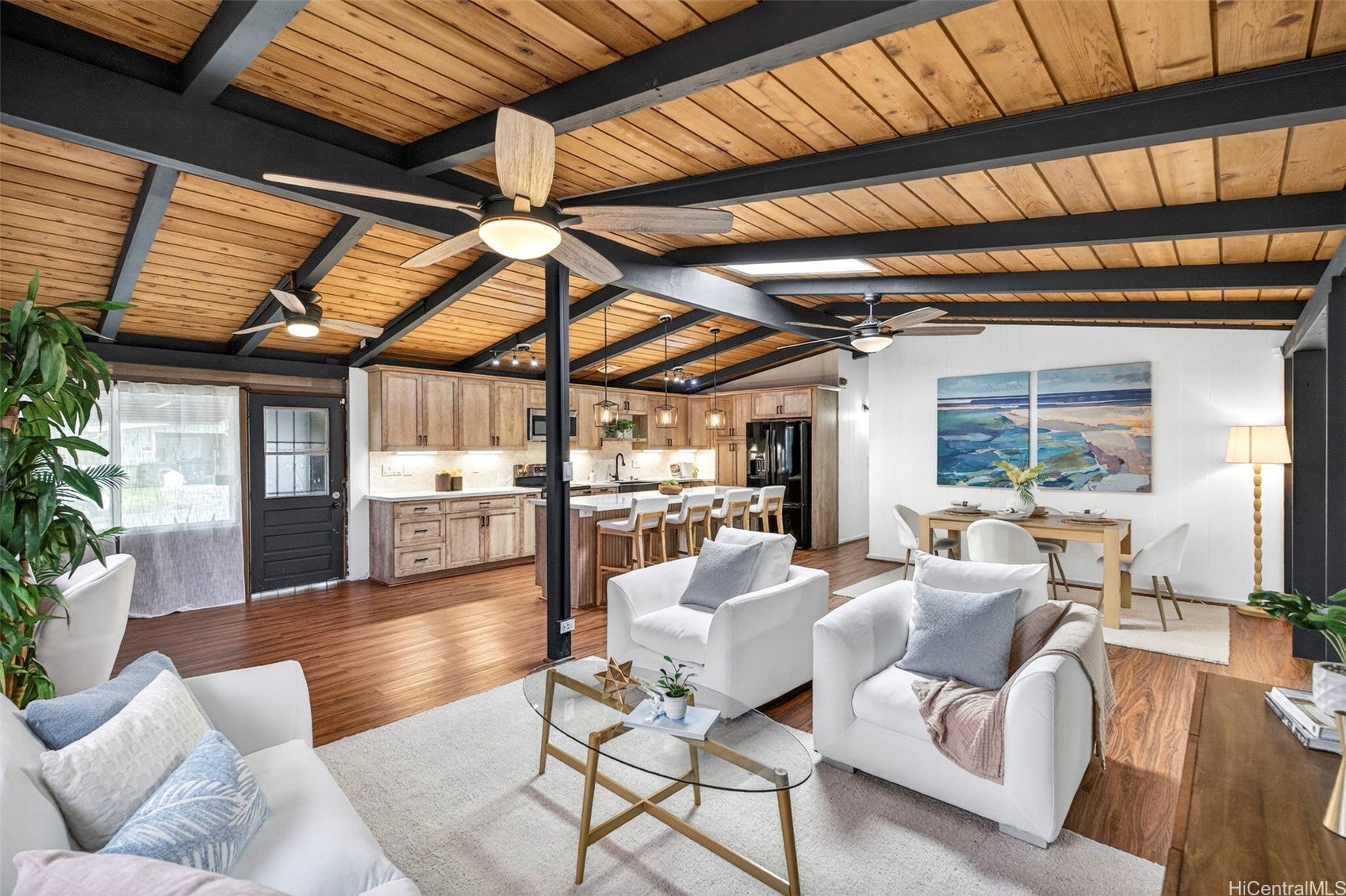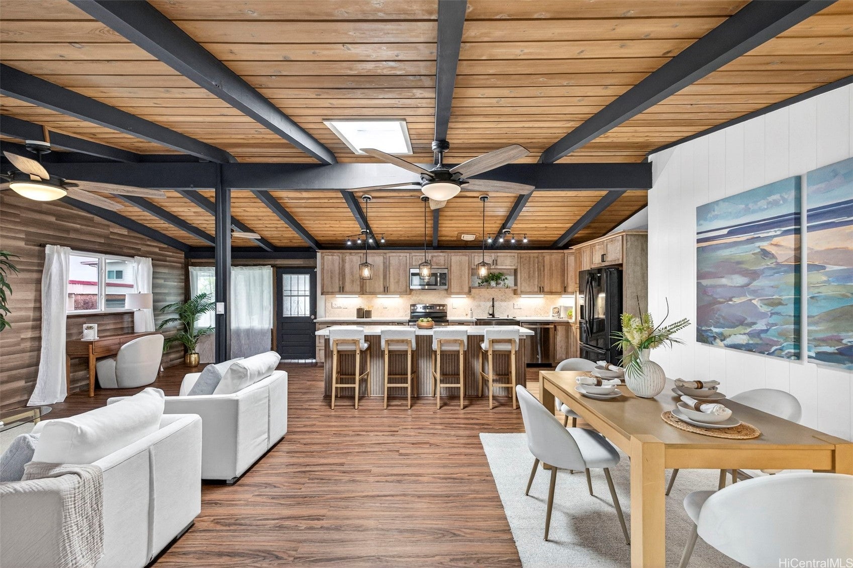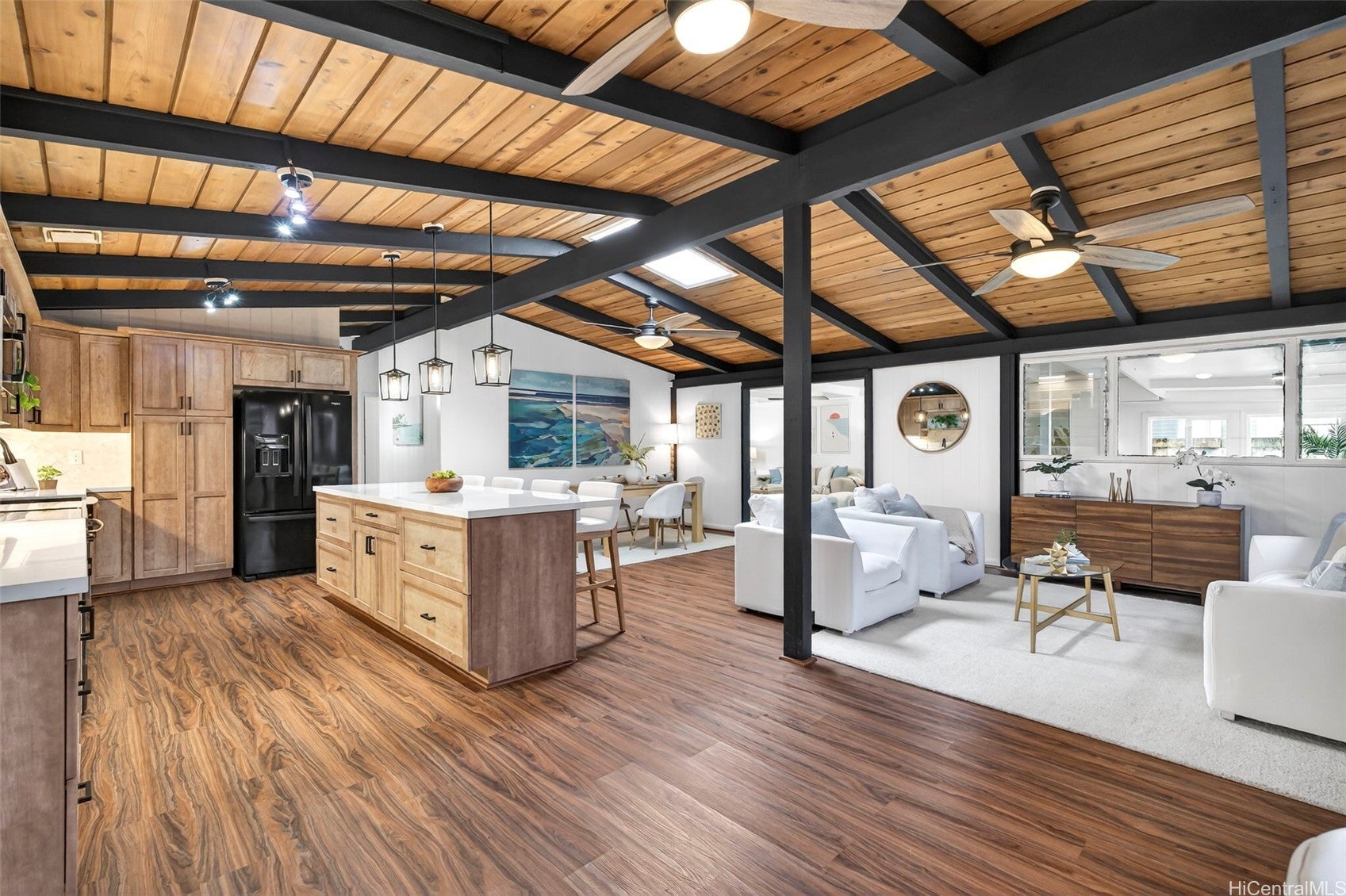 Located in Pacific Palisades, this expansive single-level home offers a rare blend of space, flexibility, and efficiency. The main residence features 5 bedrooms and 2 bathrooms with a versatile layout designed to accommodate a variety of living needs. A converted garage studio adds even more functionality, complete with its own living area, kitchenette, and full bathroom. Inside, the home has been thoughtfully updated with a fully renovated kitchen and new flooring throughout, creating a fresh and cohesive feel. The property also benefits from both leased and owned solar to help offset utility costs. Outside, enjoy a fully fenced yard with fruit trees, ample parking, and the ease of single-level living. With an exceptionally low HOA of just 75 per year, residents also enjoy access to the community association pool for added lifestyle value.