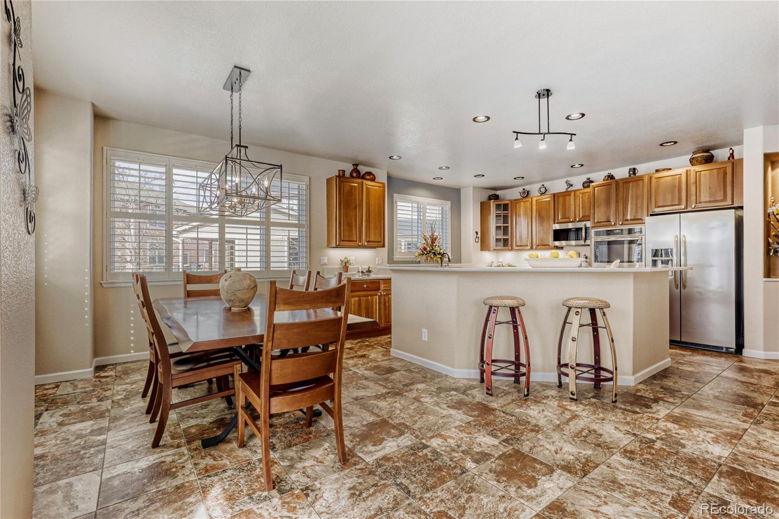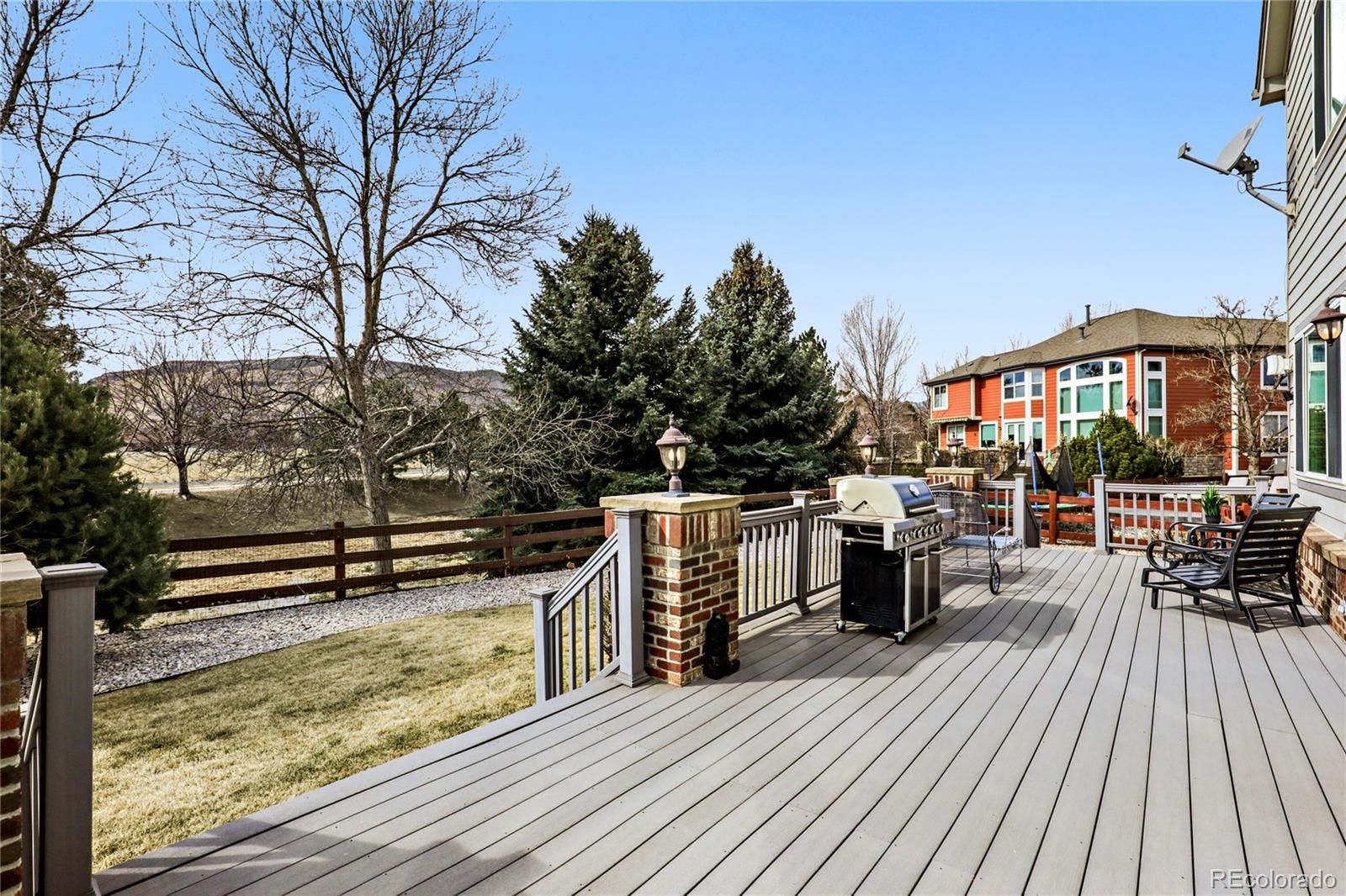 SHOWSTOPPER! Welcome to your Colorado retreat in the highly sought after Sunrise Ridge-where serenity, nature & panoramic North Table Mountain views create an unforgettable backdrop!Perfectly positioned on a scenic, expansive lot backing to natural surroundings, this impeccably maintained home offers light-filled open living. Soaring vaulted ceilings & dramatic floor-to-ceiling windows frame the lush backyard, towering trees, and Table Mountain like living artwork.Designer finishes & features elevate every space-including a dramatic staircase, custom paint, upscale lighting/window coverings & a handsome main-floor office. The expansive vaulted family room, anchored by a cozy gas fireplace, flows seamlessly into the beautifully remodeled kitchen featuring upscale cherry cabinetry, quartz countertops, stainless appliances, & cheerful breakfast nook. Elegant formal dining & separate living/music room provide refined spaces for holidays & gatherings. The spacious primary suite is a true sanctuary, capturing breathtaking sunrise views across North Table Mountain through expansive windows. Indulge in the luxurious 5piece bath with radiant heated tile floors, soaking tub, extended shower & large walk-in closet. 3 additional upper bedrooms each offer walk-in closets & beautifully remodeled bath access.The finished basement adds versatility with a media/rec room, bedroom, bath, large non-conforming bedroom (no closet) or gym, office & 2 storage/flex/craft rooms.The professionally landscaped backyard is a private sanctuary-with multiple inviting seating areas, a fire pit & an expansive deck designed for relaxing, BBQs & effortless entertaining. Sip morning coffee to a symphony of birds and take in fiery Colorado sunsets painting North Table Mountain in brilliant hues of orange and pink. 3car attached garage. Coveted schools. Enjoy easy access to Downtown Goldens renowned restaurants, breweries, festivals, shops, and miles of trails.Colorado lifestyle at its finest!
