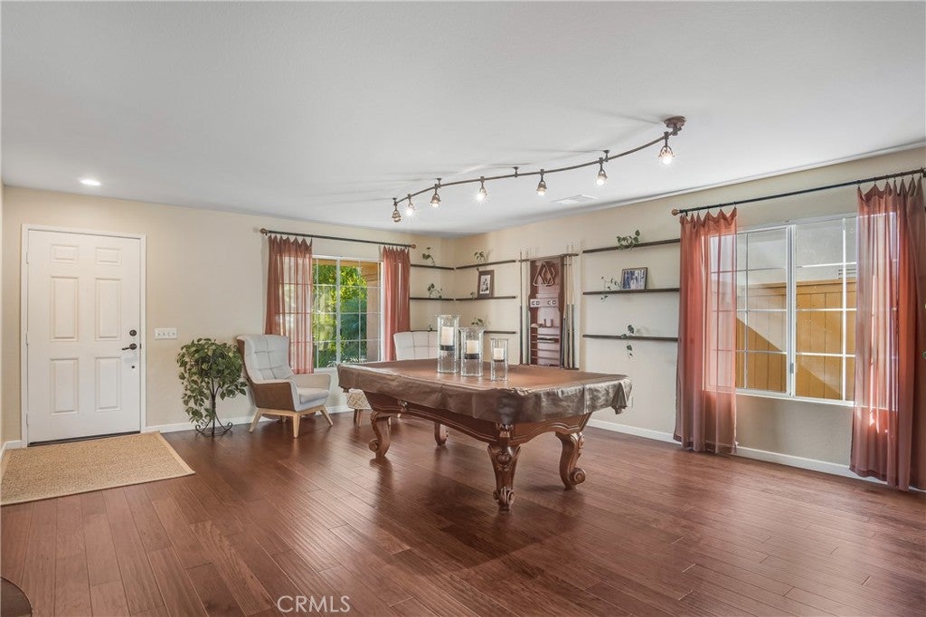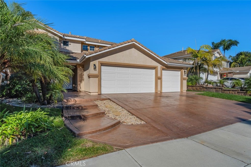 Nestled within the highly sought-after gated community of River Ranch, this beautifully maintained 2,650 sq ft residence blends comfort, function, and timeless style with five bedrooms and three full baths. The main level features wood flooring and a spacious kitchen designed for both everyday living and effortless entertaining. A convenient downstairs bedroom and full bath add flexibility for guests or multi-generational living. Upstairs, the primary suite is joined by three additional bedrooms and a centrally located laundry room for everyday ease. The exterior is wrapped in stamped and colored concrete, extending seamlessly through the backyard and driveway for a cohesive, upscale finish. A three-car garage with epoxy-coated flooring offers durability with a clean, polished look. The backyard provides an inviting setting for outdoor dining and gatherings, complete with a generous play area that adds both comfort and functionality. Located within the community, residents enjoy access to a pool, jacuzzi, and playgrounds. The home is just minutes from local elementary, middle, and high schools, with shopping and everyday conveniences close by. Plus, just a short ten-minute drive to the beach brings coastal living within easy reach. Lovingly built and meticulously cared for by the original owners, this home has been the backdrop for countless memories. Its now ready for its next chapter! Schedule your private showing today—this one is truly ready to experience in person.