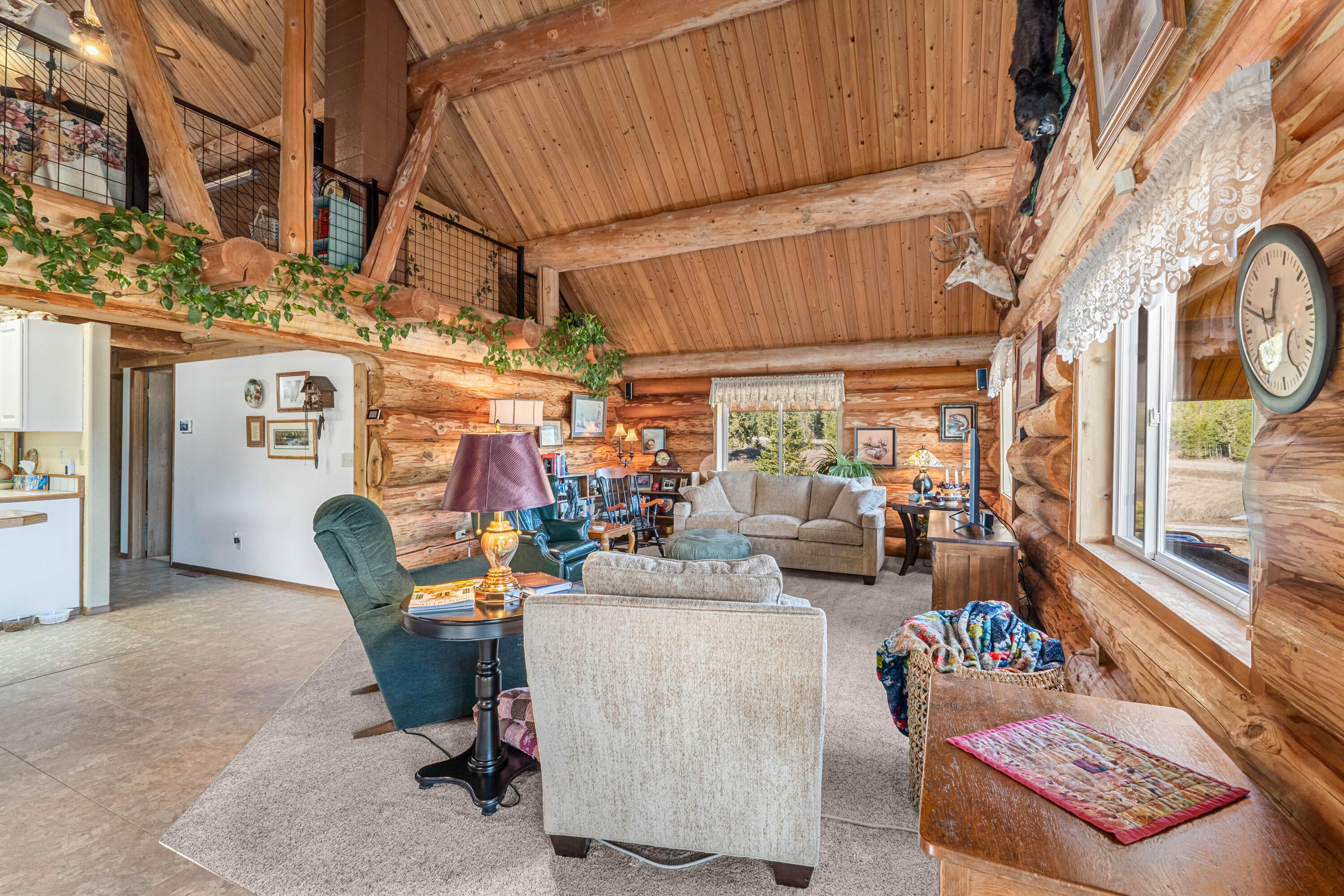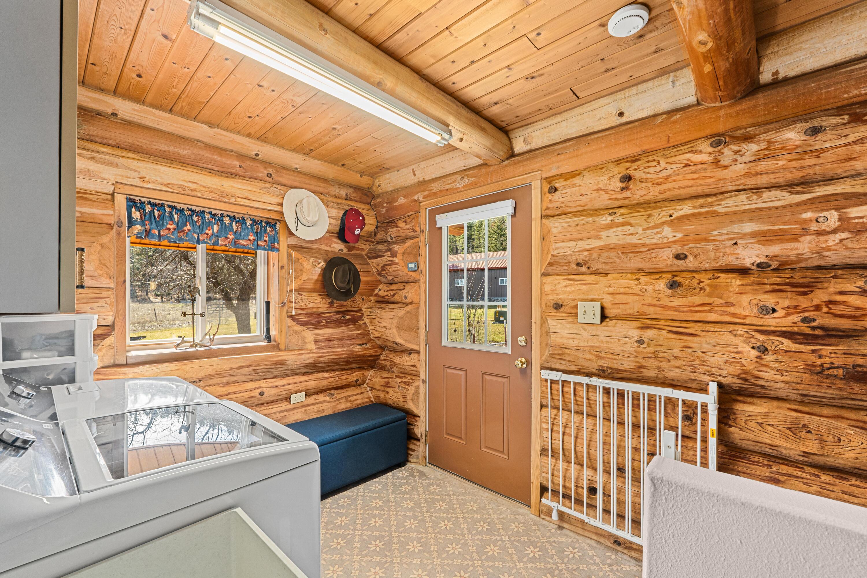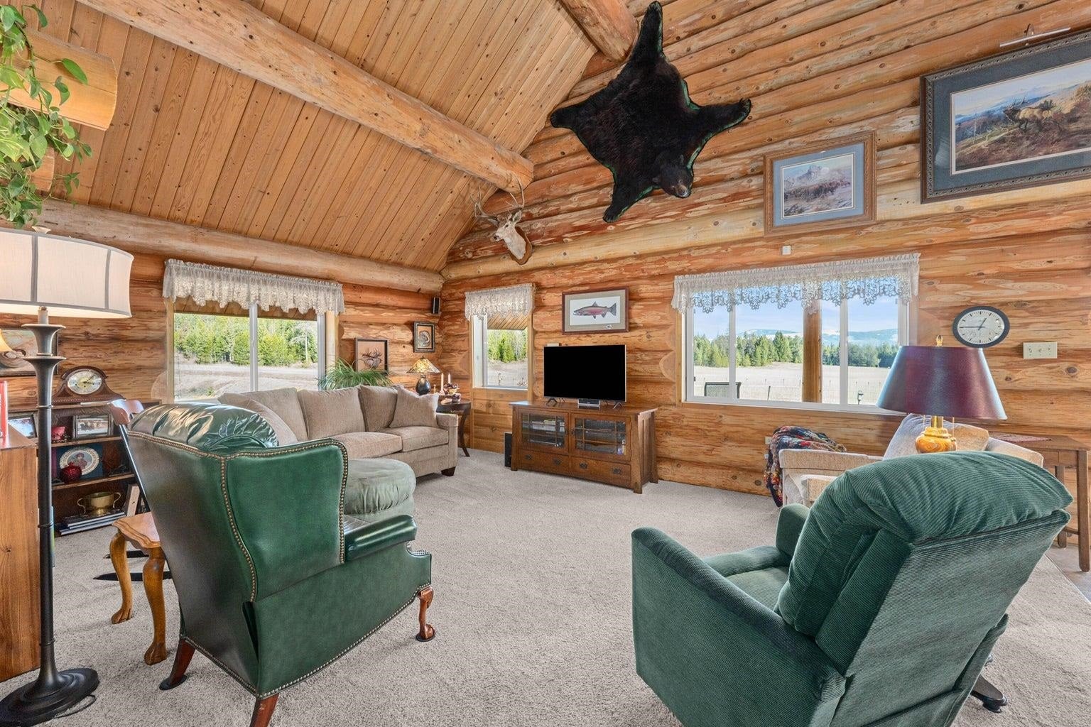 Hard to find end of the County Road property with a Beautiful Log home situated on 154 diverse farm ground and timbered acres. Two ponds and numerous springs on the property. Borders a Govt block and other large timber companies offering great privacy. Terrific views of Hoodoo Mountain. Large shop with tack room, garden space, fruit trees, and an older guest house that could be fixed up for overflow. Unfinished basement could be finished off with additional bedroom and bathroom. Loft space currently being used for craft room. Plenty of room to add a lodge and use current dwellings for guest house or VRBO. Great hunting and recreation in the area. Check out the video! Idaho Stateline just a stone throw away... See Remarks; Exterior: Log Site Improvements: Septic/Drainfield Drilled Well; Remarks: 5 GPM