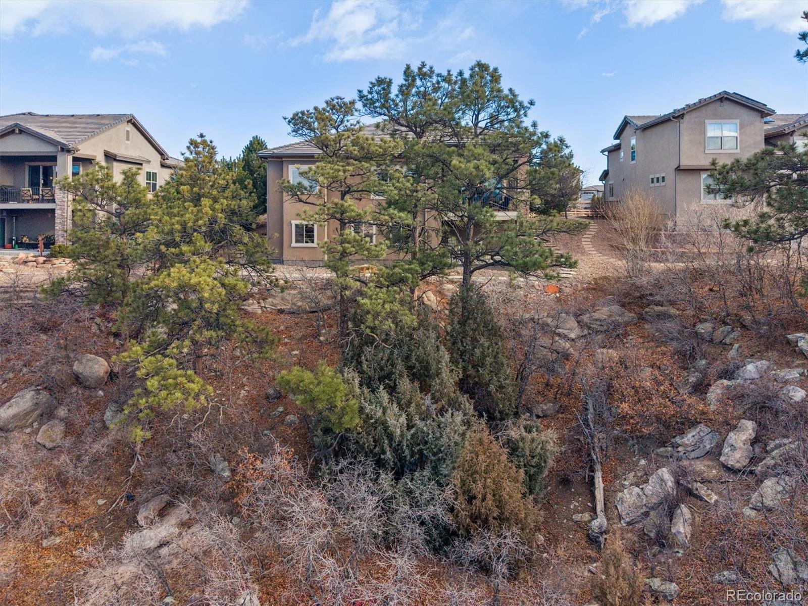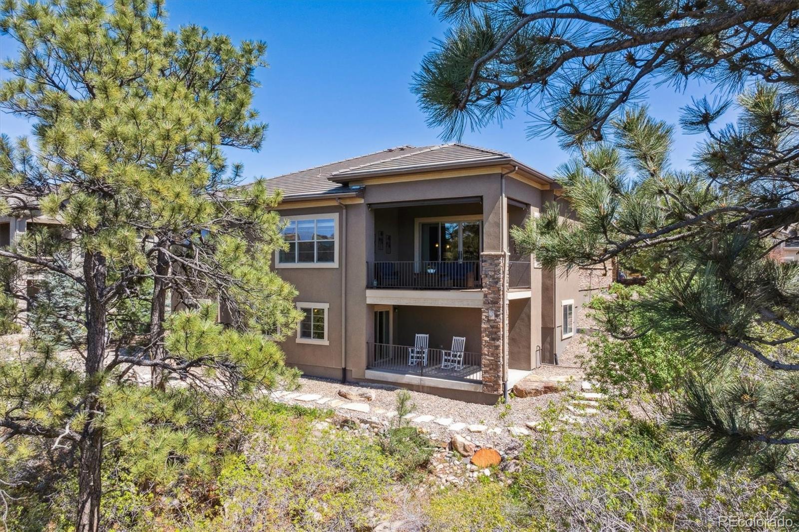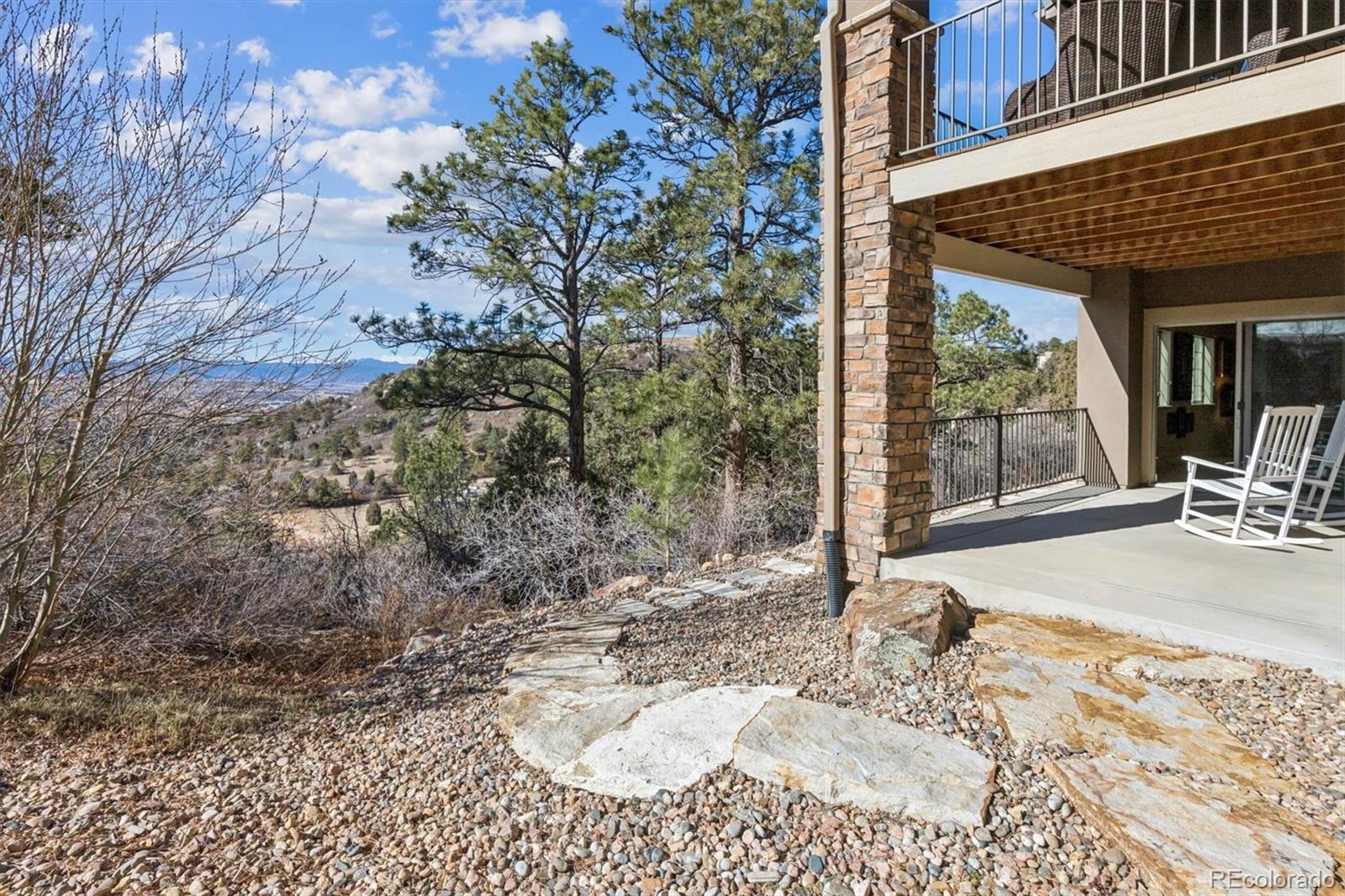 Spectacular mountain & valley views from Pikes Peak to the Sleeping Indian! Cliffside custom ranch style home, situated on a beautiful xeriscaped lot with rock outcroppings, mature pine trees & scrub oak, backs to a beautiful canyon! Beautiful water fall & perennials greet you as you approach the door.