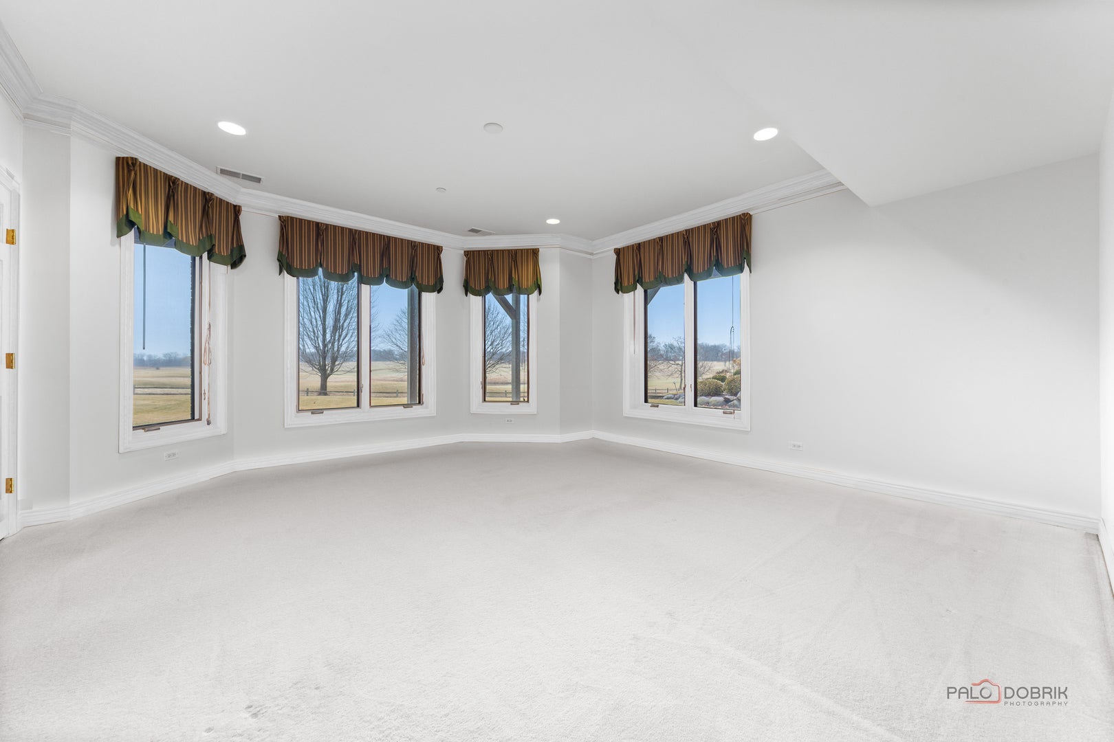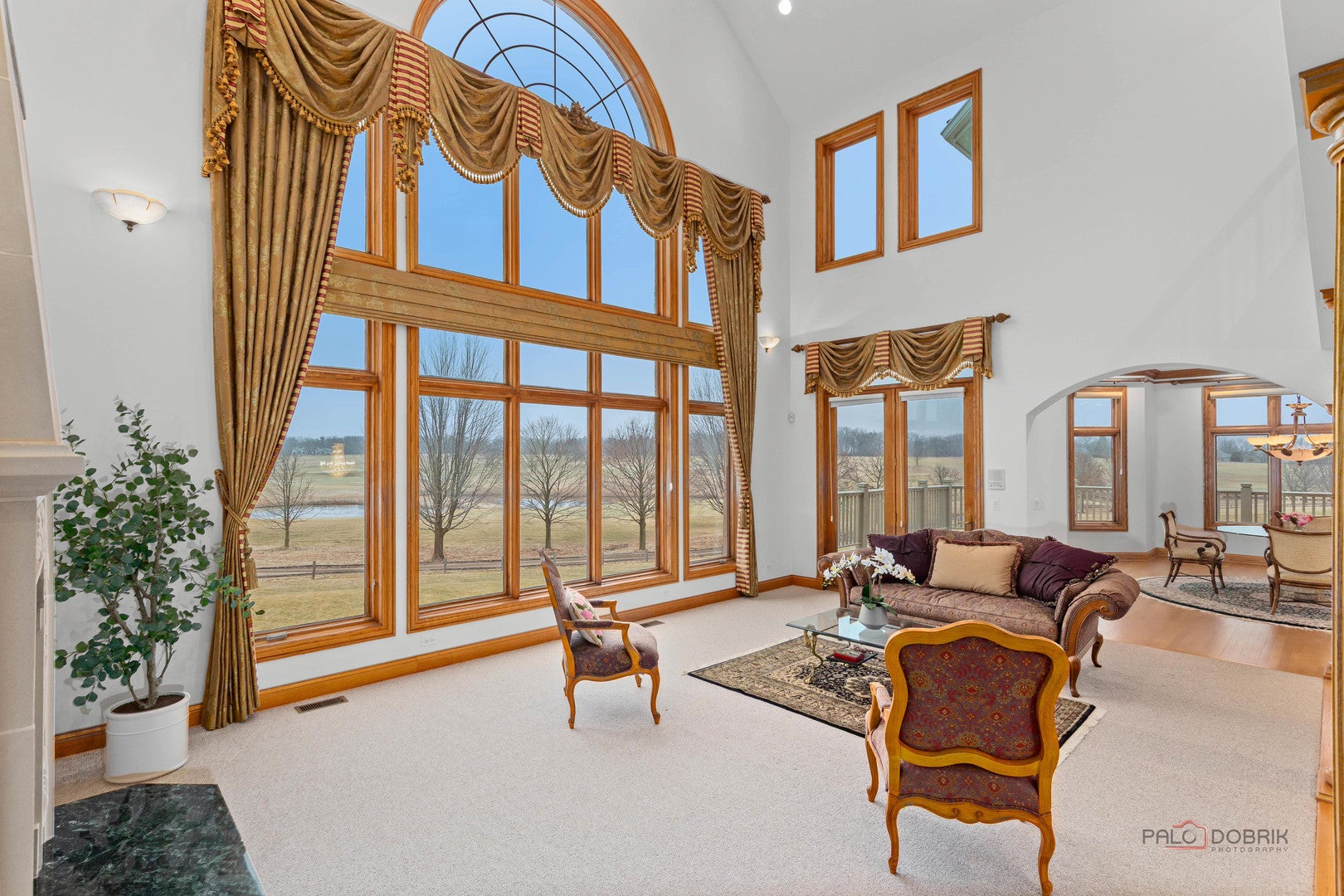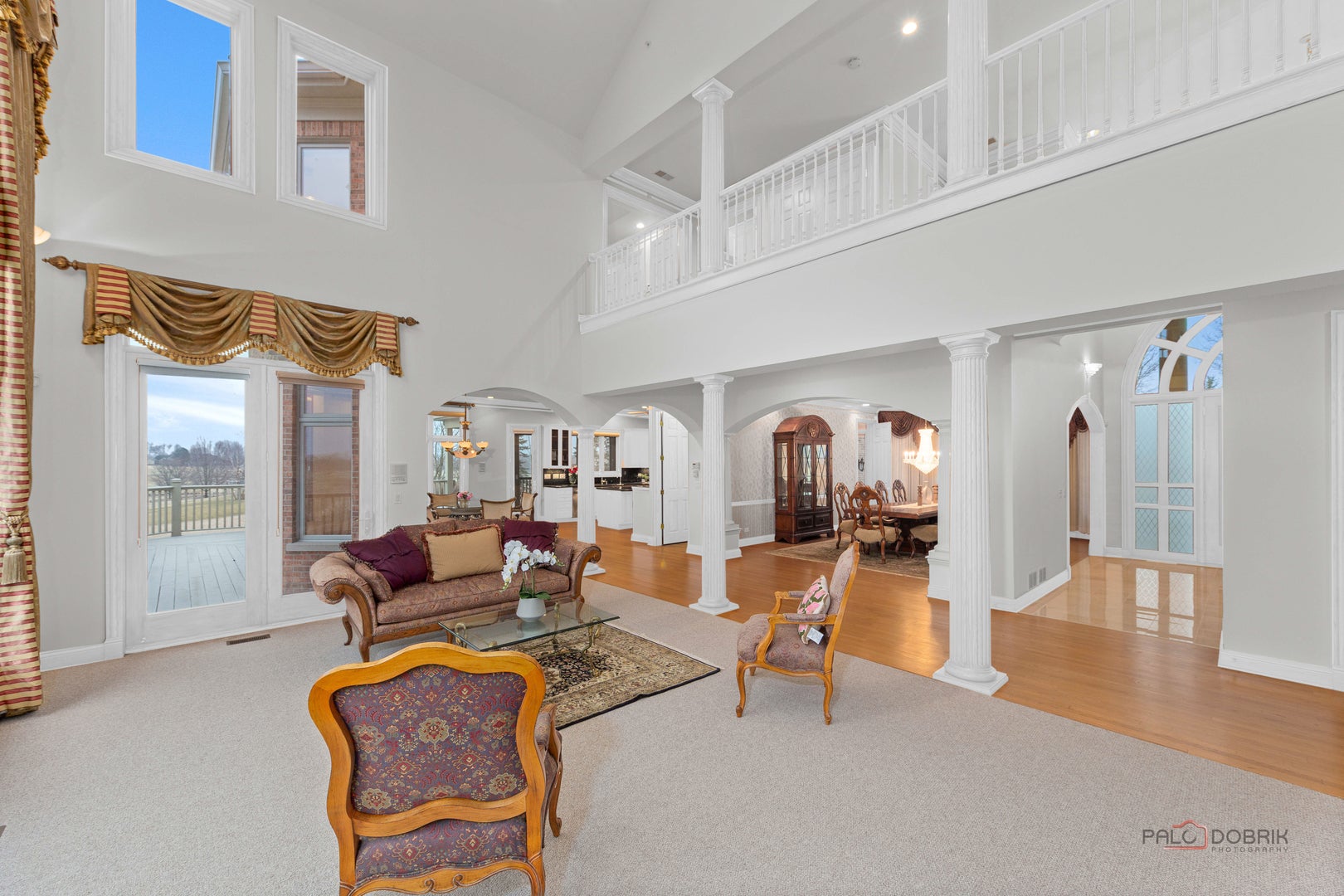 Incredible all-brick 5-bedroom, 5.2-bath home nestled on a quiet cul-de-sac within a prestigious gated community. Situated on nearly one acre, this beautifully landscaped property overlooks the 4th fairway of the Merit Club Golf Course, offering stunning views of ponds and rolling greens. This impressive residence showcases exceptional craftsmanship with detailed millwork, custom built-ins, elegant columns, arched doorways, inlaid hardwood floors, and high-profile moldings throughout. Luxury begins at the grand entrance with an oversized front door leading into a dramatic two-story foyer featuring a sweeping staircase and statement chandelier. The living room offers a tray ceiling, charming bay window, and cozy fireplace, while the formal dining room provides the perfect setting for entertaining and special gatherings. The gourmet kitchen features a large center island with breakfast bar and prep sink, granite countertops, a spacious walk-in pantry, and newer stainless steel appliances including a double oven. The bright and open eating area leads to a screened-in porch, ideal for enjoying the scenic surroundings. The breathtaking family room boasts a wall of windows, a fireplace, and access to a partial wraparound deck. A spacious den, laundry room, and powder room complete the main level. Upstairs, the luxurious primary suite offers spectacular golf course views, two walk-in closets, and a spa-like ensuite bath with dual vanities, whirlpool tub, and separate shower. Three additional bedrooms complete the second level, including two with private ensuites plus an additional full bath. The fully finished walkout basement expands the living space with a fifth bedroom, full bath, and a large recreation room with wet bar and access to a brick paver patio-perfect for entertaining or relaxing. Additional highlights include professional landscaping and a heated three-car garage. Enjoy resort-style living in this spectacular gated community adjacent to a private golf club, while being just minutes from shopping, dining, the train, and tollway access.