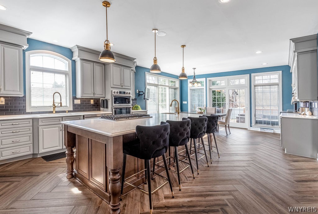 Experience waterfront living with breathtaking sunsets from your oversized deck or balcony off of the master bedroom. This 3-bedroom home with an enclosed widow's walk offers a wide-open floor plan and stunning water views throughout. The custom kitchen features a commercial 6-burner stove with griddle and double oven, Sub-Zero refrigerator, granite countertops, and island.