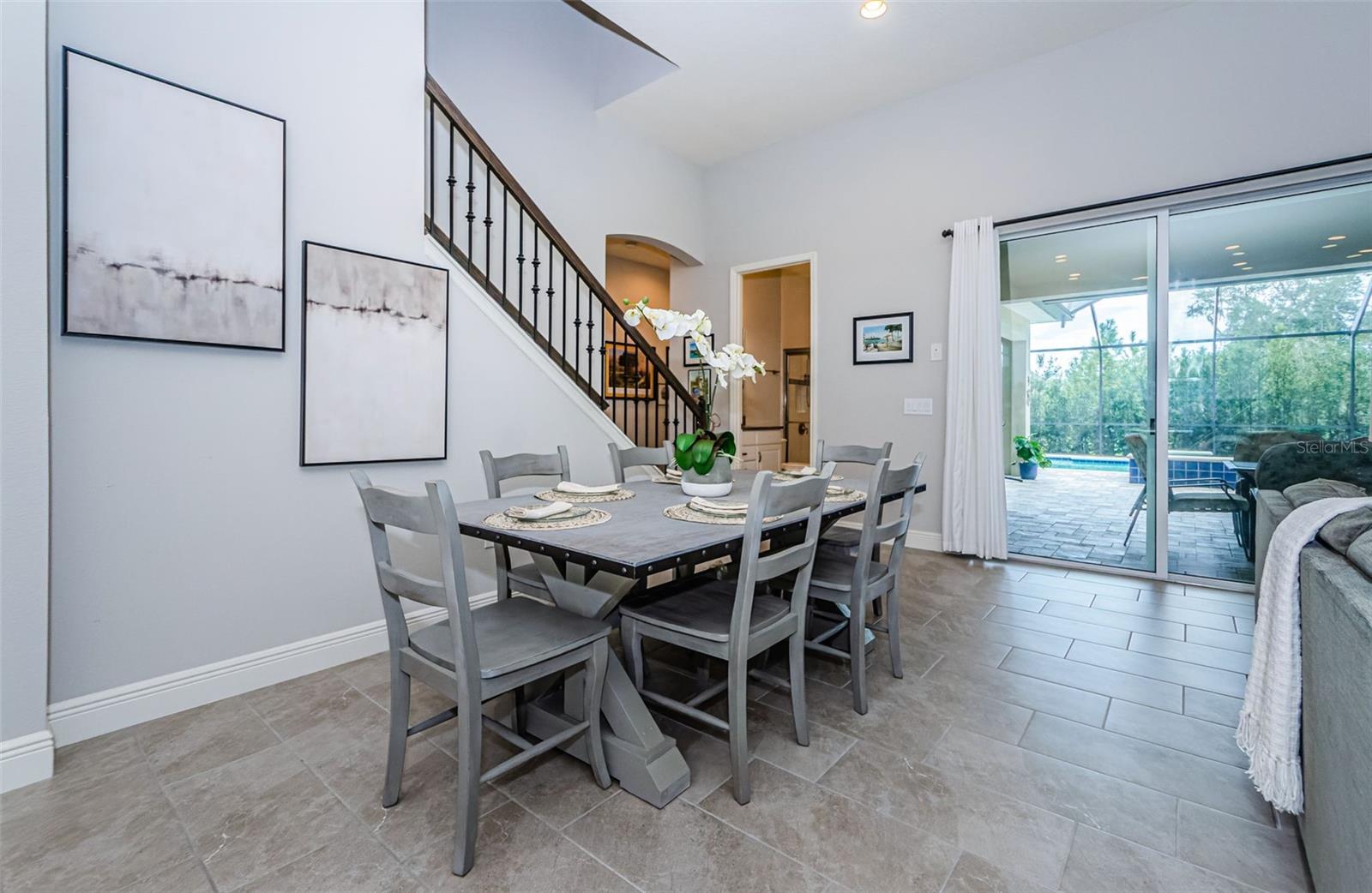 Surrounded by lush tropical landscaping and serene private lake views, this turnkey furnished two-story home in Amador at Fiddlers Creek offers the perfect blend of luxury and comfort. With four bedrooms plus a den, four baths and a two-car garage, it features an inviting open layout, volume ceilings, crown molding and abundant natural light. The updated kitchen boasts new quartz countertops, backsplash, under-cabinet lighting, a touchless faucet, shaker cabinets, a walk-in pantry and stainless steel appliances, including a five-burner gas range. The dining and living areas flow seamlessly to the screened lanai through large glass sliders. The owners suite offers bay windows, wood flooring and two walk-in closets, along with an en-suite bath featuring dual vanities, a walk-in shower and soaking tub. A guest bedroom and den complete the first floor, while two additional guest suites upstairs provide privacy and comfort. Designed for outdoor living, the lanai features a heated saltwater pool and spa with waterfall, sun shelf and a 2022 outdoor kitchen with built-in grill, hood and mini fridge. New manual and electric hurricane shutters add peace of mind. Additional features include a mudroom, new HVAC, split A/C in the owners suite, updated laundry room and an upgraded garage motor and spring. Fiddlers Creek residents enjoy resort-style amenities, including pools, golf, dining, spa, fitness, tennis, pickleball and optional beach and marina memberships. Minutes from downtown Naples and Marco Island, this home offers exceptional luxury and convenience.