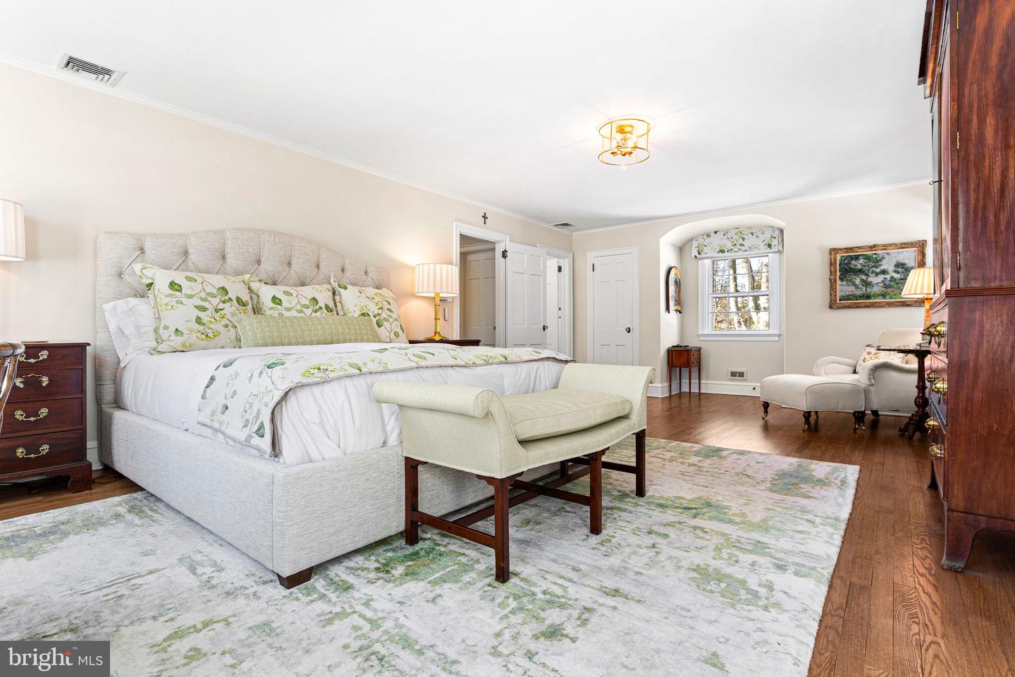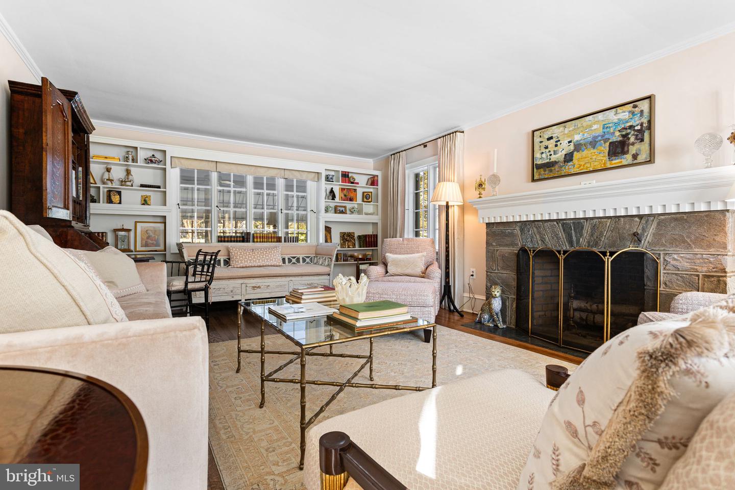 Situated on a private and beautifully landscaped 1.26-acre parcel, this distinguished residence offers 3,428 square feet of thoughtfully designed living space. Originally constructed as a custom builders primary home, the property reflects enduring craftsmanship and architectural integrity, enhanced by an extensive and meticulous renovation program. The exterior improvements are comprehensive and of the highest quality, including the installation of a Vermont slate roof with snow guards and new flashing, a rubber roof on flat sections, asphalt roofing on low-pitch areas, new gutters and downspouts with integrated leaf guards, replacement and repointing of the chimney cap, custom cedar fencing with gated access, new concrete sidewalks, a new copper water service line from the street, a resurfaced driveway with partial Belgian block curbing, new exterior lighting fixtures, and complete exterior repainting. A propane-fired whole-house generator with full connections provides additional peace of mind. Interior enhancements include fully sanded and refinished hardwood floors throughout, complete interior repainting in neutral tones, the installation of two new primary air-conditioning systems, a split heating and cooling system serving the fifth bedroom and garage, and a whole-house dehumidification system. The renovated kitchen features new countertops and sink, redesigned ceiling beams, a custom walnut mantel divider top, and refurbished cabinetry with updated hardware. The first floor offers a gracious living room with stone fireplace, a formal entrance hall highlighted by an elegant curved staircase, and a generously proportioned dining room. The kitchen is both distinctive and inviting, incorporating a dedicated seating area with brick fireplace. A well-appointed den with built-in cabinetry and a shared brick fireplace overlooks the private rear grounds and provides access to a light-filled sunroom. A secondary staircase adjacent to the kitchen leads to a private fifth bedroom with ensuite bath, well suited for guests or extended family. Two powder rooms complete the main level. A secondary front entrance with a private patio offers convenient access to the kitchen, back staircase, and attached garage. The second floor comprises five bedrooms and three full bathrooms, including a spacious primary suite with ensuite bath. Additional bedrooms are arranged to provide flexibility of use, with select rooms suitable for paired bedroom and sitting room configurations or private home offices, and accessible via both the main and secondary staircases. The basement level features notably high ceilings, a finished area with new flooring, a stone fireplace, ample storage areas, and exterior access via basement stairs. Pull-down attic stairs lead to a large floored attic offering additional storage. Throughout the residence, updated lighting, custom window treatments, and cohesive neutral finishes enhance the homes refined character. Ideally located just minutes from Amtrak service (approximately 60 minutes to Moynihan Train Hall in New York City), SEPTA rail service to Philadelphia, and Interstate 95, this exceptional property presents a rare opportunity to acquire a residence of architectural distinction, modern functionality, and outstanding accessibility.
