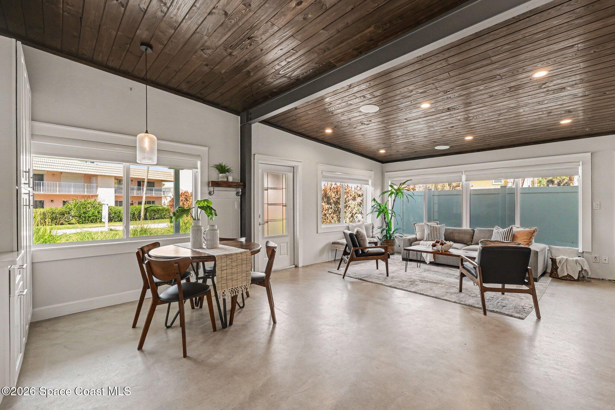 Fully remodeled beachside home and neighboring land lot, located across from the ocean, offering coastal lifestyle, flexibility, and short-term rental potential. Main residence features 2 bedrooms and 1 bath with impact windows, elevated ceilings, modern coastal finishes, and bright open floor plan designed for seamless indoor-outdoor living. A detached studio apartment provides ideal accommodations for guests, multi-generational living, or vacation rental income. Resort-style outdoor living includes a heated saltwater pool with color-changing laminar lights, heated spa, and outdoor heated shower, perfect for post-beach relaxation and Florida evenings. Expansive, low-maintenance yard enhances entertaining and rental appeal, offering exceptional expansion or redevelopment potential. Build up for ocean views and rocket launch visibility, or explore future use as a single-family estate, duplex, triplex, or income-producing property with adjacent lot purchase at 609 Madison, MLS #1062588.