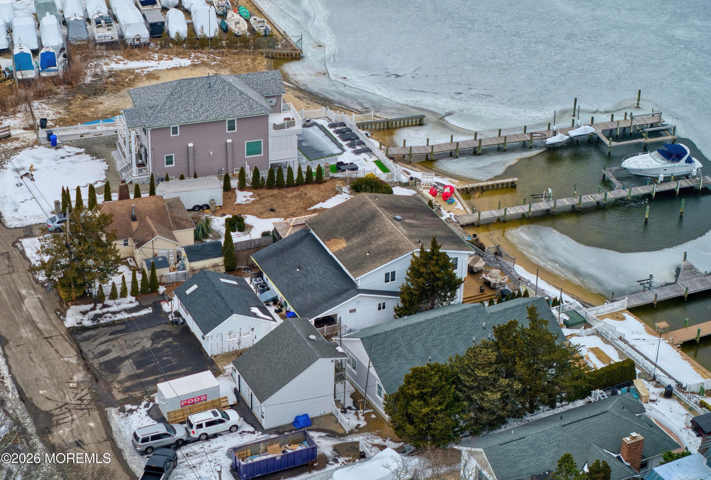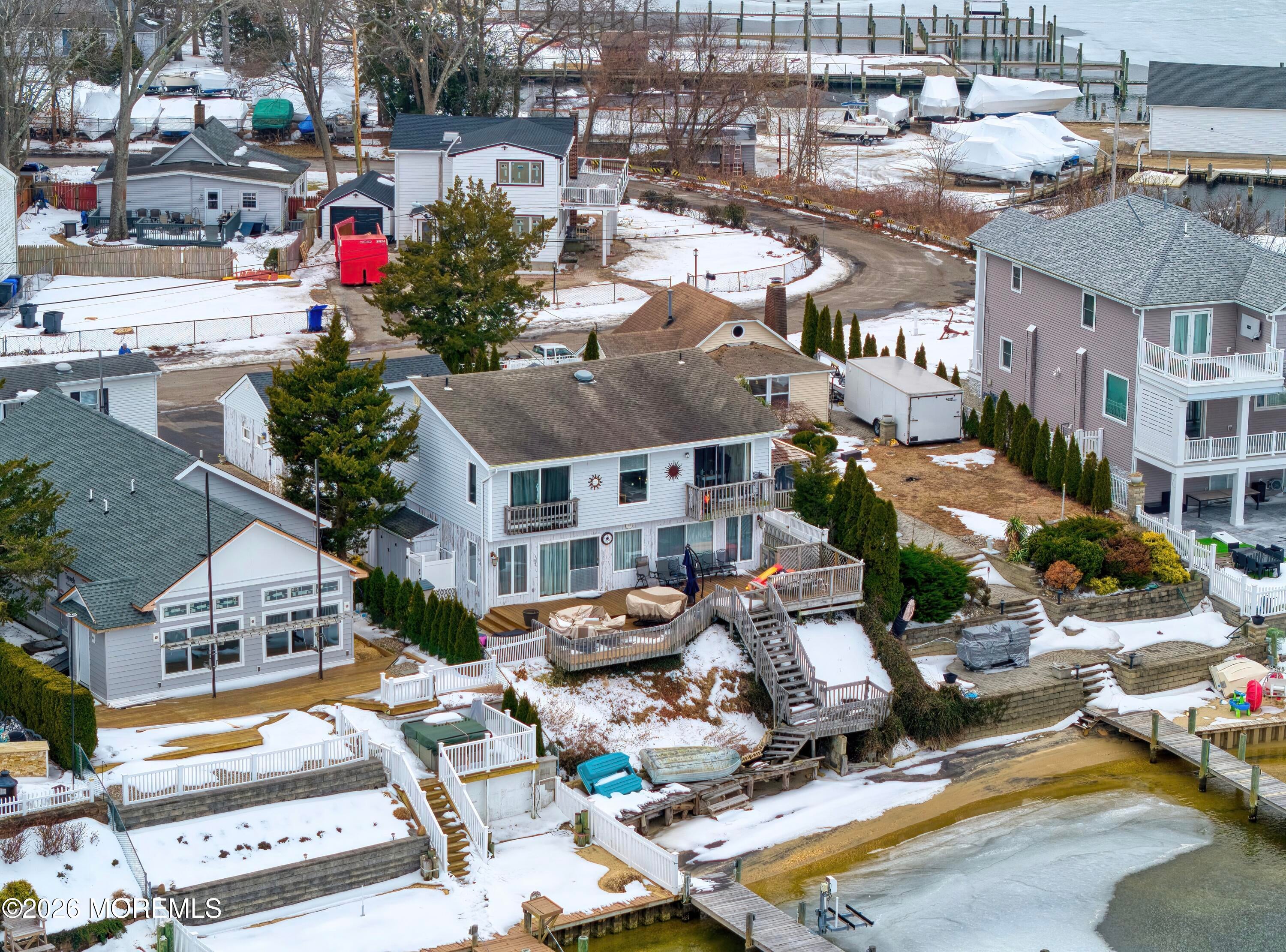 Awesome panoramic views of the Metedeconk river. Perched high on a scenic bluff, with Riparian Grant. This unique waterfront retreat features a sandy beach with private boat dock. Perfect for boating and relaxing by the water. This home offers primary bedroom on main floor with full bath. The Kitchen is functional but ready for updating to suite your style. The second floor includes and additional kitchen, dining area, family rm w/sliding glass doors to deck. Overlooking the Beautiful River. 3bedrooms and 2 full baths. Also, detached garage with workshop. Outside shower. A rare opportunity to own a stunning riverfront property with endless potential. Sold as-is