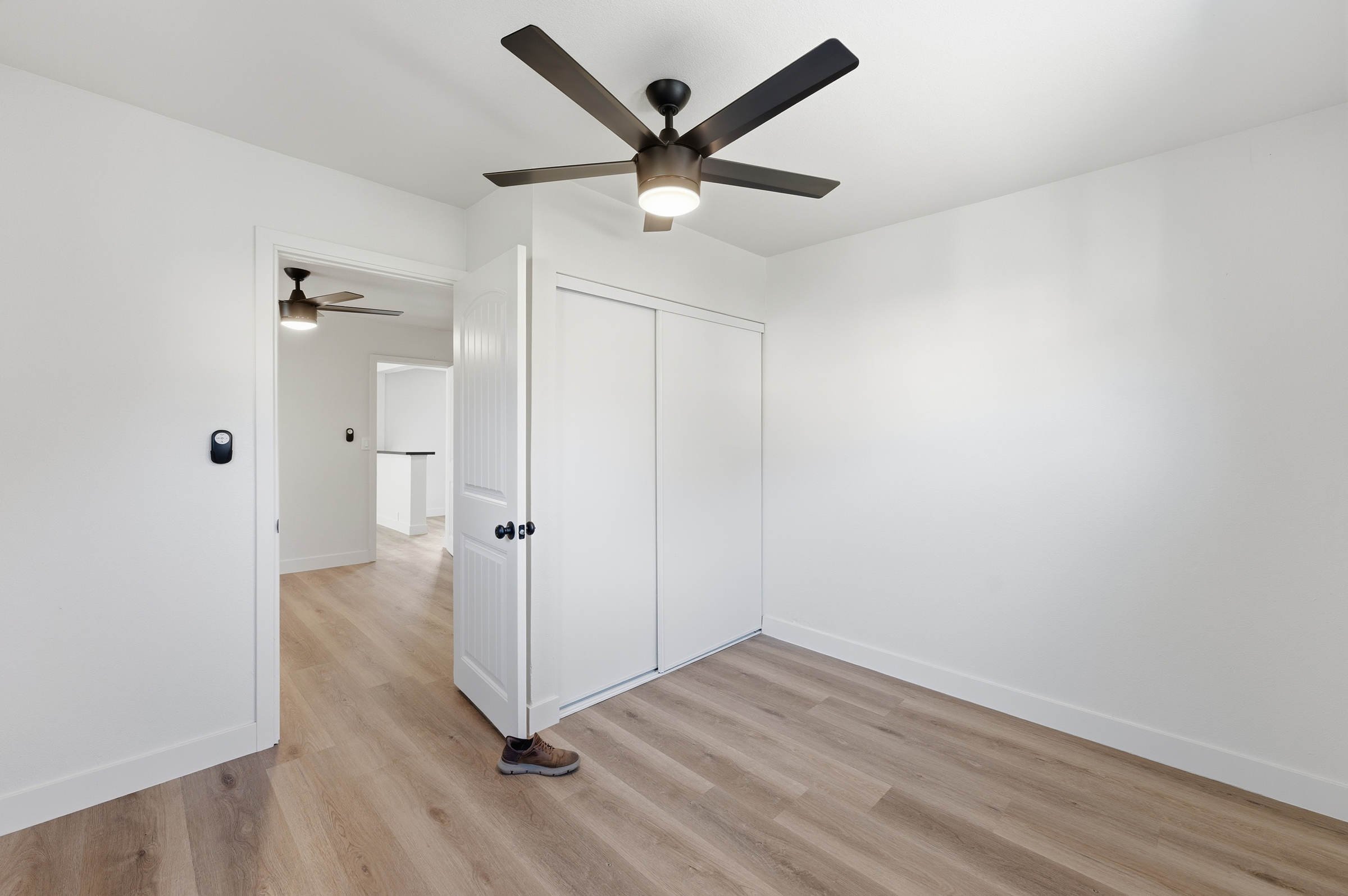 Live like you're in the country while enjoying everything the City of Temecula has to offer. This brand-new, never-lived-in home sits on a large, flat, and fully usable 2-acre flag lot off paved Walcott Lane, backing up to Butterfield Stage Road with exceptional privacy and room to grow. Bordering the world-renowned Temecula Wine Country and within the highly regarded Temecula Unified School District, this property offers the perfect blend of lifestyle, location, and opportunity.A long driveway lined with a block wall, accent lighting, and newly planted trees welcomes you home and leads to a massive lot with ample parking for trailers, boats, and all your toys. The backyard is fully vinyl-fenced and ready for your dream outdoor space — pool, patio, firepit, you name it. A gently sloped valley area in front of the home is ideal for a private vineyard or fruit orchard. Plans and permits are already pulled for a 3-car garage, and a 40-foot high cube sea container on concrete blocks with two roll-up doors is perfect for a workshop or extra storage.Inside, the home features an open great room with beautiful laminate floors, a large kitchen with custom quartz countertops, a generous island with seating for three, and rich cabinetry. Stainless steel appliances include a gas cooktop, dishwasher, microwave, and a large black sink. Two secondary bedrooms share a full bath with a large soaking tub. The primary suite at the rear of the home offers a walk-in closet, a second reach-in closet, and a spa-like ensuite with dual vanities and a walk-in shower. Just outside the primary is a large laundry room with upper cabinetry and bonus storage space, plus an exterior door leading directly to the backyard.This is a rare opportunity — a blank slate on acreage in the city, with the hard work already started.