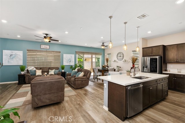 THIS IS IT...PRICED WAY BELOW MARKET VALUE! DON'T MISS THE OPPORTUNITY YOU'VE BEEN WAITING FOR! A rare find, one of only 20 homes, thoughtfully designed with a private NEXT GEN SUITE for multigenerational living in the distinctive Modena collection within the exclusive gated Esperanza 55 Senior Community. Lennar built only 20 of these exceptional homes, and this is the first to become available on the resale market. This is the most extensive floor plan of 2135 square feet and features two separate living spaces under one roof, individual entrances, laundry rooms, great rooms, kitchens, and two primary suites. You'll find quality upgrades throughout, including remote-controlled silhouette window coverings and custom draperies, flooring, an extended covered patio, 18 solar panels, a water softener, and maintenance-free turf. Smart features include an app-controlled garage door opener, keypad, thermostat, and Ring security doorbell. The great room offers an easy lifestyle for entertaining with the open concept, allowing the chef to be a part of the activity in the adjacent dining and living space. No slamming doors here! The upgraded kitchen features soft-close cabinets & drawers, quartz countertops, an exceptional walk-in pantry, and top-of-the-line appliances. The main primary suite is a sanctuary with private access to the covered patio and a generously sized walk-in closet. The primary ensuite bath is luxuriously appointed with quartz countertops on the dual vanity and a large walk-in shower. When you get to the front door, you'll have a choice. Either enter the primary residence or the NEXT GEN SUITE's private entrance. This is 2 homes in one! The La Jolla Clubhouse is the 9000 sq ft Community Centerpiece loaded with amenities that include pickleball, a well-appointed fitness center, pool, bar-b-que area, and ample outdoor pet-friendly space. The home and community inspire a modern living space ideal for active adults with low-maintenance designs, style, and luxury. Don't miss this rare opportunity to live in this quiet, safe, 55 community that friendly seniors call home!