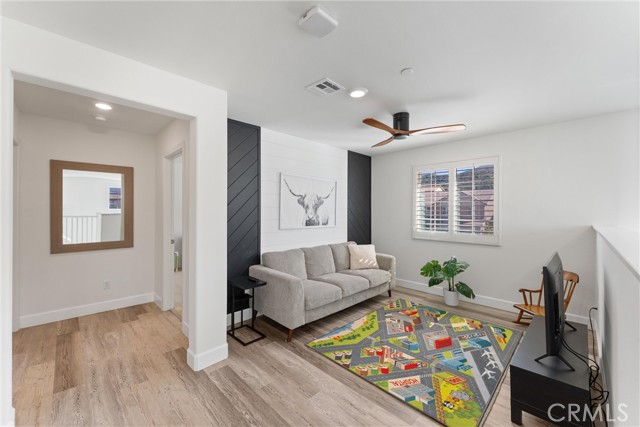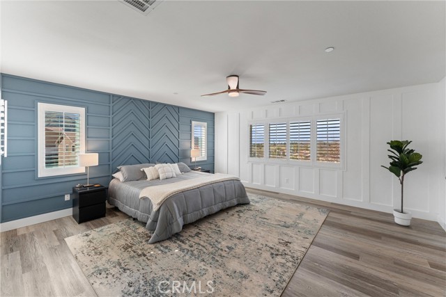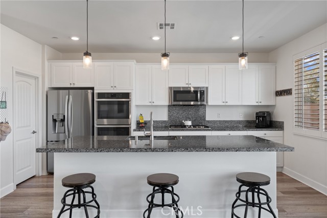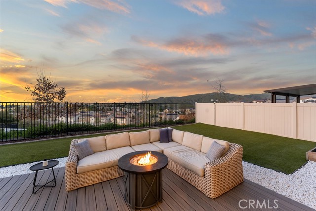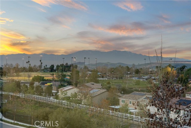 Introducing a residence where modern design, thoughtful upgrades, and unforgettable VIEWS create an exceptional living experience in the Sycamore Creek community. Set on a prime elevated corner lot with only one neighbor next to you this 4-bedroom, 3-bath home immediately impresses with its curated finishes—luxury vinyl plank flooring, detailed millwork, designer lighting, shutters, and upgraded baseboards.The heart of the home is a bright, inviting kitchen featuring island seating, a gas range, dual ovens, walk-in pantry, and effortless flow to the backyard through sliding glass doors. Step outside to enjoy Trex decking, custom turf, and sweeping mountain and canyon scenery—a perfect setting for quiet mornings or weekend gatherings.Inside, soaring ceilings rise nearly 20 feet, leading to an upstairs loft ideal for media, lounging, or play. A spacious laundry room with upgraded tile and generous storage sits near two secondary bedrooms and a full bath. The primary suite captures the home's best views and includes a custom accent wall, dual sinks, makeup vanity, soaking tub, walk-in shower, and a large closet.An oversized garage provides room for large vehicles, tools, storage, and more. Energy-efficient features include solar panels, a tankless water heater, and a whole-house fan.Residents enjoy premier community amenities: pools, splash pad, fitness center, sports courts, dog park, and just around the corner you have access to the Deleo Regional Park which features a skate park, BMX track, trails, multiple parks, tennis & pickleball courts—all just minutes from shopping, dining, schools, and freeway access. A truly standout offering in the hidden gem of Sycamore Creek.