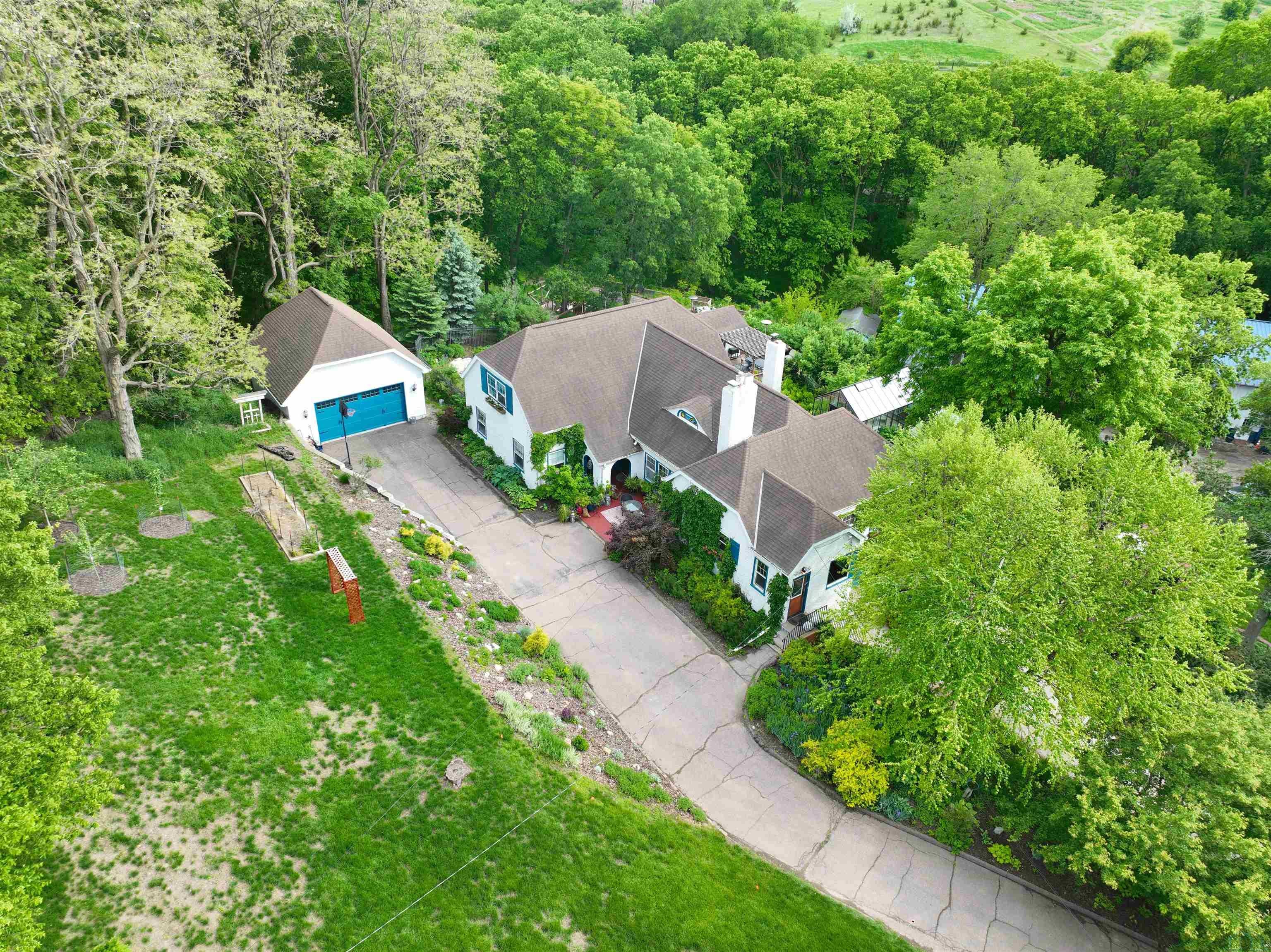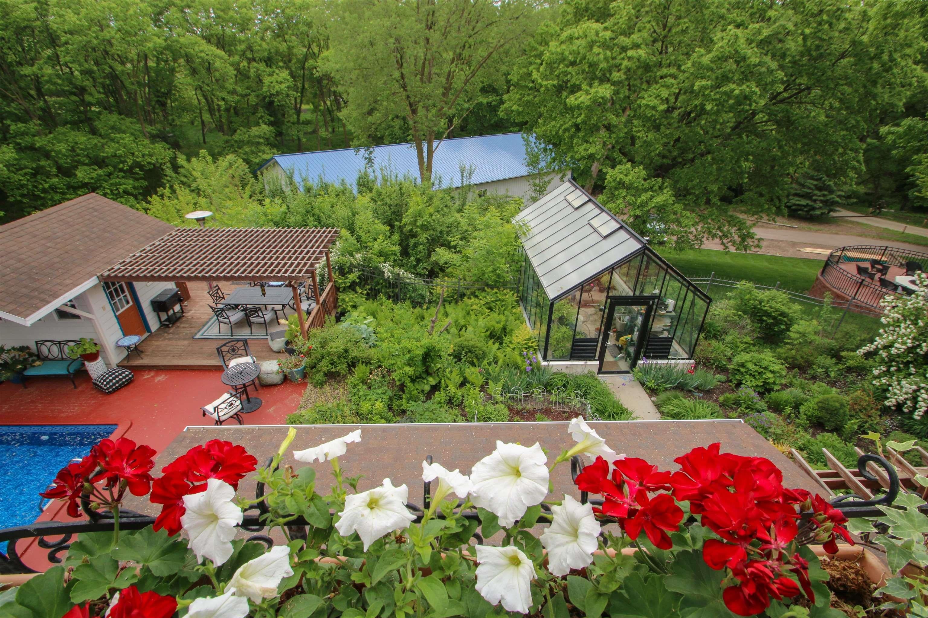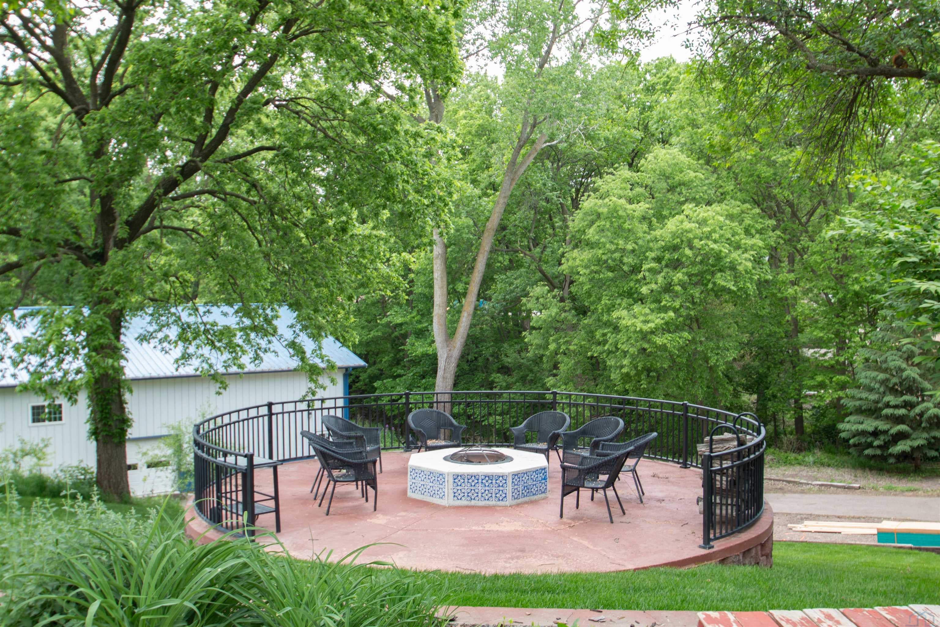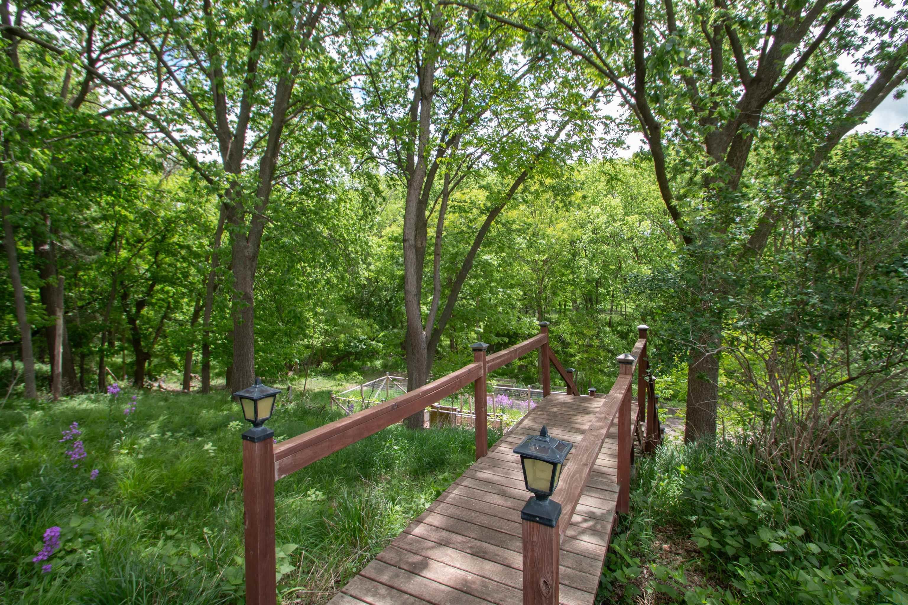 In town acreage, on hard surface street! This 1 1/2 story Bohemian Style stucco home, built in 1920 exudes all the character and charm of that vintage with wood floors and wood trim throughout. Rounded front door to the living room with wood burning fireplace, built in hutch, two french doors to deck, and open to large dining room ready to entertain guests. Kitchen was updated with 5 burner gas stove, island, walk in pantry, double oven and eating area with tile floor. Master bedroom on the main, main floor bath, and two other bedrooms. Upstairs is 2nd master suite with WIC: 22 x 10 8 x 27. 5th bedroom upstairs, all wood floors, another full bath. Lower level has laundry room, family room with barn wood finish, light and bright 3 season room with tile floor, 3/4 bath, wine cellar or safe room, and den area. Tuckunder garage, plus 24x24 detached garage and one single garage for storage: HIGHLIGHTS OF THIS PROPERTY: Garden areas, fruit trees: apples, pears, cherry, raspberries, strawberries. Greenhouse: 12 x 20 built in 2019, used year round. Flower beds, veggie beds, plantings galore. Pool house, Deck, Inground pool with new pool liner 2 years ago and pump and heater replaced 3 years ago, Hot tub stays. Oversized firepit area with seating area. MAJOR ADDITION: 48 X 96 insulated METAL BUILDING built in 2016. This amazing building is set up basketball, volley ball and tennis standards. There is an apartment above with small kitchen and viewing of the activities below. No need to leave home with this incredible property, entertaining area for all seasons. There is a pasture on the other side of the creek if you bring your pony. Underground pet fence for Fido. Seller will carry contract with 20% down payment at 4 percent APR to a qualified buyer.