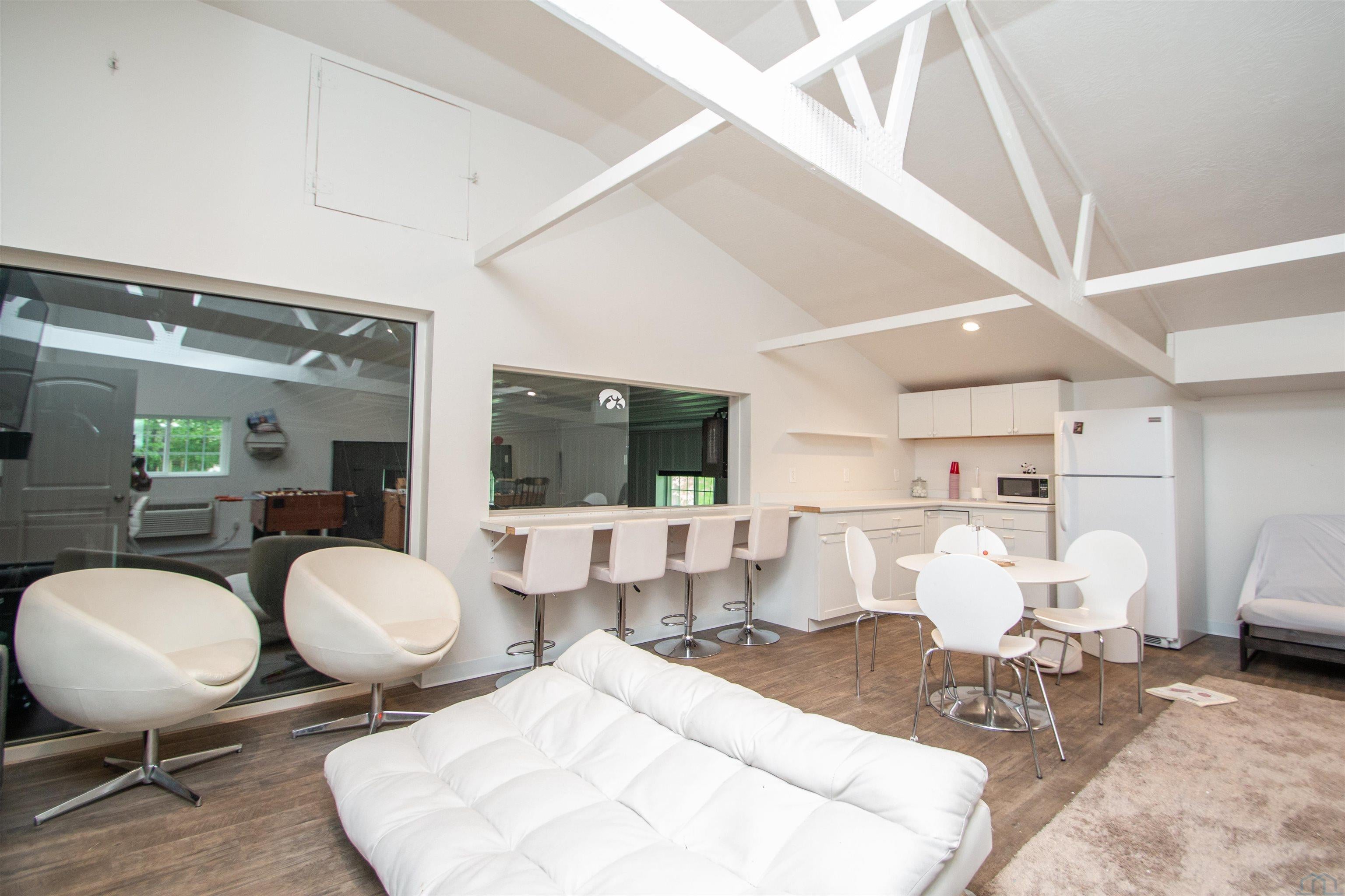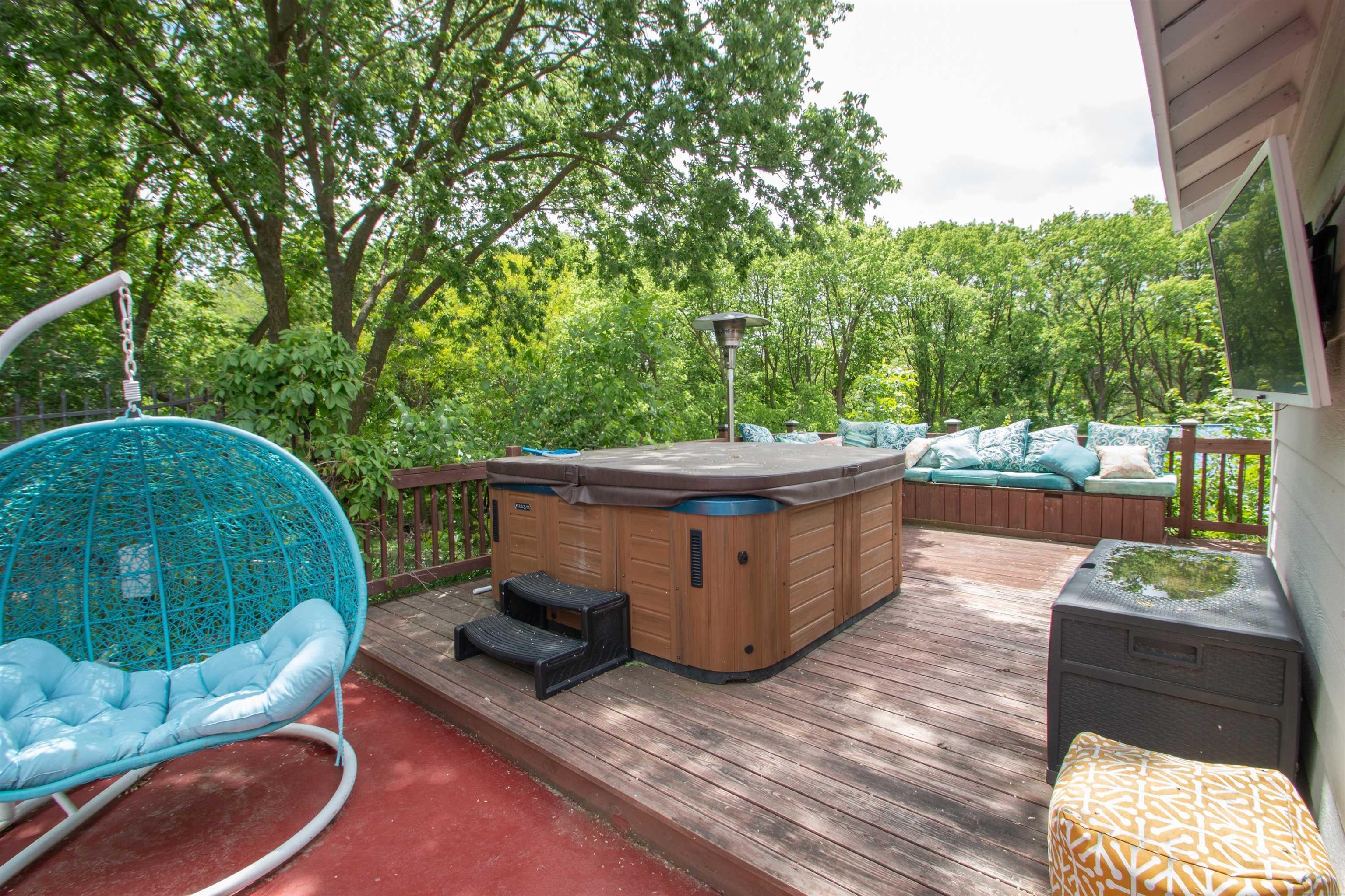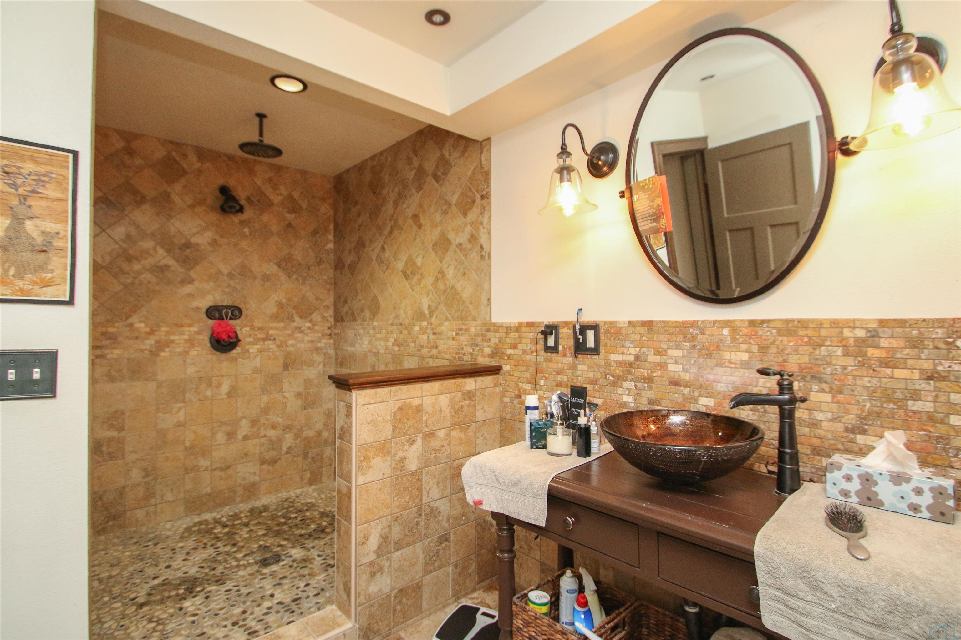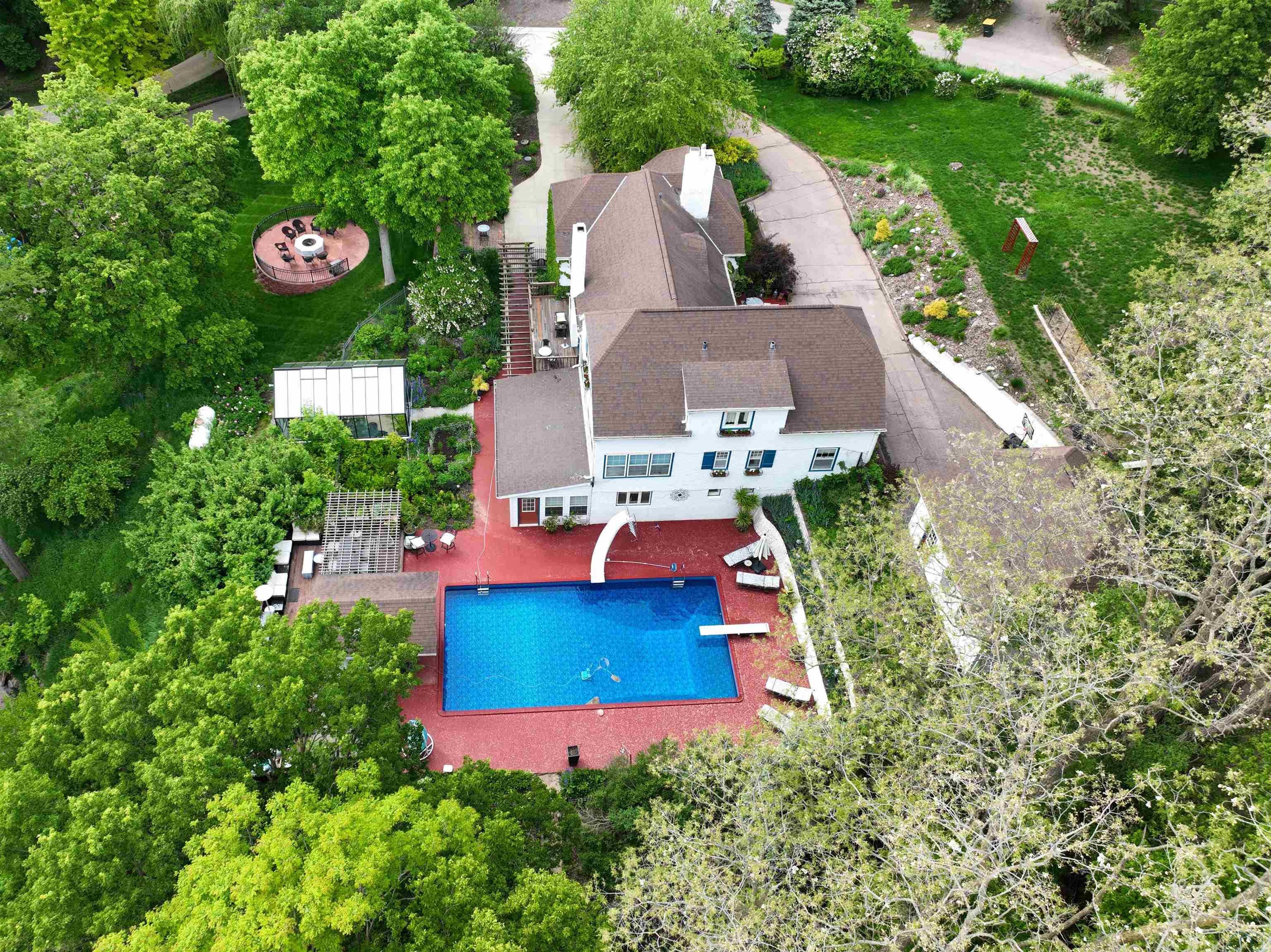 In town acreage, on hard surface street! This 1 1/2 story Bohemian Style stucco home, built in 1920 exudes all the character and charm of that vintage with wood floors and wood trim throughout. Rounded front door to the living room with wood burning fireplace, built in hutch, two french doors to deck, and open to large dining room ready to entertain guests. Kitchen was updated with 5 burner gas stove, island, walk in pantry, double oven and eating area with tile floor. Master bedroom on the main, main floor bath, and two other bedrooms. Upstairs is 2nd master suite with WIC: 22 x 10 8 x 27. 5th bedroom upstairs, all wood floors, another full bath. Lower level has laundry room, family room with barn wood finish, light and bright 3 season room with tile floor, 3/4 bath, wine cellar or safe room, and den area. Tuckunder garage, plus 24x24 detached garage and one single garage for storage: HIGHLIGHTS OF THIS PROPERTY: Garden areas, fruit trees: apples, pears, cherry, raspberries, strawberries. Greenhouse: 12 x 20 built in 2019, used year round. Flower beds, veggie beds, plantings galore. Pool house, Deck, Inground pool with new pool liner 2 years ago and pump and heater replaced 3 years ago, Hot tub stays. Oversized firepit area with seating area. MAJOR ADDITION: 48 X 96 insulated METAL BUILDING built in 2016. This amazing building is set up basketball, volley ball and tennis standards. There is an apartment above with small kitchen and viewing of the activities below. No need to leave home with this incredible property, entertaining area for all seasons. There is a pasture on the other side of the creek if you bring your pony. Underground pet fence for Fido. Seller will carry contract with 20% down payment at 4 percent APR to a qualified buyer.