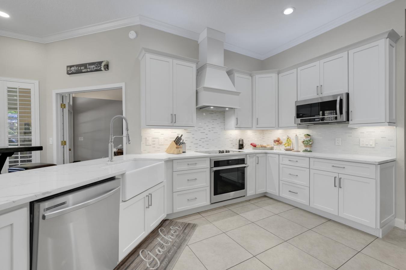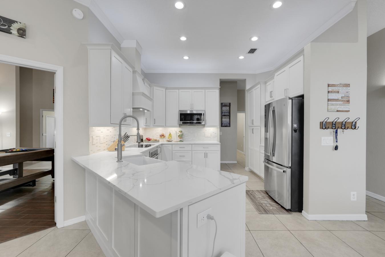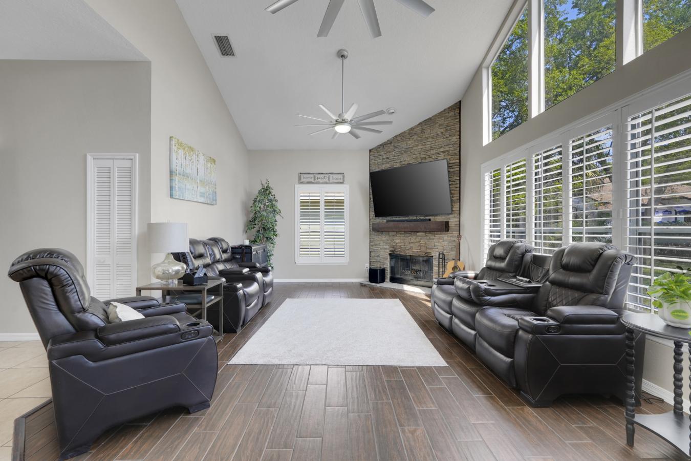Located within the highly sought-after St. Ives section of Orange Tree, a more exclusive enclave inside one of Dr. Phillips premier guard-gated golf communities, this extensively upgraded pool home delivers a rare combination of scale, condition, and lifestyle that is increasingly difficult to find at this price point. Positioned on a spacious homesite with a circular paver driveway and mature oak canopy, the home immediately sets a tone of established luxury and privacy. Inside, the layout is both functional and intentional, offering a split floor plan with a true 5-bedroom configuration, high ceilings, and an abundance of natural light anchored by expansive views of the outdoor living space. The kitchen has been fully renovated with quartz countertops, custom cabinetry, and a built-in Miele coffee system, opening seamlessly to the main living areas designed for both everyday living and elevated entertaining. Wood-look ceramic tile flooring enhances durability and aesthetic continuity throughout the primary spaces. Major system upgrades provide a level of confidence rarely seen in competing homes, including a 2021 roof, 2024 HVAC system, 2025 whole-house replumb, updated insulation, and additional mechanical improvements, representing a meaningful investment in long-term ownership quality. The outdoor living environment is where this property separates itself. A fully screened enclosure frames the resurfaced and electrically heated pool, complemented by upgraded pavers, a custom-built bar, and multiple covered seating areas, creating a true extension of the home designed for year-round use. Whether hosting or unwinding, the space is both private and highly functional. The primary suite is privately positioned with direct access to the pool deck, reinforcing the homes indoor-outdoor flow and livability. Additional features include a wood-burning fireplace, a Tesla charging station, an upgraded front entry, and thoughtfully improved interior finishes. Beyond the property itself, St. Ives at Orange Tree offers a distinct advantage: combining the security of a gated community with access to the Orange Tree Golf Club, recreation center, tennis, pickleball, fitness facilities, and a lifestyle centered around connectivity and convenience. All of this is just minutes from Restaurant Row, major attractions, top-rated schools, and the core of Central Florida. This is not simply another home in Orange Tree; it is a fully evolved property where the major capital improvements have already been completed, the layout supports modern living, and the setting delivers the lifestyle buyers are actively searching for. Opportunities like this, where condition, location, and livability align, are limited and rarely come to market fully realized.