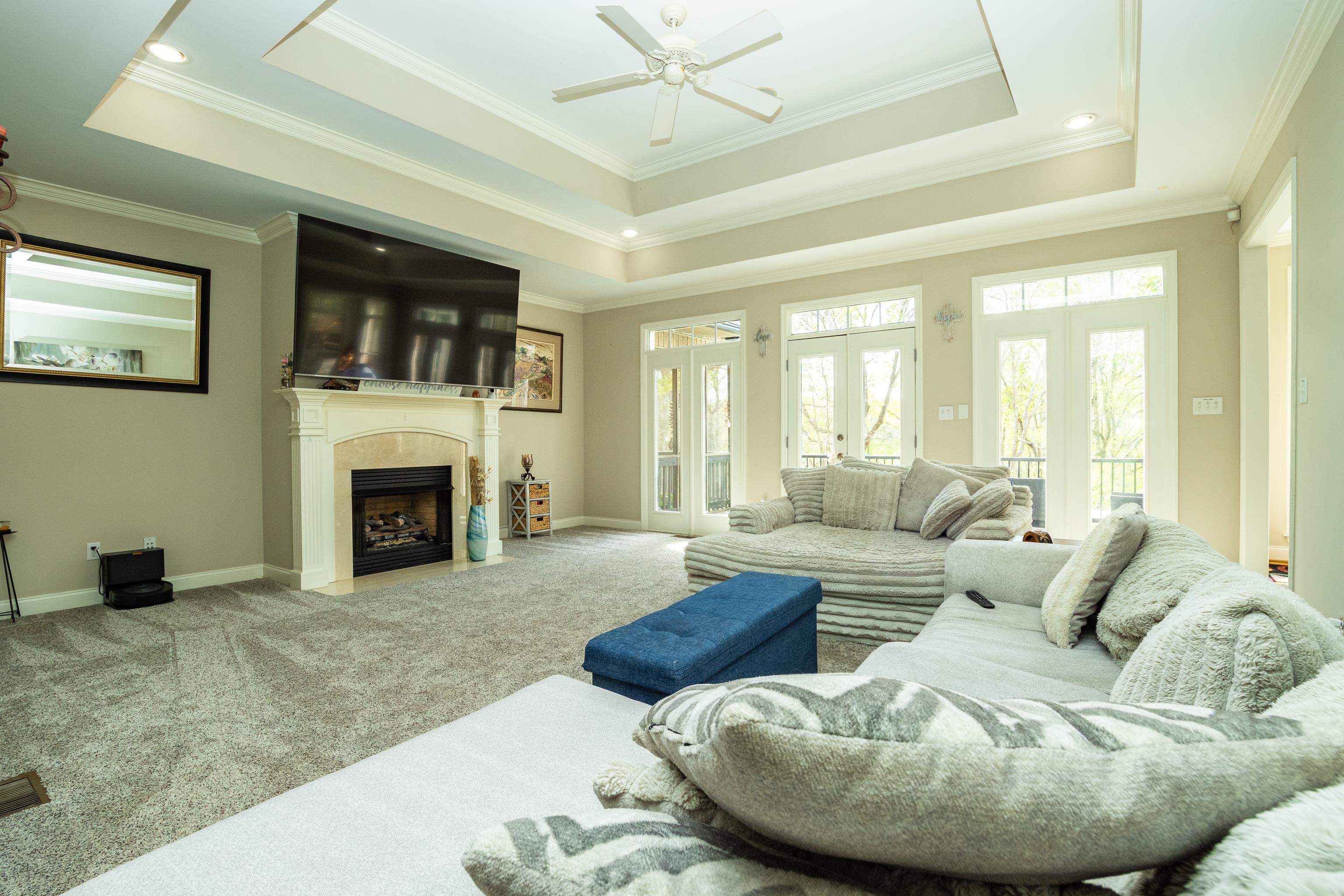 Exquisite quality and refined design define this stunning 5 bedroom modern residence, ideally located within walking distance to Centennial Centre Marketplace. Nestled in the sought-after Woodfield Prairie neighborhood, residents enjoy access to a community pool, offering effortless resort-style living. Professionally landscaped grounds with an in-ground sprinkler system frame a private, wooded backyard and an inviting three-season room perfect for year-round relaxation. The finished lower level is an entertainer's dream, featuring a spacious gathering area, dedicated fitness space, and expansive daylight windows that fill the home with natural light. A rare blend of luxury, privacy, and convenience in a premier location.