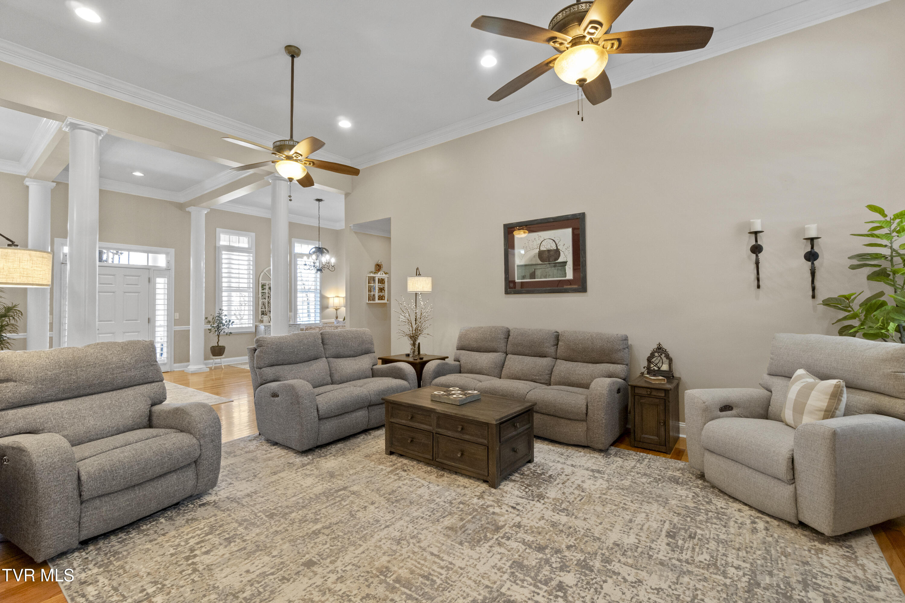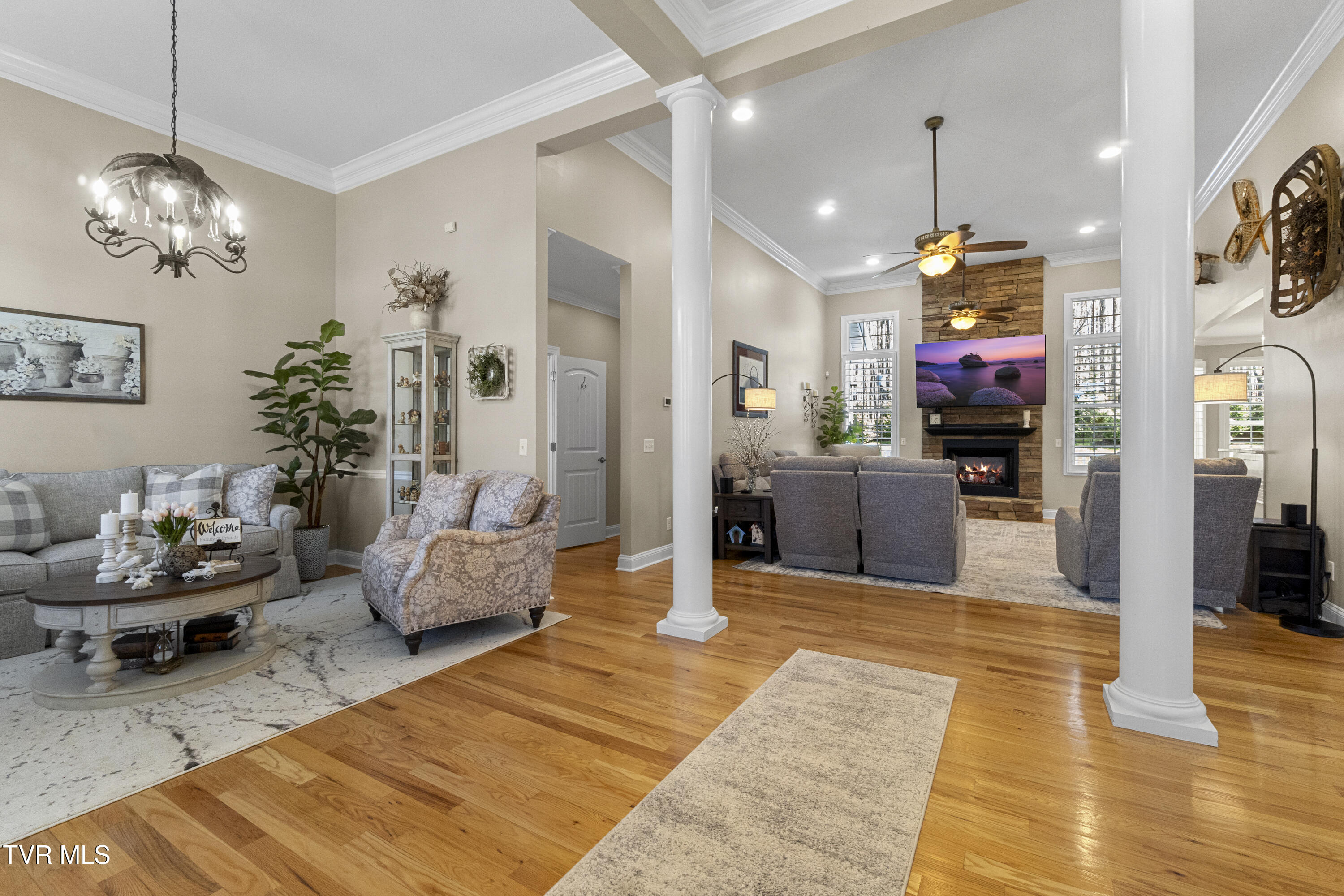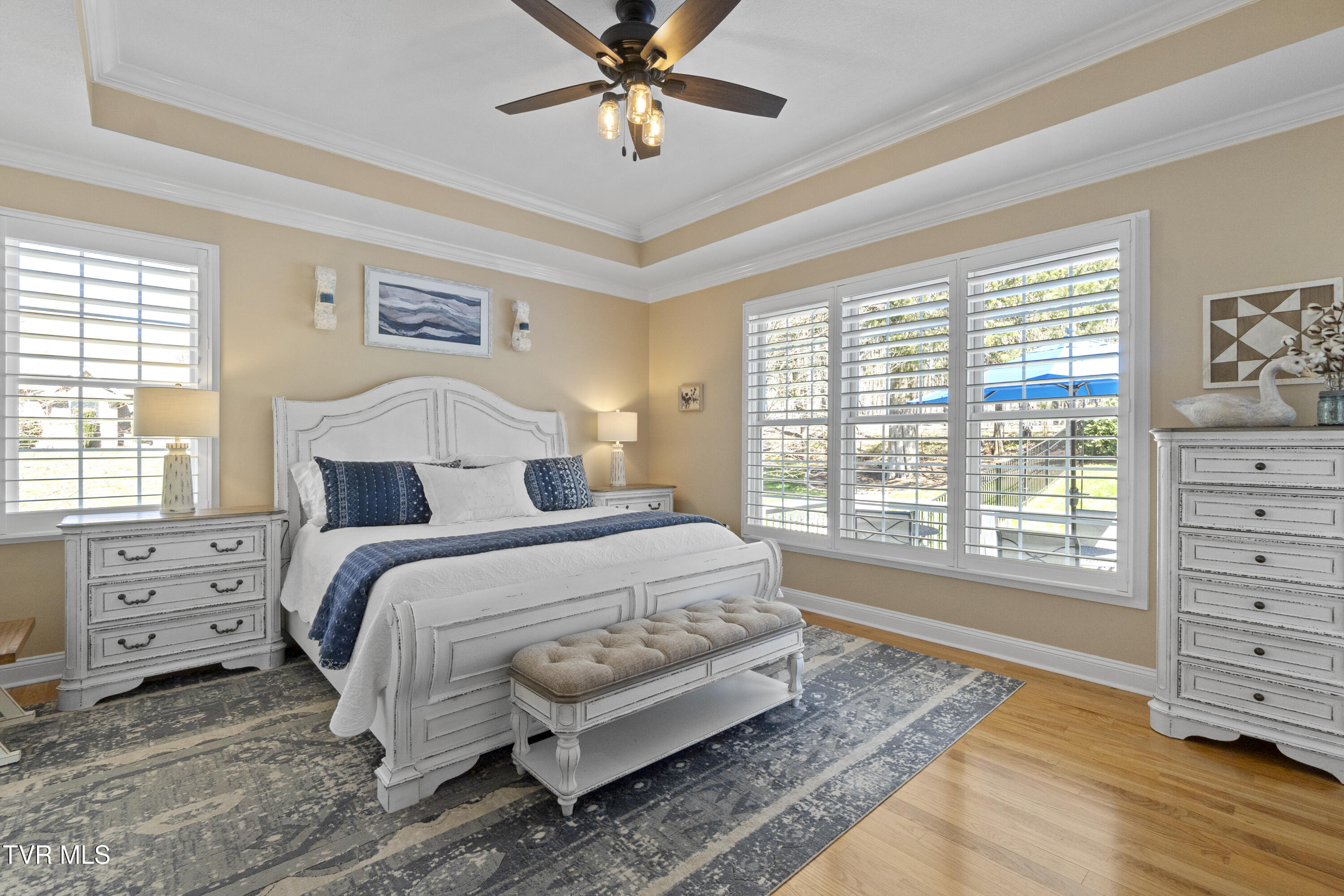 Welcome to the prestigious Grande Harbor community, nestled along the shores of Boone Lake! Situated on a .94-acre lot, this beautiful residence offers unmatched style, high end finishes and convenience in one of the most sought-after neighborhoods. Step through the front door into an open entry that offers a dining/office area to the right and a convenient living area to sit in and relax with friends, family or just a book to the left. Just beyond the columns is open concept living in the spacious great room with gas log fireplace, a well-appointed kitchen with NEW top-of-the-line appliances, like the NEW Bosch cooktop, granite countertops and a breakfast area streaming with natural light. The high ceilings, natural light, and open concept create a warm and inviting feel throughout the grand one-level living layout perfect for entertaining. The plantation shutters throughout the house add to it's charm. The luxurious master suite, complete with a large walk-in closet, the en-suite features a whirlpool tub, double sinks, and a large, tiled shower. This split bedroom plan offers 2 additional bedrooms on the main level plus a guest suite upstairs. Step out the back door to a private back porch with tree lined back property line that provides even more privacy. The private back yard and the inviting front porch perfect for rocking chairs makes for a welcoming and relaxing lifestyle. Storage and living space expansion are even more reasons to love this home. There is a floored attic easily accessible from the second level that makes storing holiday decorations or household items easy. The full basement with its own garage door and driveway makes access to the lower level simple and provides the opportunity to create additional living space already equipped with a pool table for hours of enjoyment and is already plumbed for 2 full baths. It's also a great space to store your lawn equipment and the golf cart you'll need to go to the clubhouse, pool or visit neighbors. The one you see in the lower level is available if interested. This home is chock full of improvements, NEW Roof, NEW HVAC, New Water heater. Check the long list in the documents section, of improvements made to this home in the past 2 years Grande Harbor offers so many amenities, ensuring a lifestyle of comfort and leisure. Enjoy the community pool, playground, clubhouse, weight room, day docks and picturesque walking trails--all just steps from your doorstep.