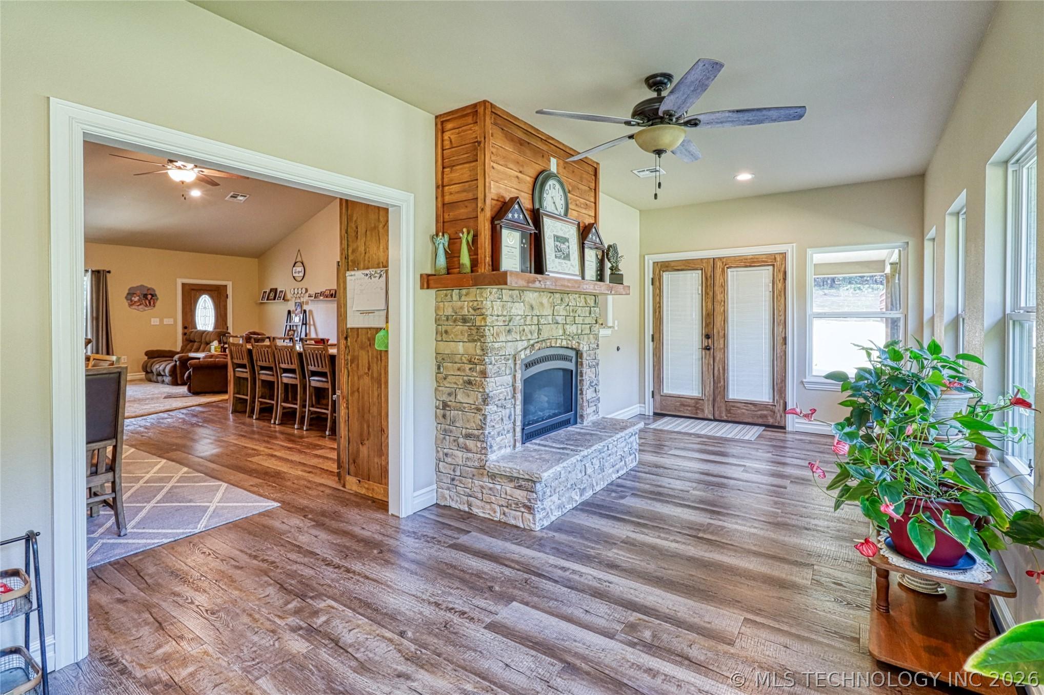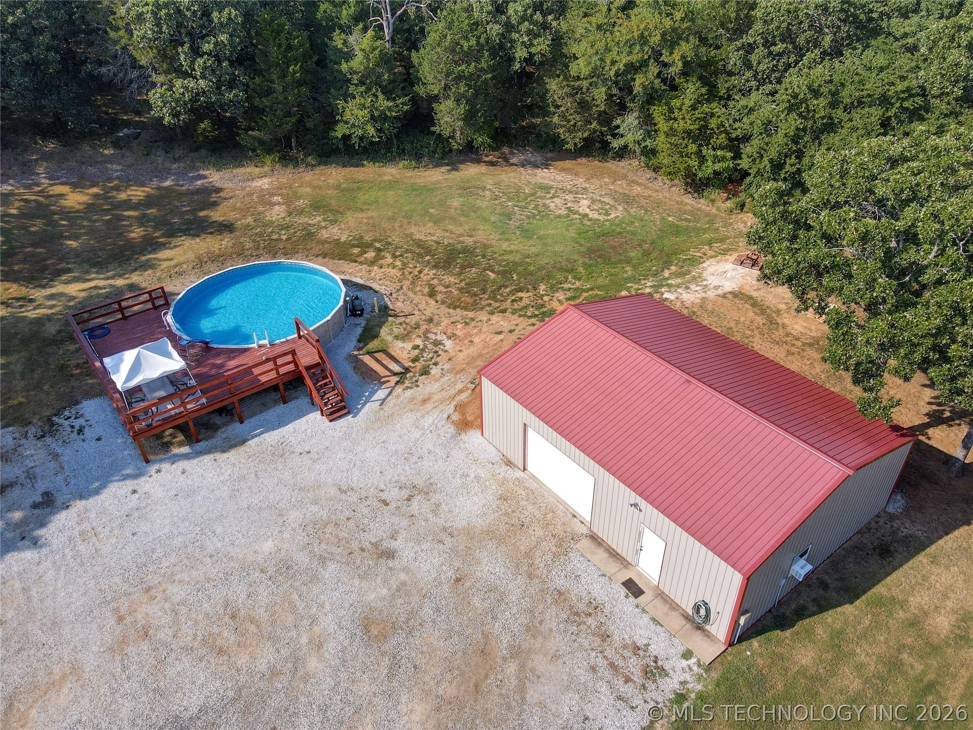 Two Homes on 44 Acres Peaceful Woodland RetreatEscape to your own private haven with this rare opportunity to own two homes on 44 wooded acres in a quiet, serene setting. Perfect for multi-generational living, a guest retreat, or income potential, this property blends comfort, functionality, and natural beauty. Main Home has 3 Bedrooms and 2 Full Bathrooms. This home offers an open, inviting layout with plenty of natural light, open-living concept with kitchen, living, and dining. The kitchen is a chefs dream with a gas cooktop and an expansive island. Aside from the 3 bedrooms, the home also offers a spacious office for remote work or hobbies. Additionally, the bright sun-filled room off the dining has a cozy gas fireplace perfect for year-round relaxation can be used as 2nd living, game room, or sunroom. Second Home is a Barndominium with 2 Bedrooms and 1.5 Bathroom and garage. This home provides privacy and independence with modern conveniences, while still being close to the main home. It is ideal for guests, extended family, or rental incomeThe property Highlights /- 44 acres of mature trees and wildlife along with a creek running through it a nature lovers dream! Dont forget about the fantastic 30 x 40 shop for projects, storage, or equipment along with an above-ground pool for summer fun and great pond for fishing, picnics, or peaceful reflection.Whether youre seeking a private homestead, a family compound, or a weekend escape, this property offers endless possibilities in a tranquil woodland setting.