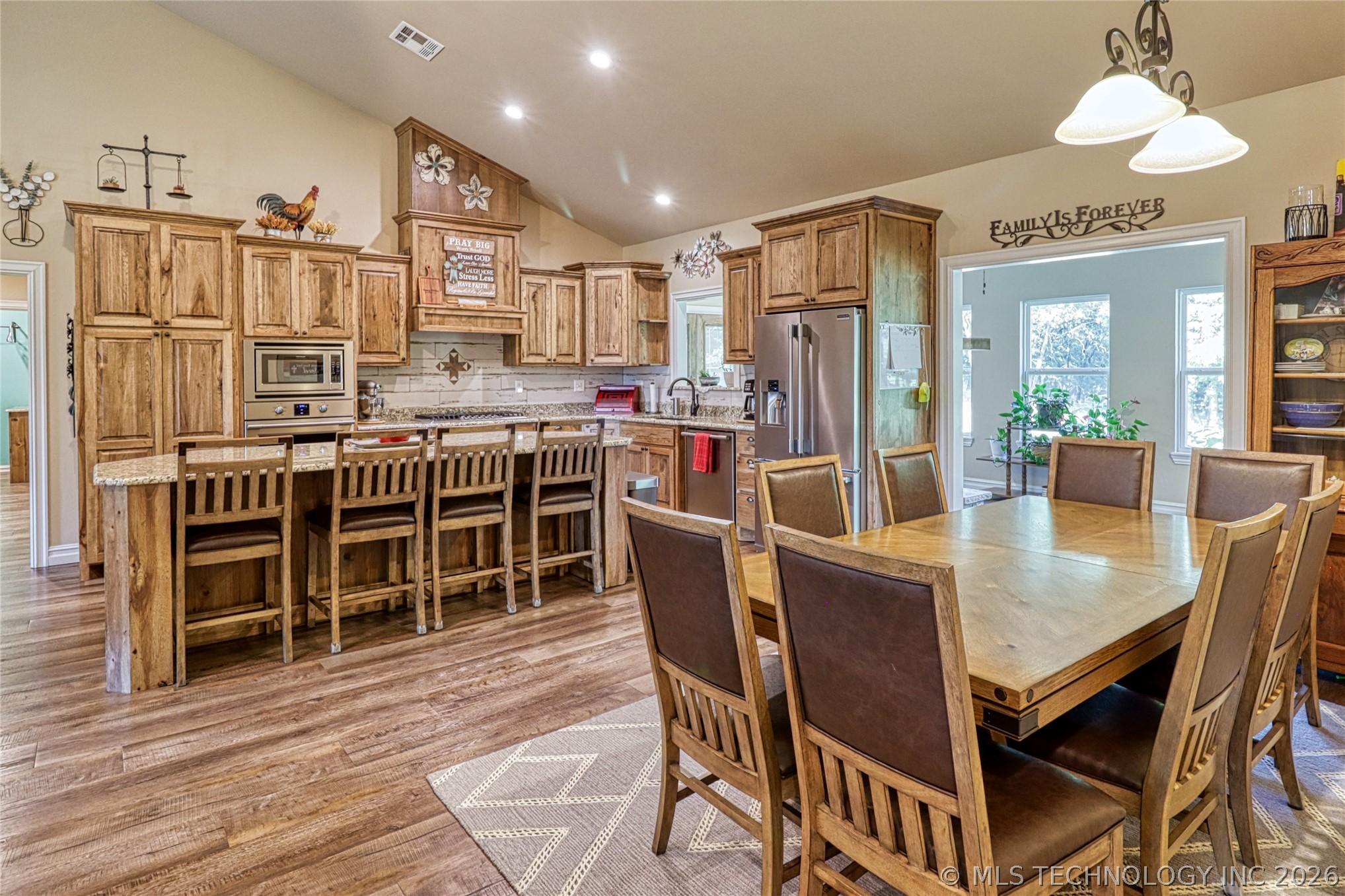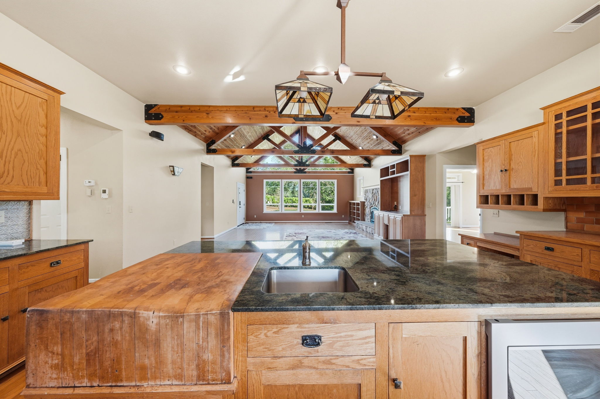 Tucked away at the end of a quiet cul-de-sac just minutes from Grant School, this custom Craftsman-style retreat offers a rare blend of privacy and luxury on over 5 acres. The property is a natural oasis, featuring a seasonal creek and tranquil pond, and picturesque meadow views. Inside, the home shines with stunning beamed ceilings and rich hardwood floors.