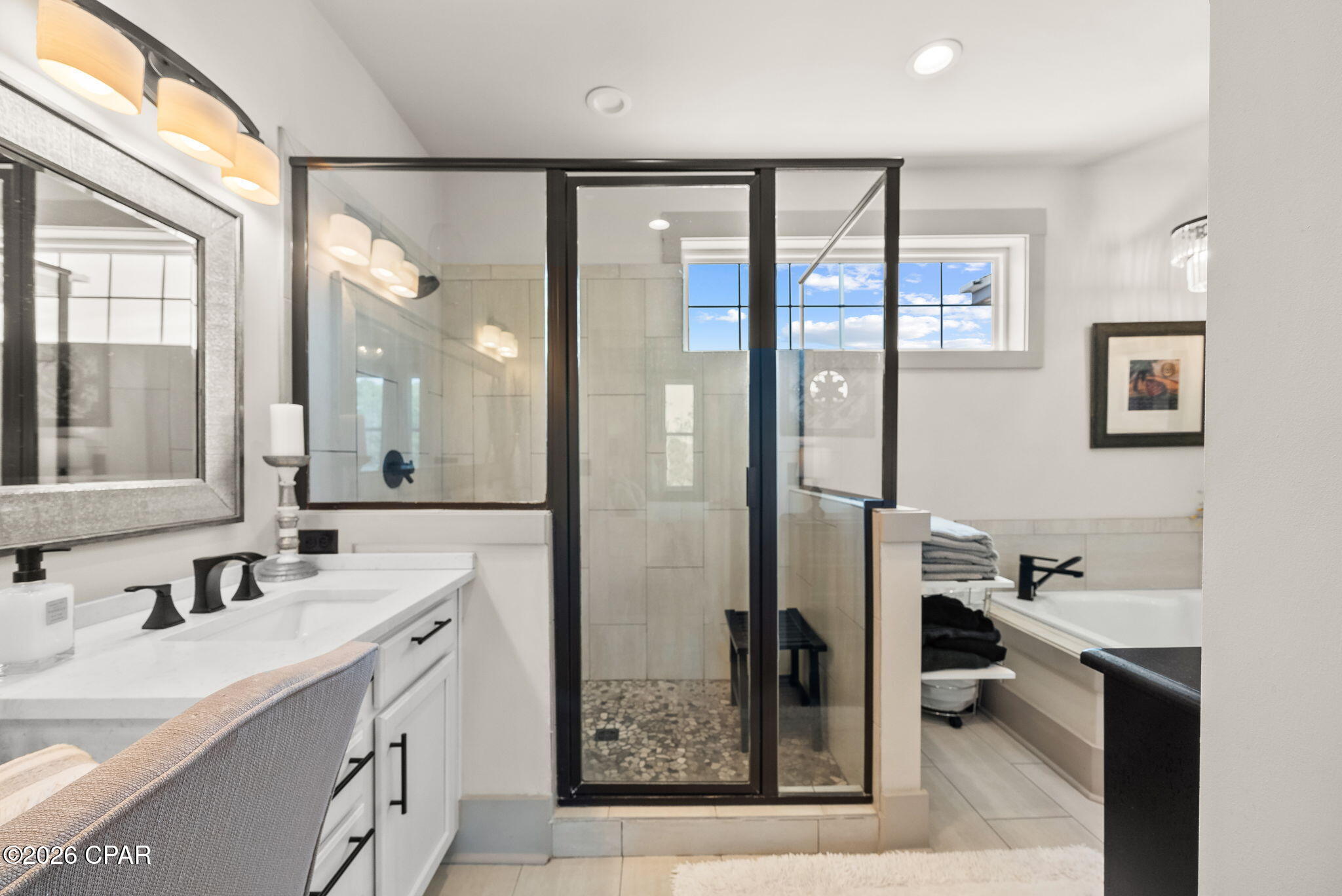 Builders Personal Custom built Luxury Home on a natural Lake in this Prime Panama City Beach Location! This stunning home is situated on a cul-de-sac and offers the perfect blend of privacy, elegance, and convenience--just two blocks from the Worlds Most beautiful beaches in Panama City Beach and moments from Pier Park dining and shopping, Top Golf, the new Dolly Parton Pirates Voyage dinner shows, and convenient to some of the beaches top-rated schools. Built in 2020 to the highest hurricane standards with upgraded doors and windows, this home has been thoughtfully designed inside and out. Step inside to find luxury vinyl plank flooring, shiplap accents in every primary room, and an inviting open-concept floorplan that flows seamlessly from the living room to the dining area and into the chefs kitchen. The kitchen is a showstopper, featuring quartz countertops, beautiful backsplash,a stainless steel appliances with dual oven electric stove, a pot filler, top-of-the-line slide-out microwave drawer, and soft-close shaker cabinets--perfect for entertaining or everyday living. Enjoy year-round comfort with a Rinnai tankless water heater providing endless hot water, plus hot and cold exterior faucets for convenience. The cozy enclosed patio room is used as an extra den and is the perfect spot for relaxing and overlooking the private natural lake, creating a peaceful setting for morning coffee or evening gatherings. This home offers flexibility with a bonus room/office on the main floor and an upstairs loft that can easily serve as a second office, media area, or playroom. The oversized garage is extra deep and includes a third golf cart door, ceiling fans, and additional golf cart parking alongside the home--ideal for a small boat. The Additional highlights include: Private cul-de-sac location on a secluded lake Enclosed sunroom with lake views, Extra storage and parking options only Minutes to schools, shopping, entertainment, and the beach. This property truly checks every box: prime location, quality construction, modern updates, and a serene setting. Dont miss this rare opportunity to own a custom builders personal home in the heart of Panama City Beach! No HOA fees!!!!