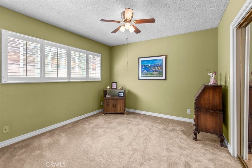 This two-story home is located on one of the largest lots along the golf course in the Tournament Hills gated community. If you like SPACE and VIEWS, this is the home for you!! The first thing visitors see upon entering the home, is a beautiful custom tiled medallion at the front entry. High ceilings and neutral-colored flooring and walls come together to create an impressive view of the formal living room (with a fireplace) and staircase with peekaboo views to the family room and massive backyard. An office is located to the right of the main entrance and has a custom-built bookcase, spanning an entire wall. The family room and kitchen are open concept and have a wall of windows, showcasing the spectacular backyard and endless views. A separate formal dining room, guest bedroom with sliding doors to the backyard and a 3/4 bathroom are also located downstairs. The kitchen has granite countertops, double ovens, a built-in gas cooktop, microwave, dishwasher AND an over-sized kitchen island to accommodate counter seating and meal prep. There is also dedicated space for a breakfast nook with sliding glass doors for backyard access. Upstairs are the primary bedroom and two additional bedrooms and a LARGE loft, currently being used as a game area with electronics, a pool and poker table. The numerous windows from the loft offer spectacular views of the local San Bernardino mountains. The primary bedroom has an ensuite bathroom and spacious walk-in closet but the BEST part of this bedroom is the balcony and the VIEWS one gets of the backyard, golf course and hills off San Timoteo Canyon. The backyard is massive and an entertainers delight with a patio cover that extends the entire length of the house, an outside BBQ with sink, gas burner, fridge and bar seating, a pool, large grassy area and a viewing deck at the far end of the yard. This home also has a 2-car garage and a single car garage and a large storage shed on the side yard. This gated community features beautiful green spaces, walking paths, the lake, gazebo and security presence. Tournament Hills Elementary is walking distance and other amenities in close proximity include shopping, restaurants, parks and close freeway access.