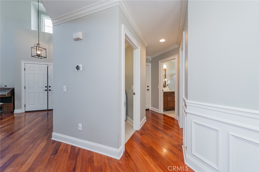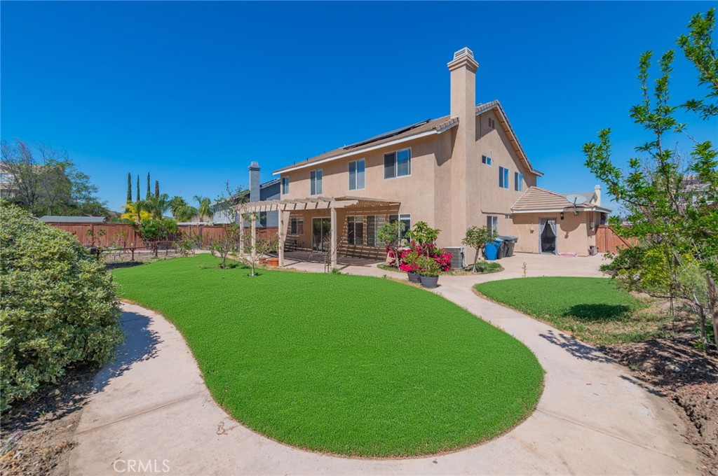 Welcome to this Gorgeous 4-bedroom residence with an expansive upstairs loft, ideally situated in the Vail Ranch Community within the Redhawk area of South Temecula. Nestled in a peaceful Temecula Valley neighborhood, this home offers 2,371 sq ft of living space on a 10,890 sq ft lot. This home features a bright, open floor plan with soaring ceilings, a double-door entry, cherry wood flooring on the main level, and crown molding throughout. The first floor features formal living and dining areas, a family room with a ceiling fan and built-in entertainment, and a bedroom with a full bath, ideal for guests. The updated kitchen features white European-style cabinetry, quartz countertops, an island, recessed lighting, and a stainless-steel farmhouse sink. Upstairs, the primary suite includes a double-door entry, a ceiling fan, a walk-in closet, dual vanities, a soaking tub, and a separate shower. Two additional bedrooms and a spacious loft, each with a ceiling fan, complete the upper level. Enjoy energy savings with PAID-OFF SOLAR PANELS and a house attic fan, and entertain in the backyard with room for a pool, fruit trees, and a patio cover. NO HOA, low property taxes & NO Mello-Roos. Conveniently located near Great Oak High School, shopping centers, dining, Temecula Wine Country, Old Town, and Pechanga Resort Casino. Don't miss this amazing opportunity.