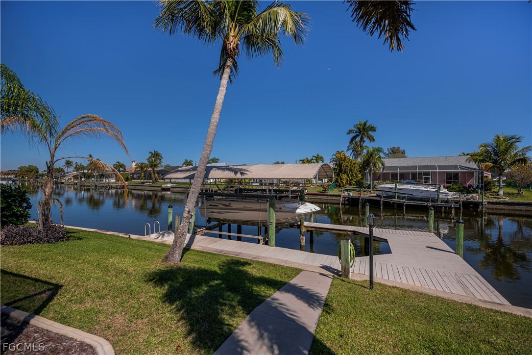 If you're looking for the perfect blend of luxury and Florida lifestyle…Look no further!! Welcome to this beautiful Gulf Access Pool Home located just minutes by boat from the river to restaurants, beaches and the Gulf. This property offers expansive outdoor space featuring a Tiki Bar plus an additional boat dock with 10,000 boat lift making it easy to enjoy the best of SW Florida's boating lifestyle. PLUS,,,,IT COMES WITH A 2004 20' HURRICANE DECK BOAT with 115 HP 4 stroke Yamaha outboard motor! Nestled in a quiet, desirable neighborhood in the sought-after SW Cape Coral area, this home offers 2168 Sq Ft of living space that includes 3 Bedrooms, 2 Full Baths, Den, Home Office or 4th Bedroom, and Pool/Spa. The interior is bright and modern throughout. The open-concept kitchen features a large island with granite countertops, breakfast bar seating, pantry and stainless-steel appliances. This space flows into the living and dining areas and it all overlooks the pool and canal, making it ideal for entertaining. For the ultimate relaxation, the primary bedroom offers an enclosed atrium where lush planters create a serene oasis. The outdoor living area offers ample space for dining and lounging. Whether you a hosting gathering or enjoying a peaceful evening, this space is thoughtfully designed to help you make the most of SW Florida's beautiful weather. Do not miss the opportunity to own this beautiful piece of paradise. Schedule your private showing today.
