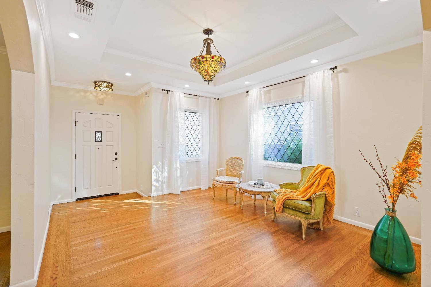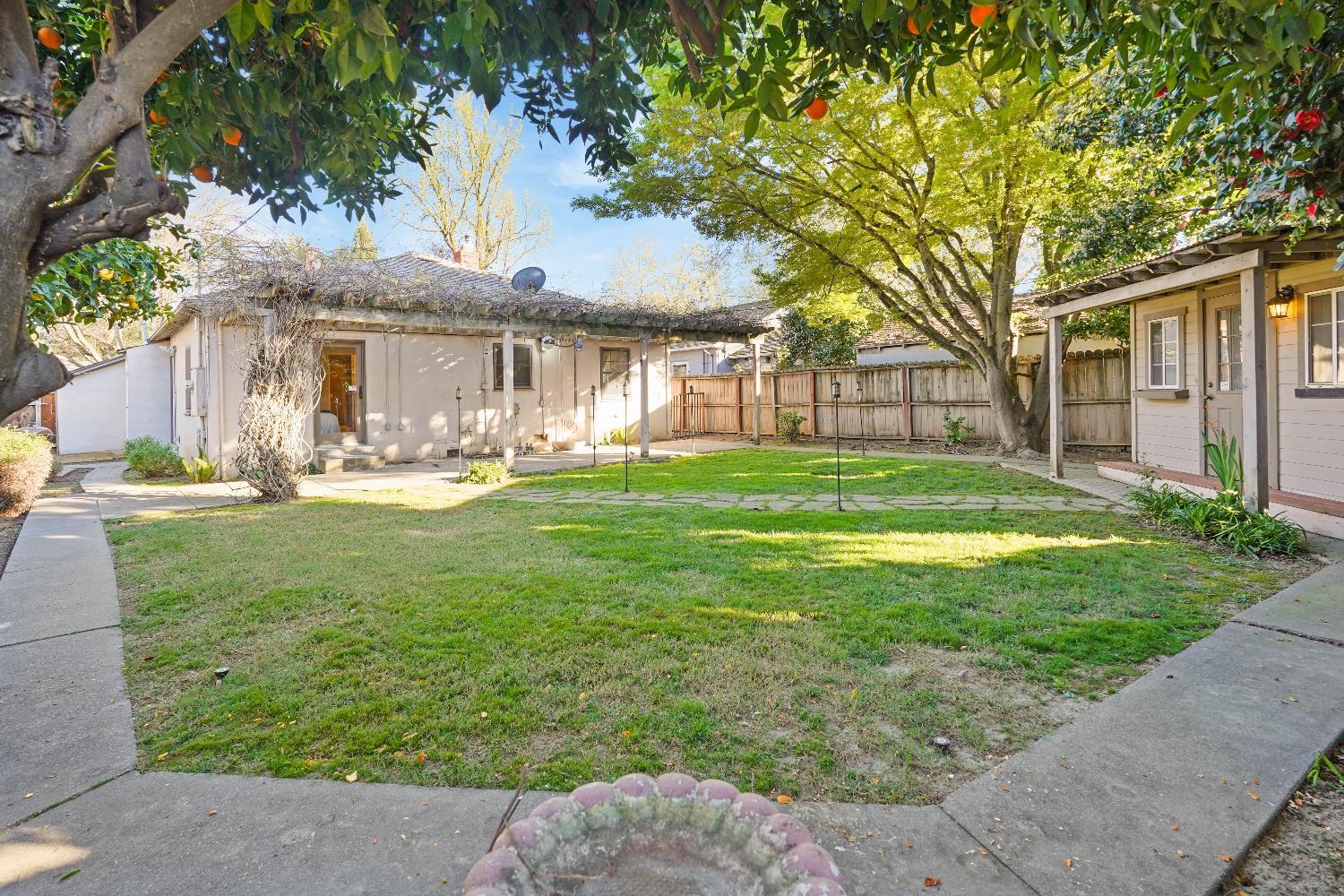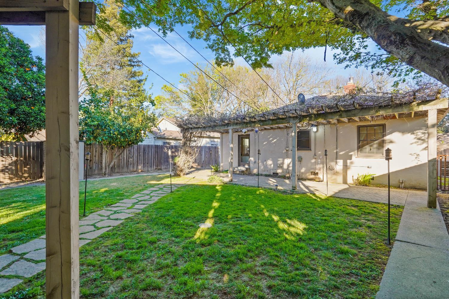2622 14th Street is a charming 1935 Tudor-style Land Park home featuring beautiful hardwood floors, classic diamond leaded windows, and an open, airy layout that creates an easy flow between the main living spaces. The home includes a newer HVAC system and has had various updates throughout. The fully landscaped yard includes mature fruit trees. In addition to the main house, there is a detached backyard structure with air conditioning and an electric fireplace that can serve as a possible third bedroom, office, studio, or workout room. Ideally located in Land Park, the home is within walking distance of the Tower Theatre, local restaurants, and nearby parks.