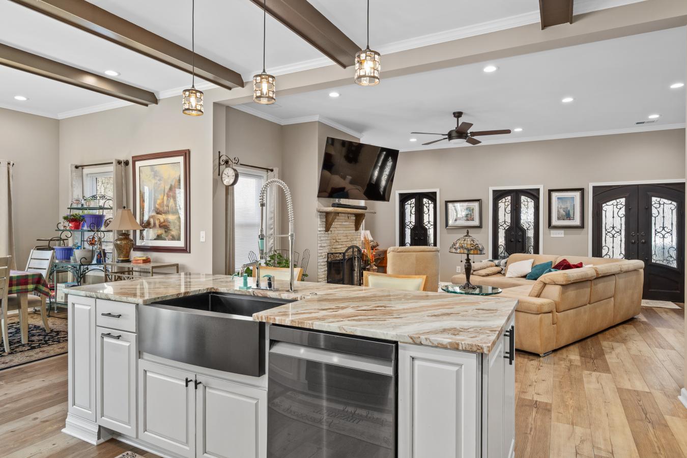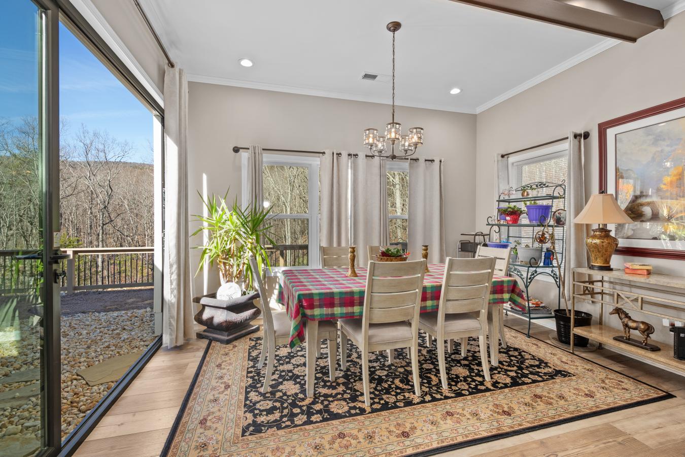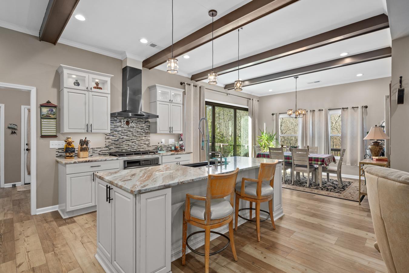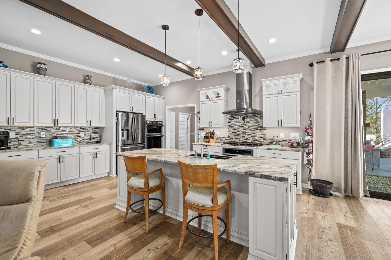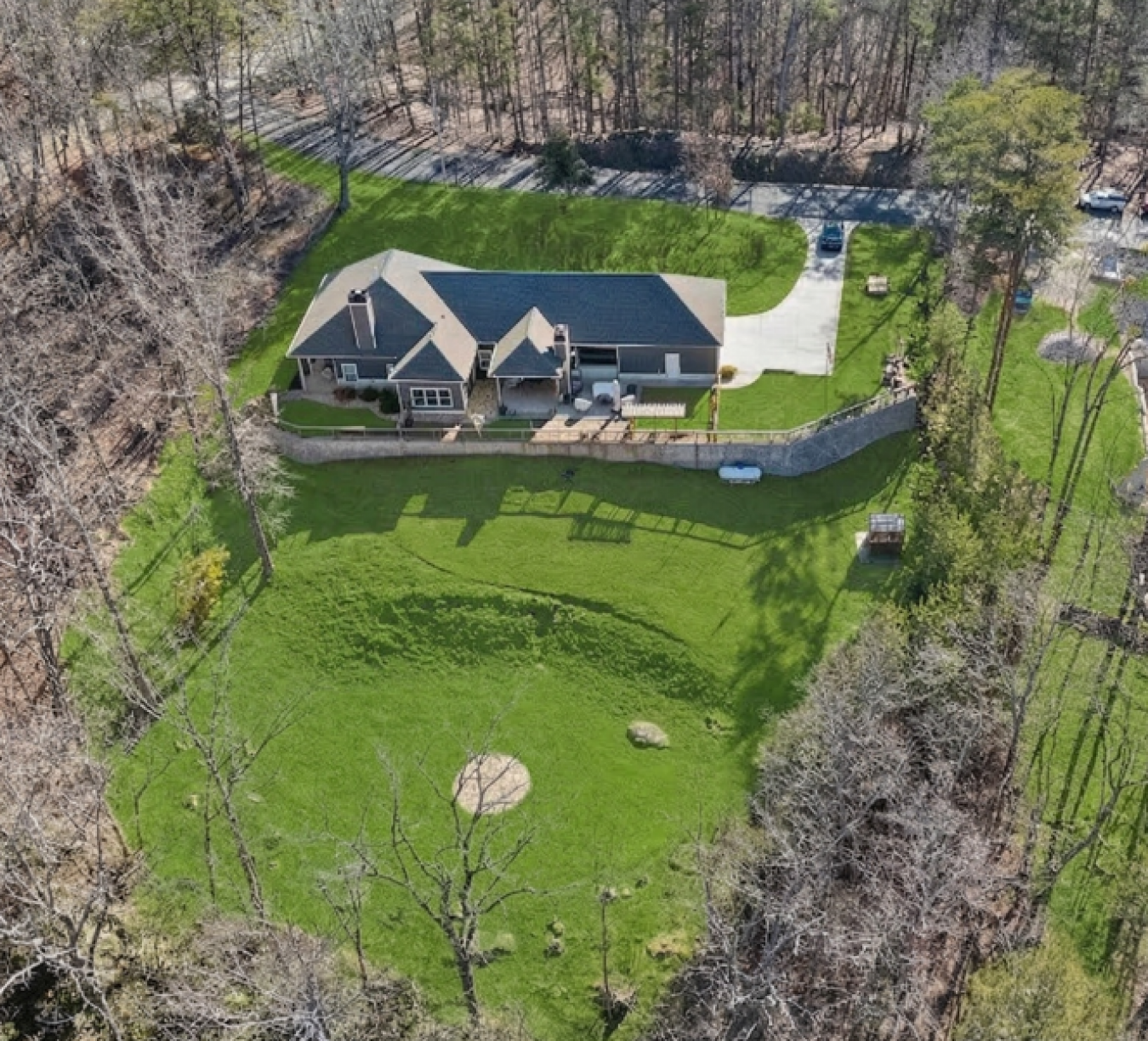 Luxury Custom Ranch on Over 3 Acres in Gated Lake Arrowhead Exceptional Upgrades & Resort-Style Living Experience refined mountain living in this extraordinary custom-built ranch home completed in 2021, located within the gated Lake Arrowhead community of Waleska, Georgia. Offering peace of mind and everyday comfort, the home is equipped with a whole-house Generac 22.5kW generator and an Aqua Sauna whole-house water filtration system, highly valued features in this sought-after North Georgia lake community. Set on just over 3 acres across five combined lots, including two additional adjacent lots added to the property, this offering represents one of the largest and most usable land packages in Lake Arrowhead. The expanded footprint provides a rare level of privacy, flexibility, and open green space within the neighborhood-ideal for recreation, gardening, entertaining, or future planning-while still enjoying the benefits of a well-established, amenity-rich community. The thoughtfully designed ranch-style floorplan features 10-foot ceilings throughout, upgraded flooring with a cork base for enhanced comfort and sound absorption, and carefully curated finishes that elevate every room. The open-concept main living area centers around a chefs kitchen with high-end appliances, double ovens with convection, a built-in microwave, upgraded cabinetry with interior and accent lighting, stone countertops, and designer lighting fixtures that add both function and sophistication. A defining architectural feature of the home is the series of five custom cast-iron front doors spanning the covered front porch. Designed to open independently, these doors allow natural airflow to move through the home, creating an airy, pavilion-like atmosphere while reinforcing the propertys strong connection to the outdoors. This rare feature adds both visual impact and everyday livability, showcasing the level of customization found throughout the residence. Seamless indoor-outdoor living continues through expansive accordion-style sliding glass doors that fully open to a covered patio, making the home ideal for entertaining or relaxing in the tranquil wooded setting. Outdoor living spaces are anchored by a stunning stone fireplace, with an additional open patio located on the opposite side of the fireplace and another patio pre-wired for a hot tub, offering versatility for future enhancements. A pergola garden area just off the rear patio further extends the outdoor experience, while the gently sloped, usable yard remains exceptional for the community. The primary suite serves as a private retreat, featuring a spa-inspired bathroom with a freestanding soaking tub, oversized walk-in tile shower, dual vanities, and a generous walk-in closet with custom storage. Guest accommodations are equally impressive, highlighted by a guest bathroom offering a full steam shower with aromatherapy, delivering a true spa-like experience. Additional features include a 1,000-gallon in-ground water tank dedicated to lower area irrigation, supporting efficient landscape maintenance, along with a greenhouse that complements the propertys thoughtful outdoor design. Residents of Lake Arrowhead enjoy access to an unmatched collection of amenities, including a private 540-acre lake with marina access, boating and fishing, an 18-hole championship golf course, clubhouse with dining, resort-style pool, tennis and pickleball courts, parks, walking trails, and year-round community activities-all within a secure, gated mountain setting. With its custom construction, extensive upgrades, rare multi-lot acreage, and resort-style community setting, this property represents a truly special opportunity for luxury buyers seeking space, privacy, and an elevated lifestyle in North Georgia. Voted Top 100 Places to Live!