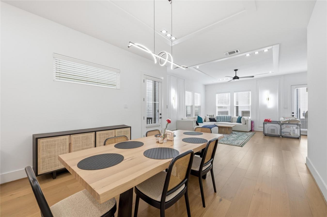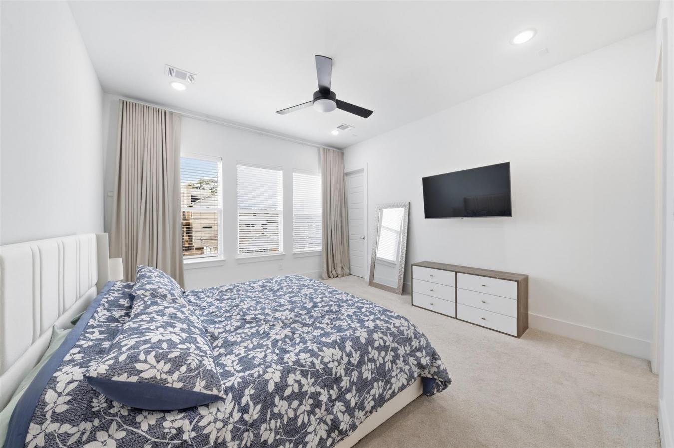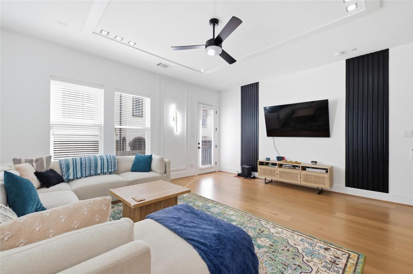 Experience elevated first-floor living in Beall Square, located in the heart of Shady Acres just west of Heights Proper at Beall & 21st Street. This contemporary free-standing home blends modern design with everyday functionality in a highly walkable neighborhood near top dining, shopping, and major highways. The open-concept living, dining, and kitchen area is perfect for entertaining, featuring quartz MSI Carrera countertops, Frigidaire stainless steel appliances, a black and gold touchless faucet, porcelain tile, and designer finishes throughout. All bedrooms are on the second floor, including a luxurious primary suite with dual walk-in closets, custom blackout curtains, and spa-inspired details. A custom hallway storage unit adds smart organization. Enjoy a private backyard with artificial turf, fenced green space, covered balconies, and private driveway. A third-floor game room completes this exceptional home.