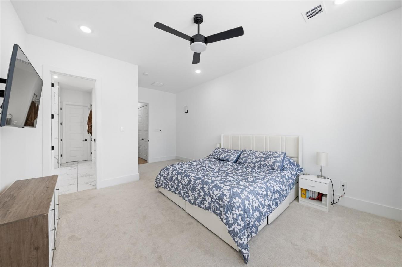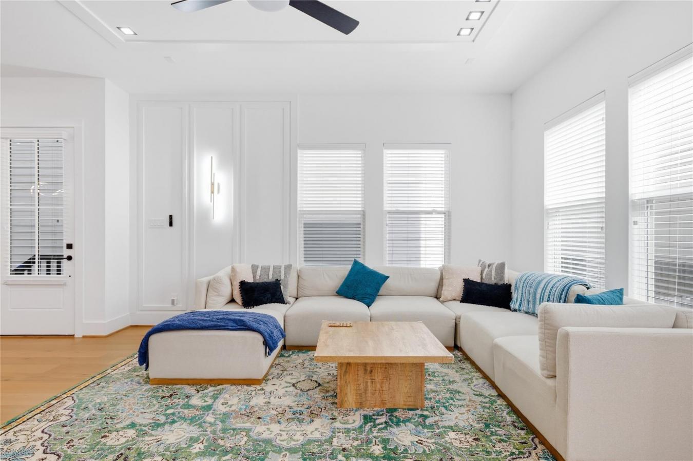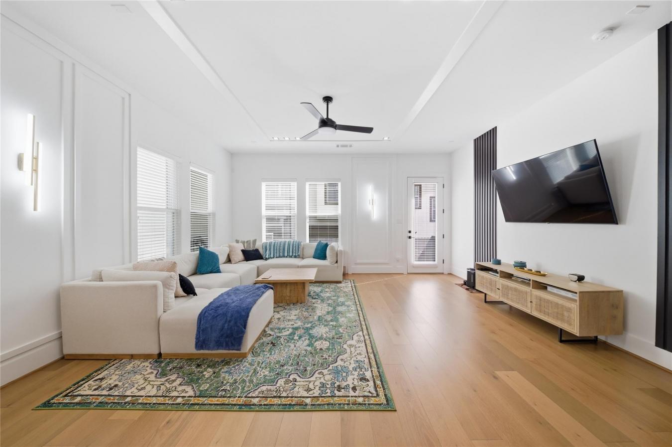 Experience elevated first-floor living in Beall Square, located in the heart of Shady Acres just west of Heights Proper at Beall & 21st Street. This contemporary free-standing home blends modern design with everyday functionality in a highly walkable neighborhood near top dining, shopping, and major highways. The open-concept living, dining, and kitchen area is perfect for entertaining, featuring quartz MSI Carrera countertops, Frigidaire stainless steel appliances, a black and gold touchless faucet, porcelain tile, and designer finishes throughout. All bedrooms are on the second floor, including a luxurious primary suite with dual walk-in closets, custom blackout curtains, and spa-inspired details. A custom hallway storage unit adds smart organization. Enjoy a private backyard with artificial turf, fenced green space, covered balconies, and private driveway. A third-floor game room completes this exceptional home.