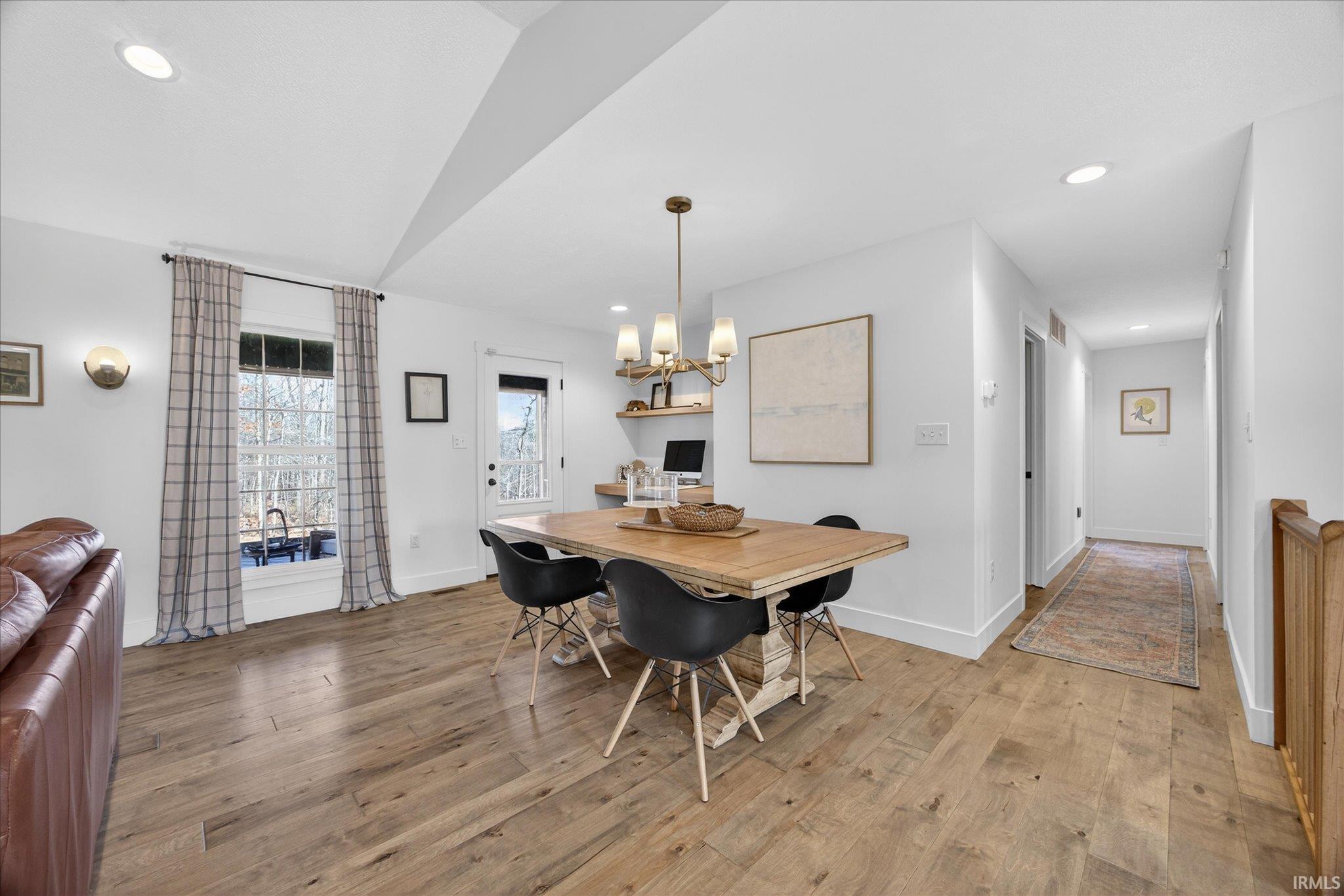 Tucked away on nearly 30 acres of serene, wooded landscape, this exceptional 4-bedroom home offers farmhouse comfort and modern updates. The peaceful outdoor setting and interior craftsmanship make this property shine. The open-concept floorplan seamlessly connects the living room, dining area, and gourmet kitchen, creating an inviting space ideal for both everyday living and entertaining. The attached screened porch and large deck add additional space to dine, relax, and take in the stunning landscape. The living room is anchored by a cozy wood burning fireplace with quartz surround and a custom built-in workspace. The kitchen is a true showstopper, featuring stainless appliances, quartz countertops, a spacious island with seating, and stylish open shelving. The main living areas are appointed with beautiful engineered hardwood flooring and abundant windows add warm natural light. The main level primary suite provides a private retreat, with two additional bedrooms and full bath completing the main level. Downstairs, the finished walkout basement expands your living space with an additional bedroom, 1/2 bath, spacious rec room, office nook, and a convenient laundry room. Car enthusiasts and adventurers will love the 5-car garage, complete with a pull-through bay large enough to accommodate an RV. The large concrete pad makes parking a breeze and adds space to play basketball. A new roof, gutters, carpet, and exterior paint are just a few of the recent updates. This one-of-a-kind property offers the rare opportunity to enjoy refined design in a truly tranquil setting. HSA home warranty included!