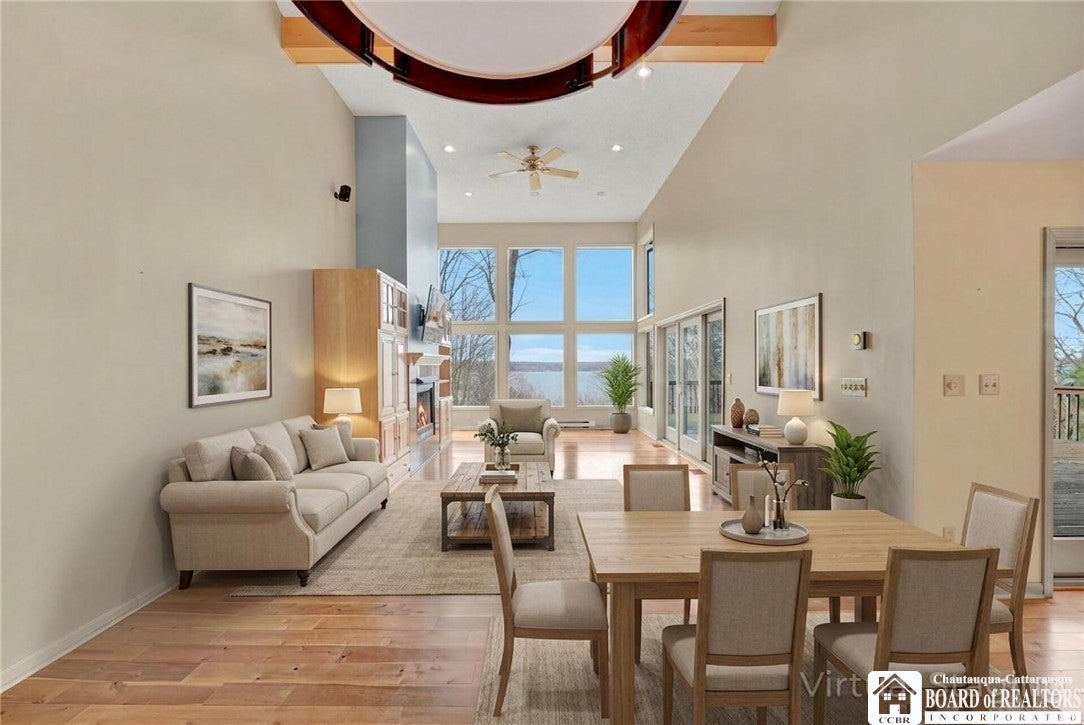 Set on a secluded lot with incredible views of Chautauqua Lake, this one-of-a-kind home offers over 4,300 square feet of living space designed to take full advantage of its surroundings. Large windows and open, airy spaces bring in tons of natural light while framing the lake from multiple vantage points throughout the home.